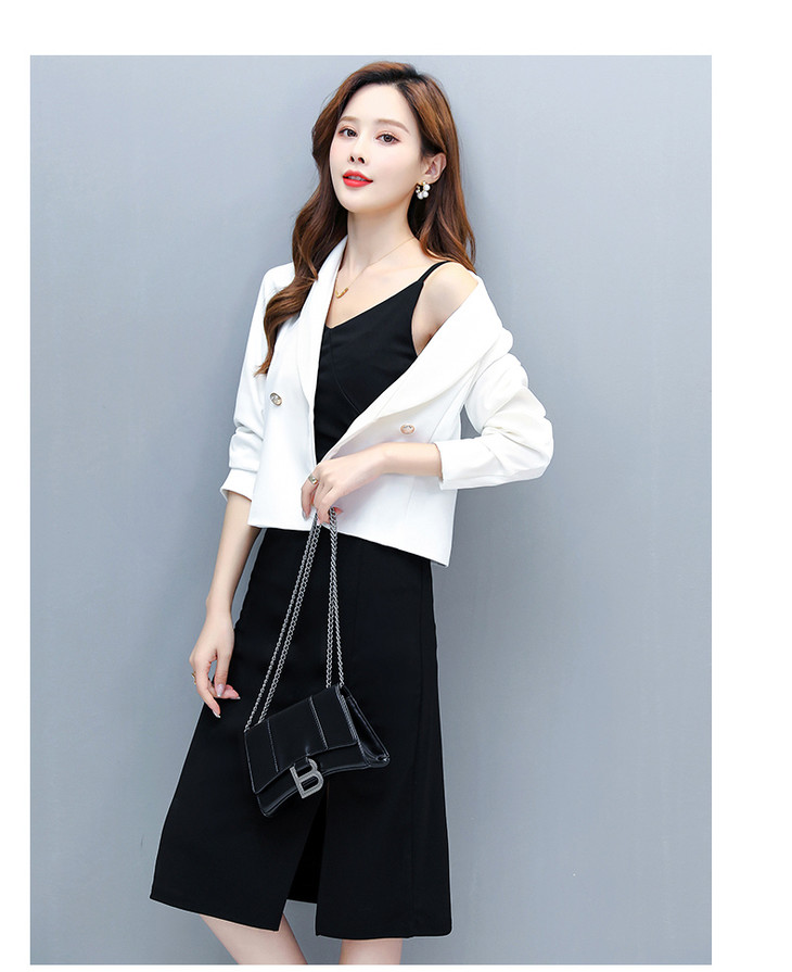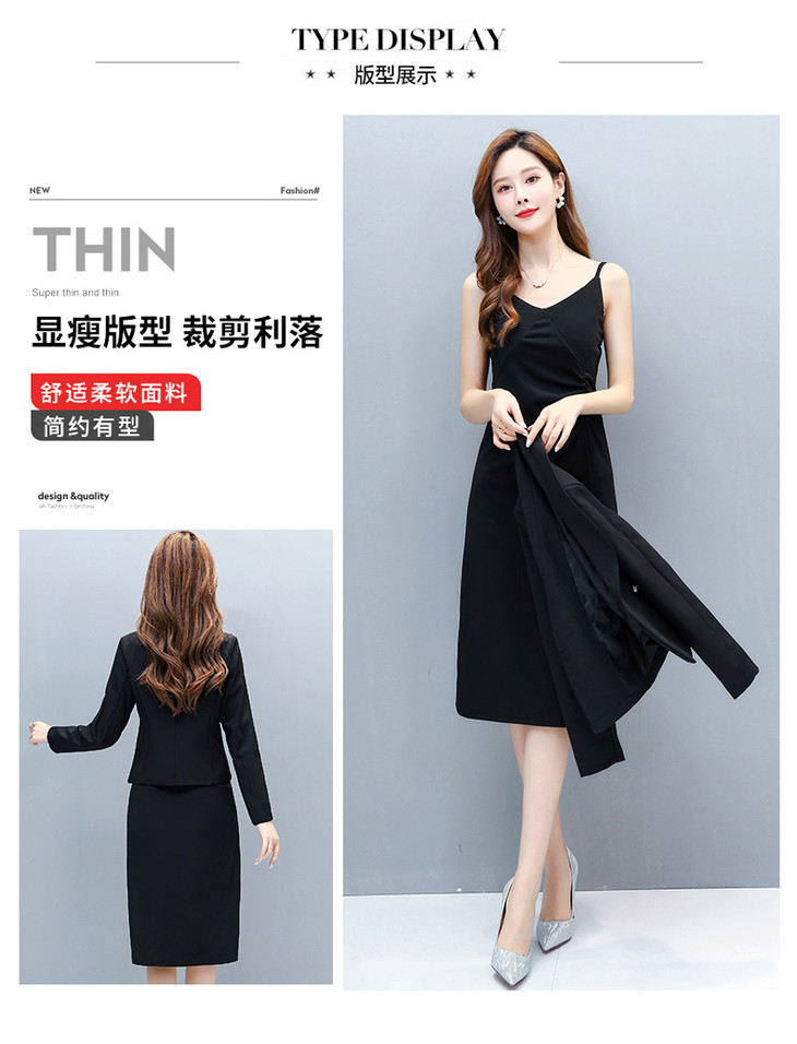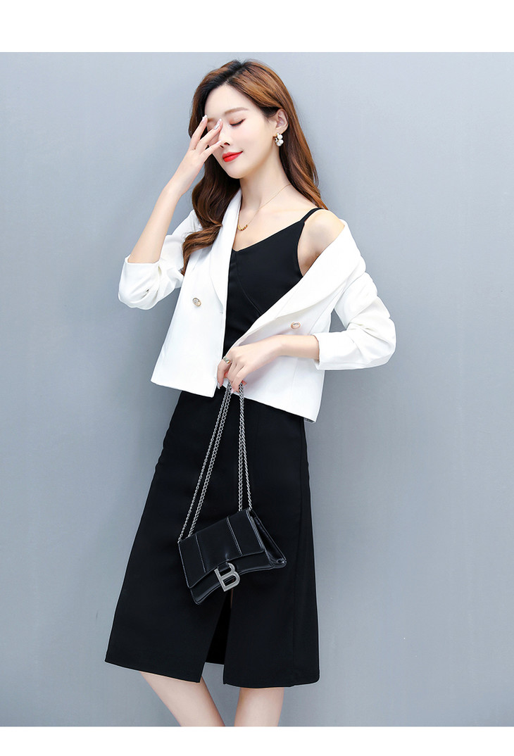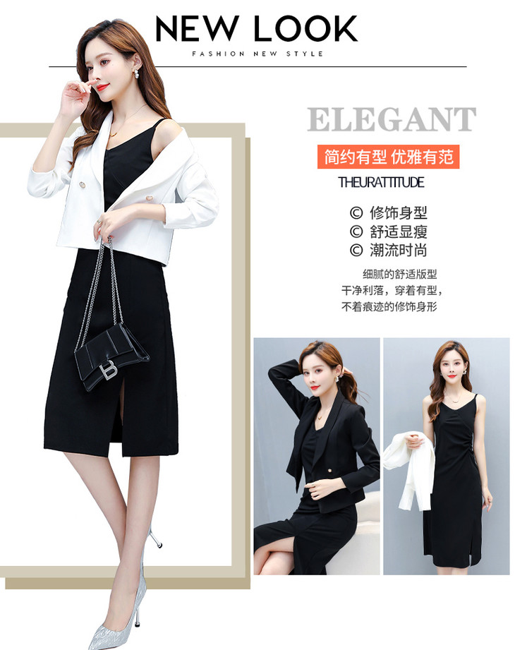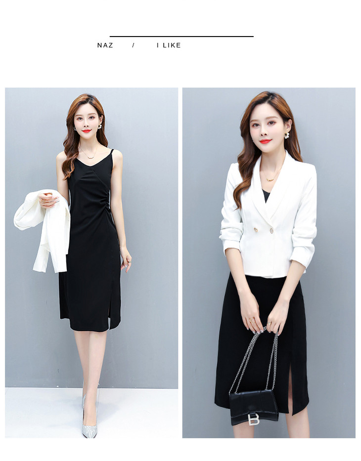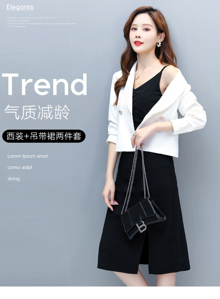 LY92102 2021年新款早春洋气吊带裙西装时髦气质两件套