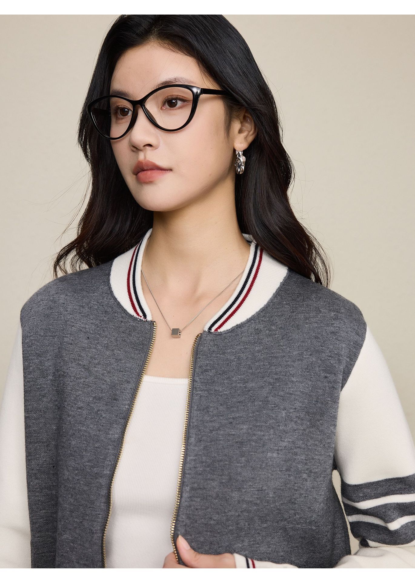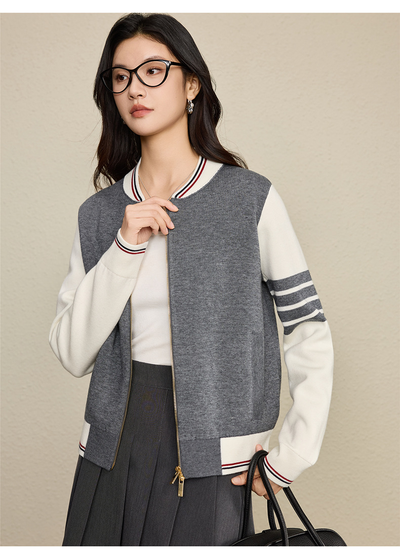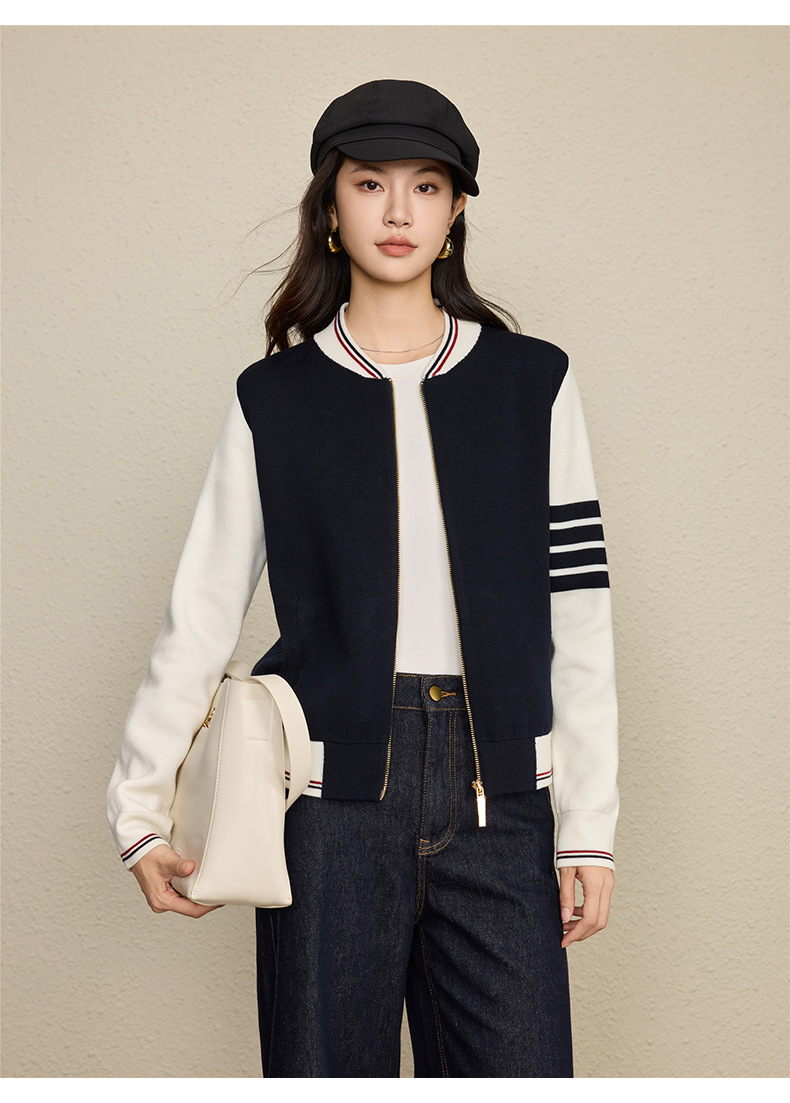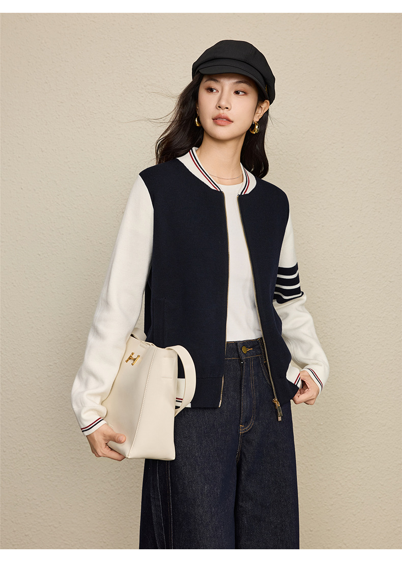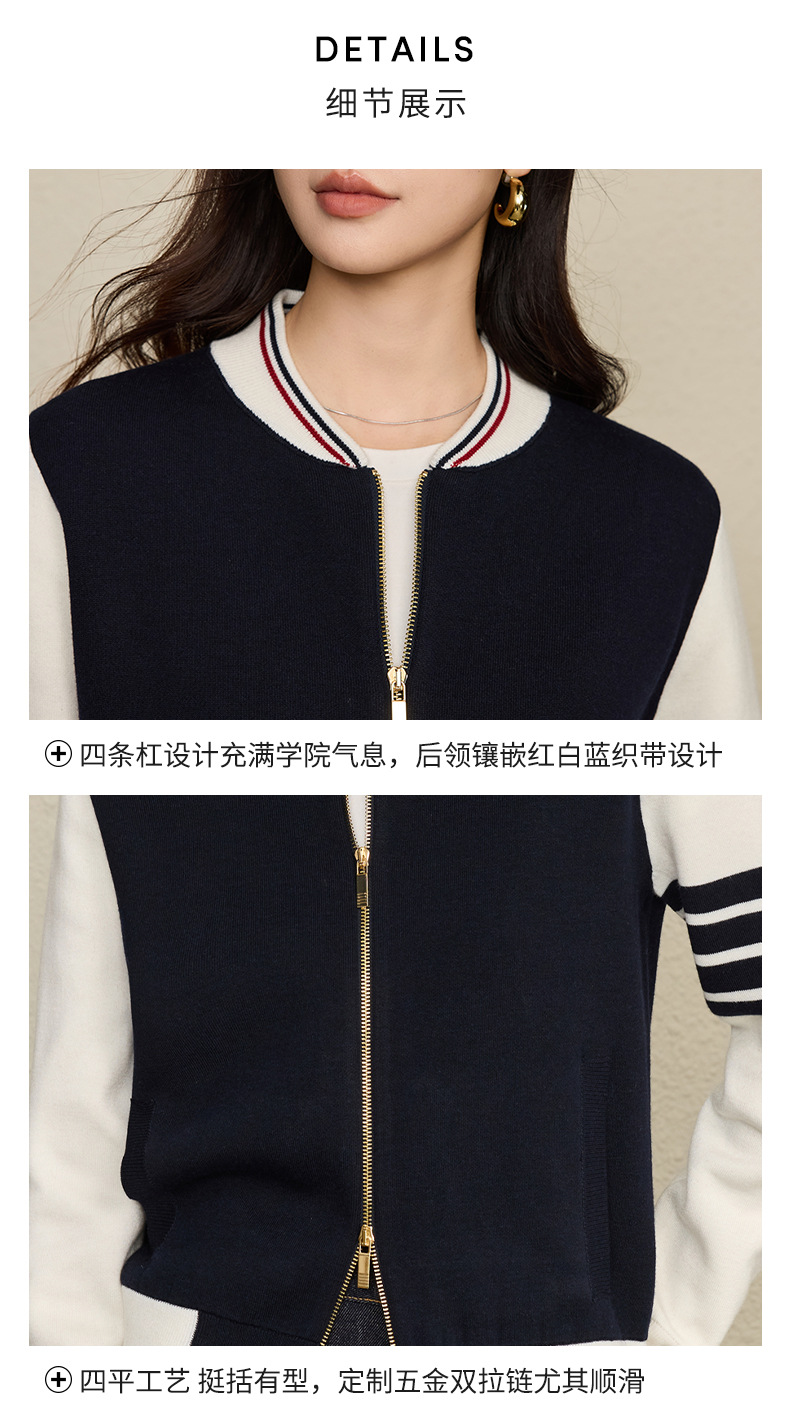 「自」全新升级【铂金会员367/天猫489/差价122】(64507)洛诗琳英伦气质学院风棒球服2025秋冬羊毛撞色加厚针织外套