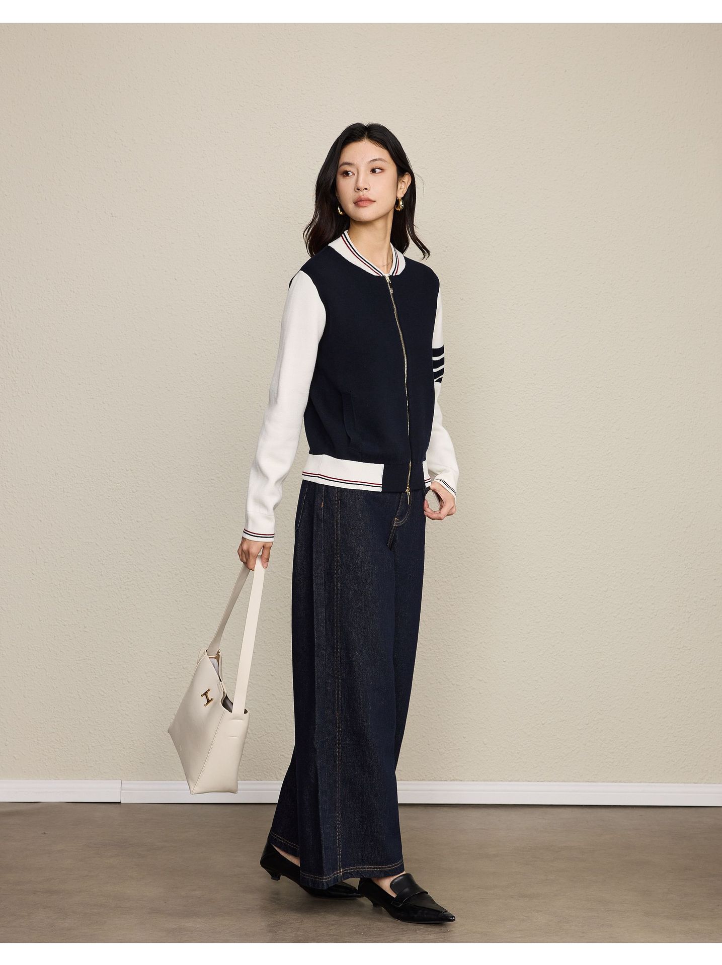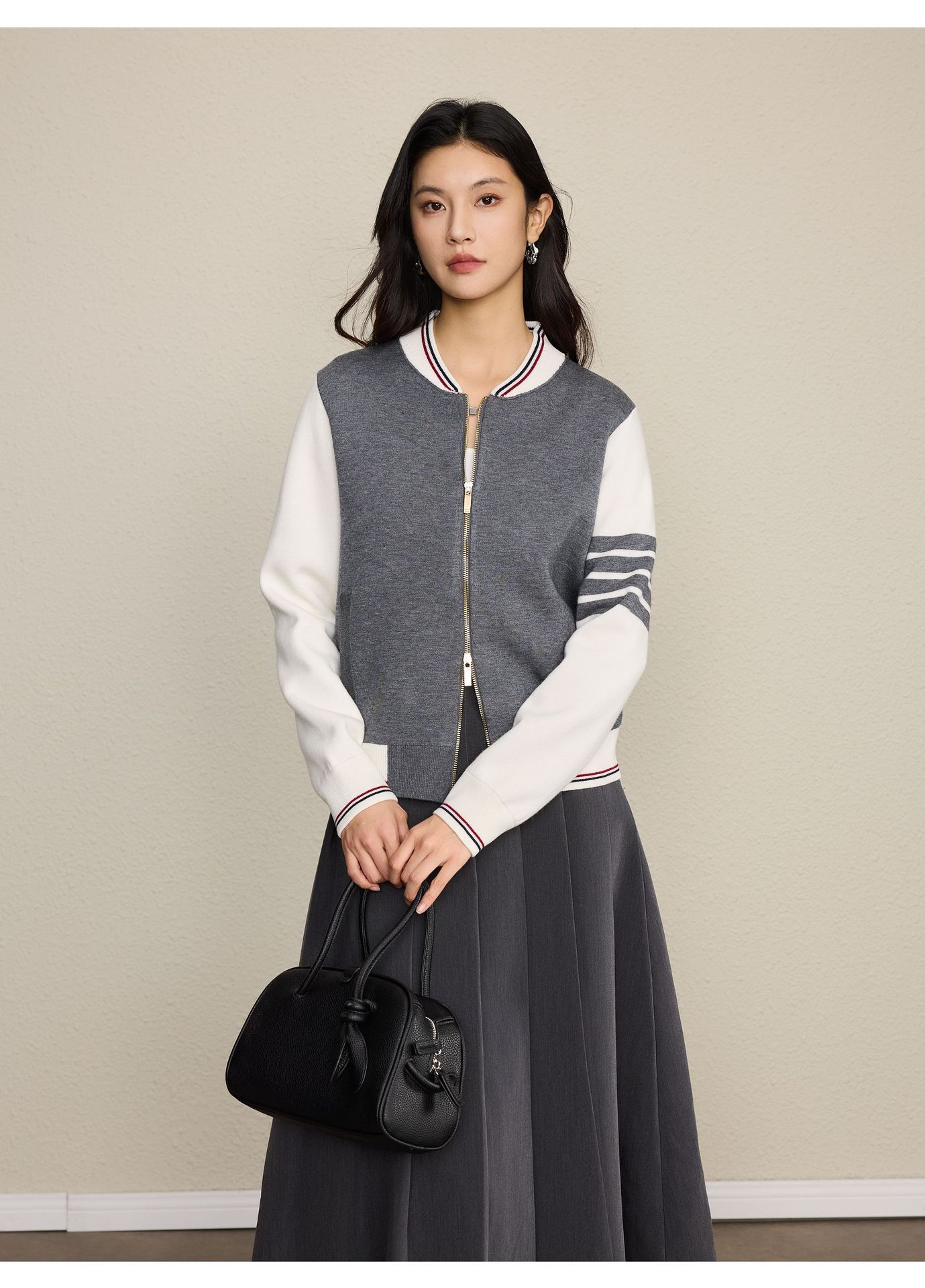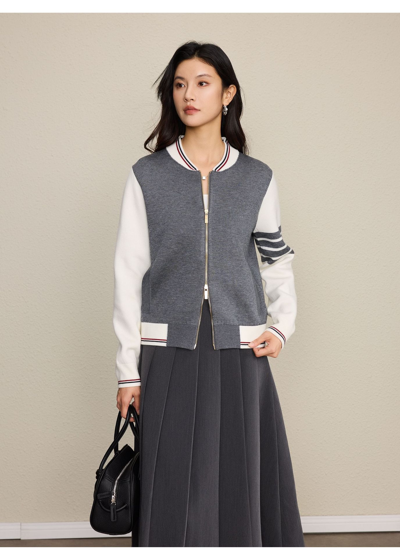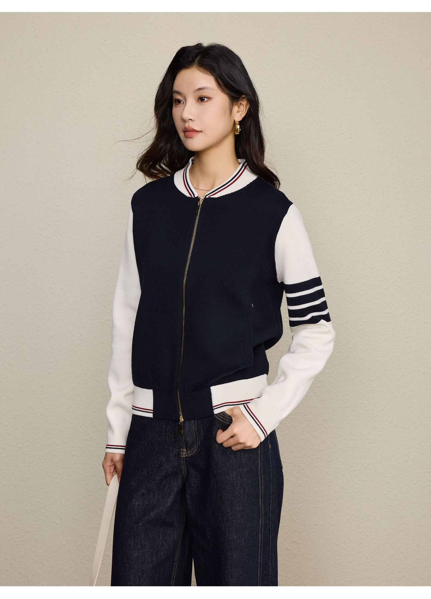 「自」全新升级【铂金会员367/天猫489/差价122】(64507)洛诗琳英伦气质学院风棒球服2025秋冬羊毛撞色加厚针织外套