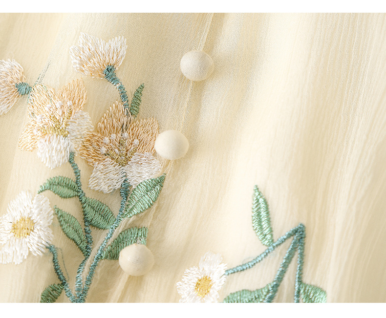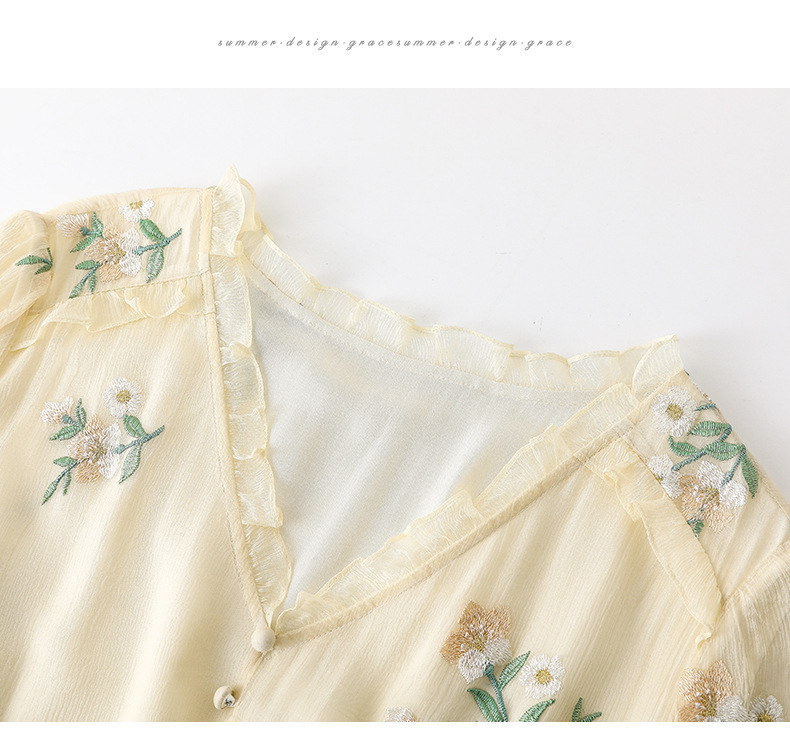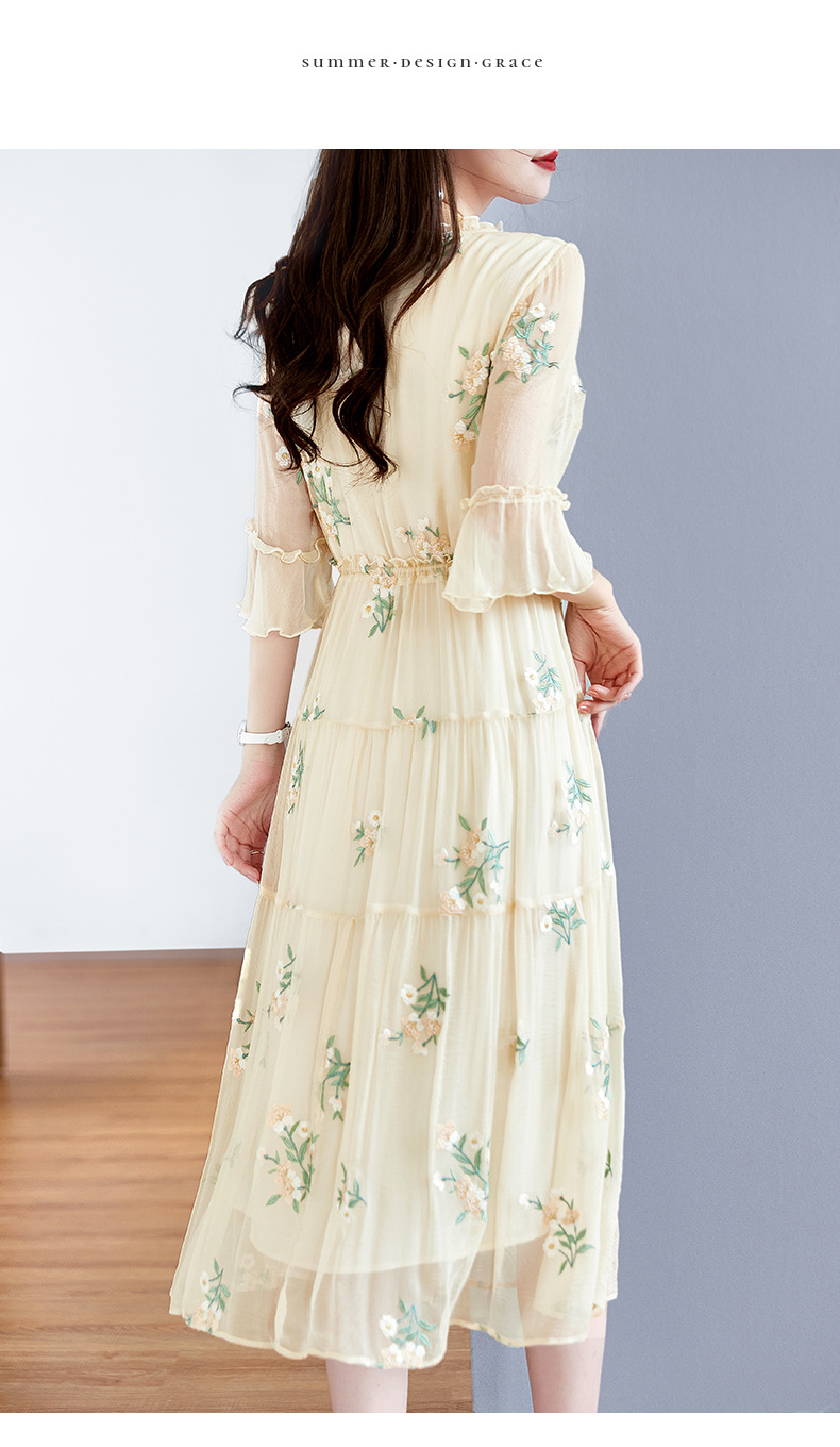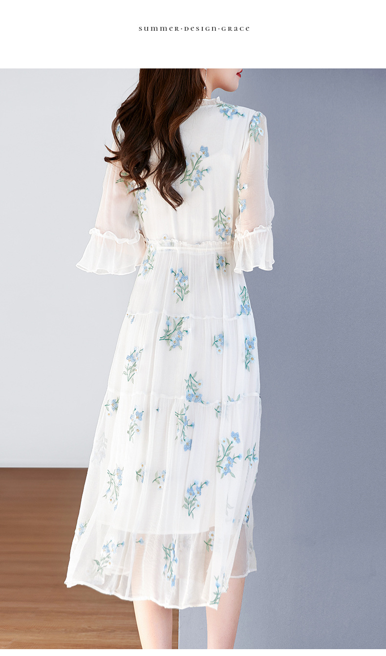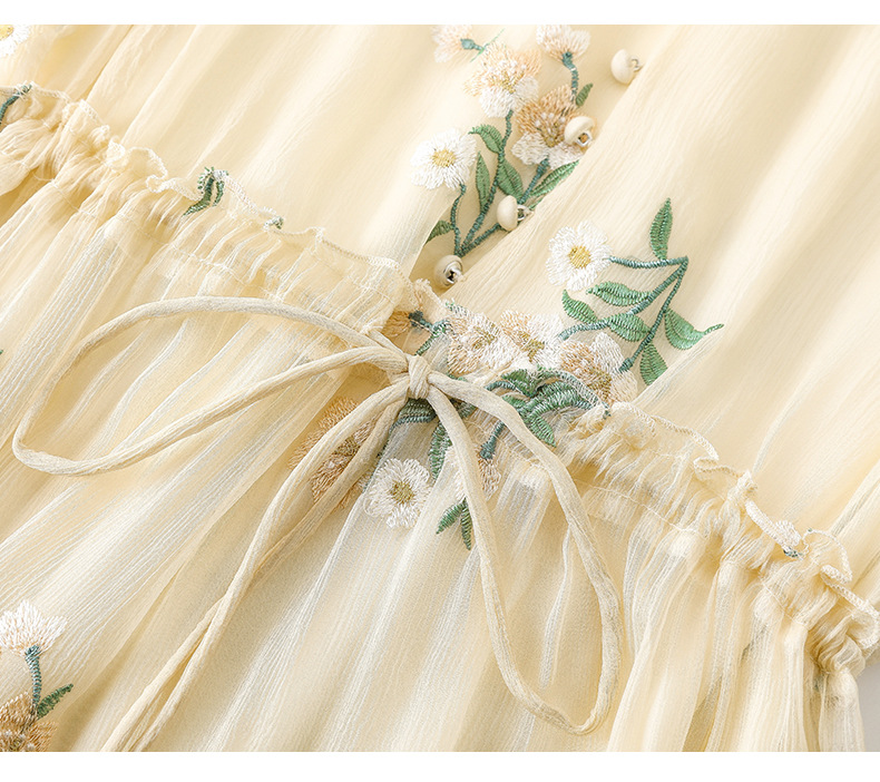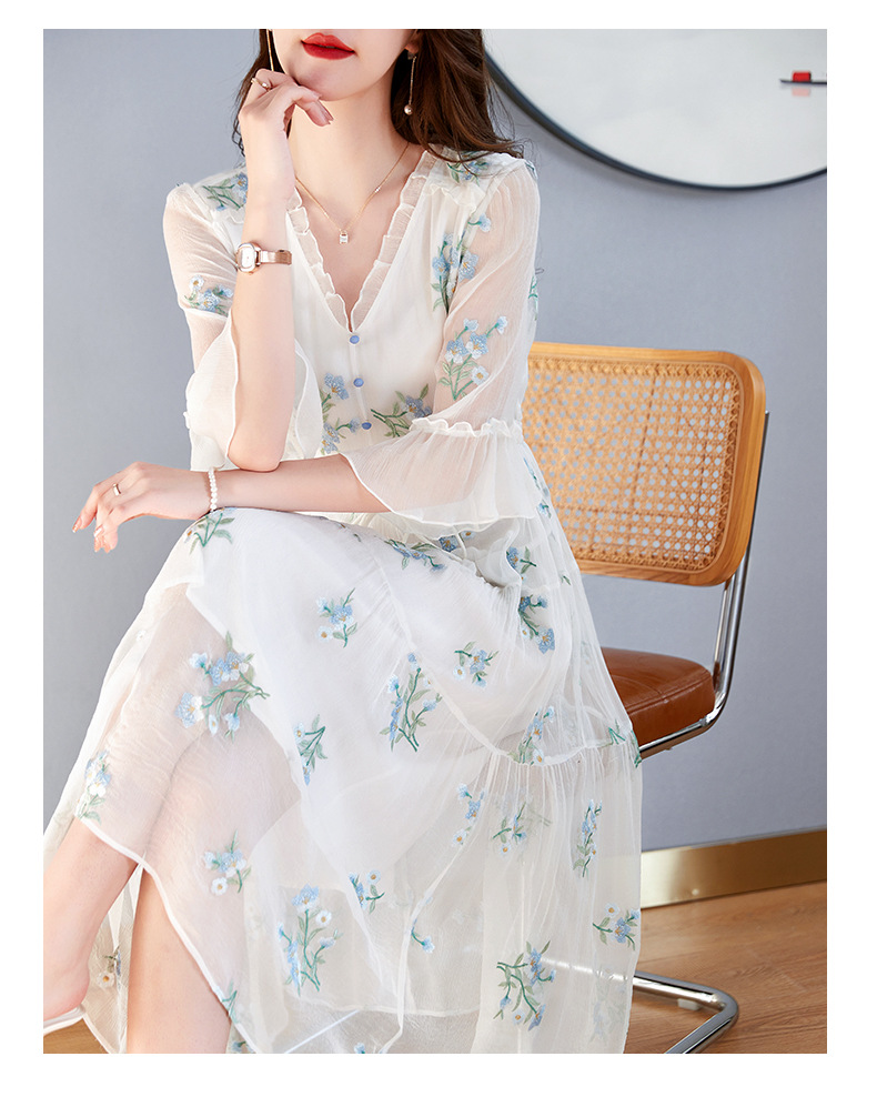 TC82399875 真丝连衣裙女重工刺绣2024新款度假V领收腰桑蚕丝中长款沙滩裙子
