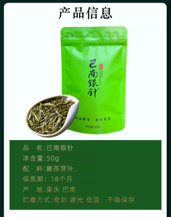 【巴南银针】云雾毛尖 巴南银针绿茶 特级 50g/袋
