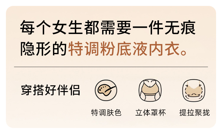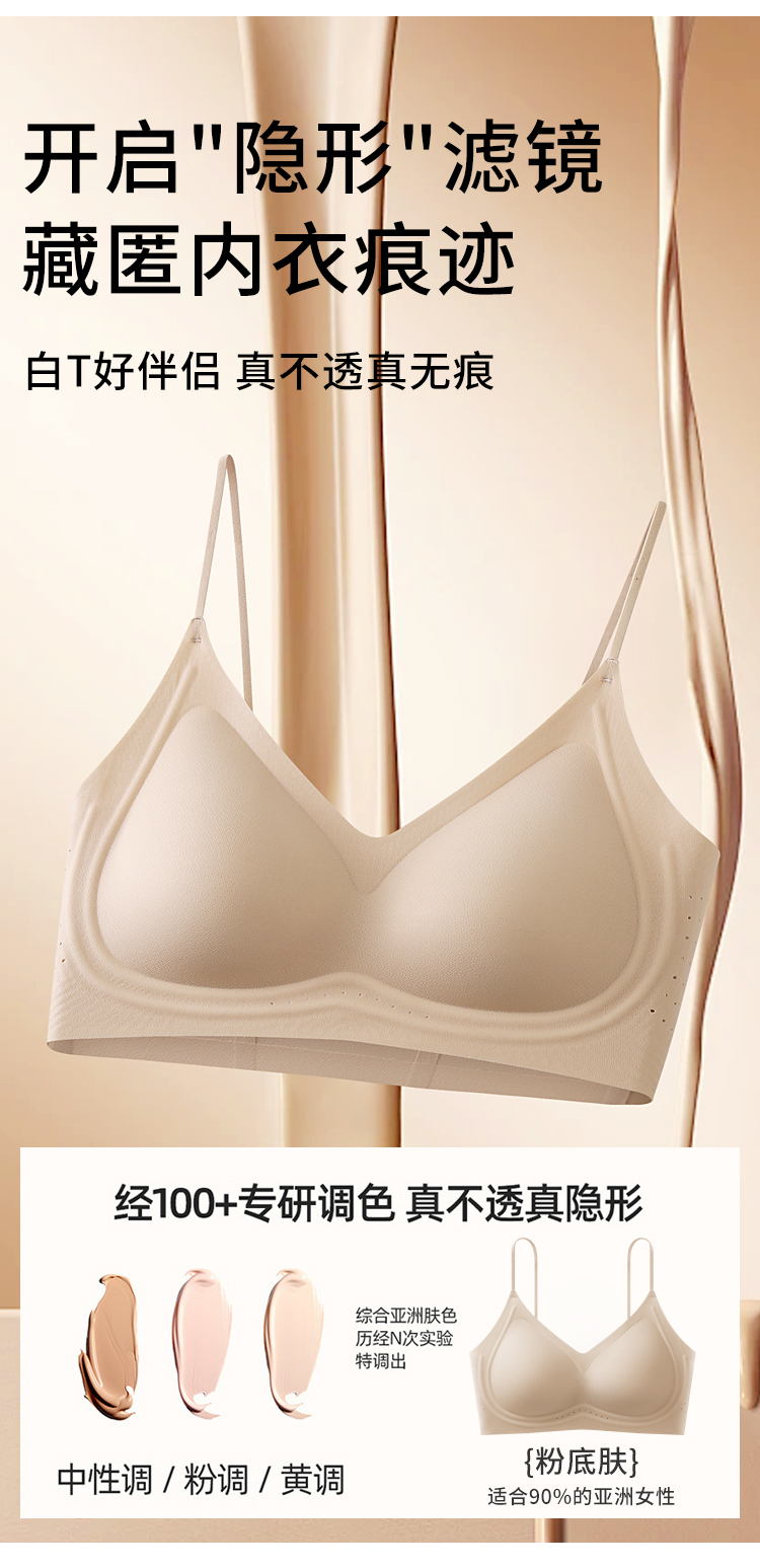 【秒杀】【隐形无痕粉底液内衣】白T伴侣,专为亚洲肌肤定制的号,上身如原肤般隐形,白色镂空都不透!软糯糯细腻面料,果冻条支撑,多维度提拉