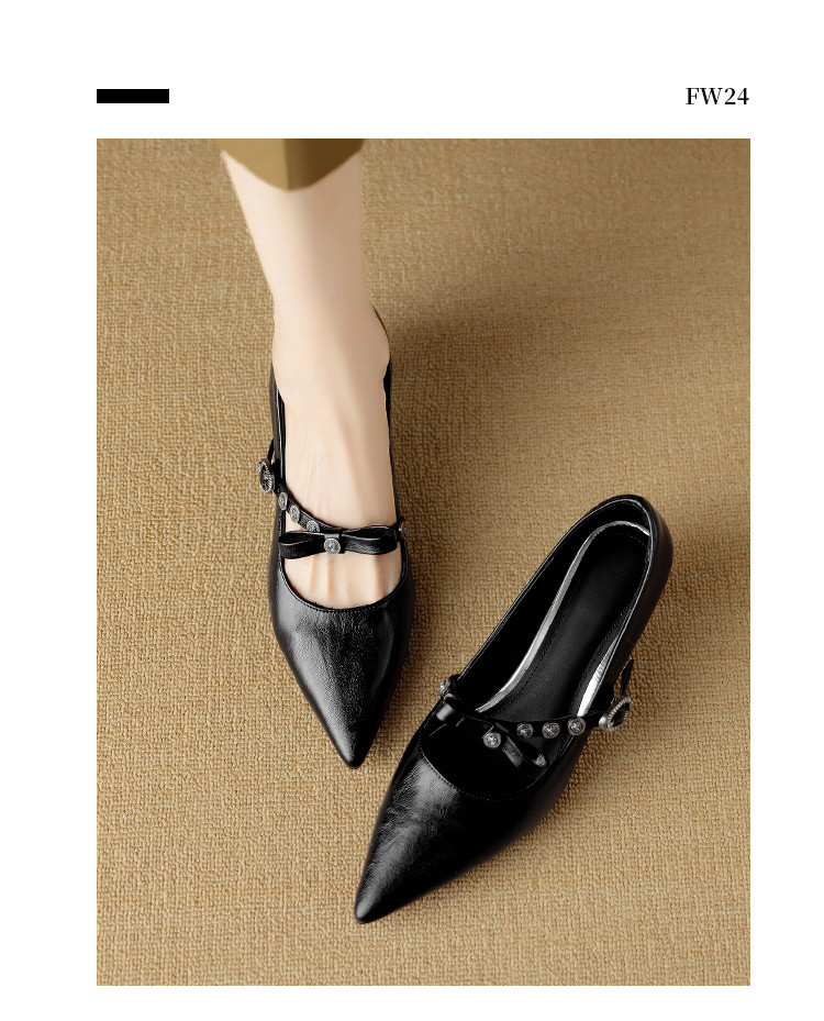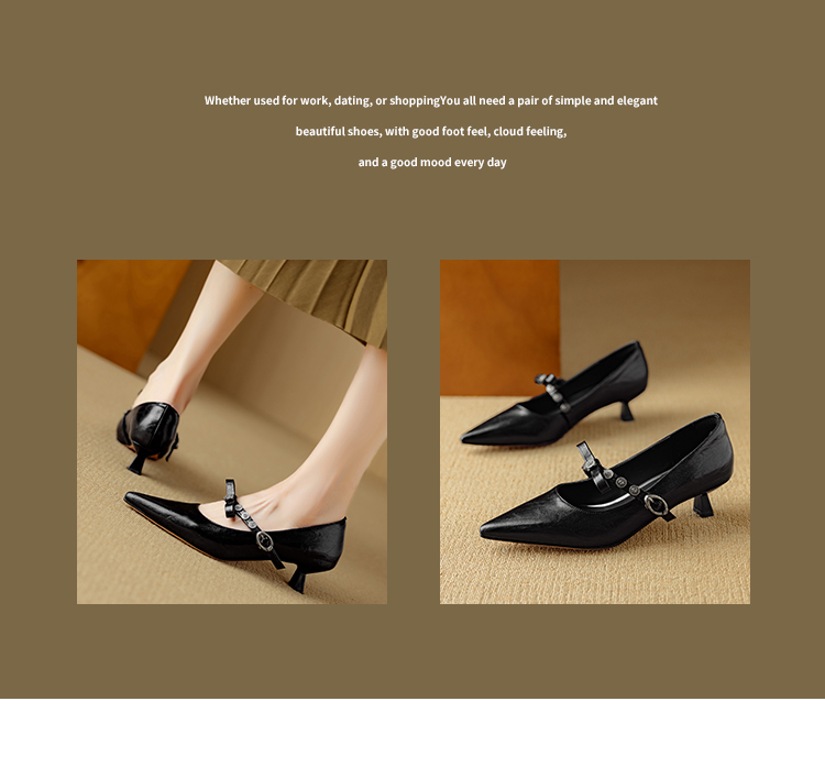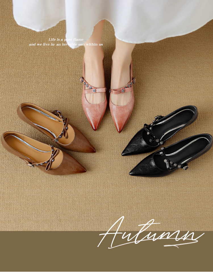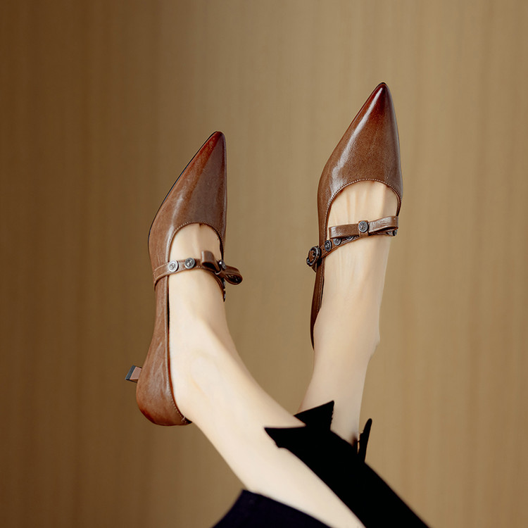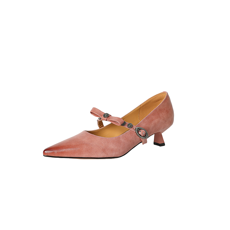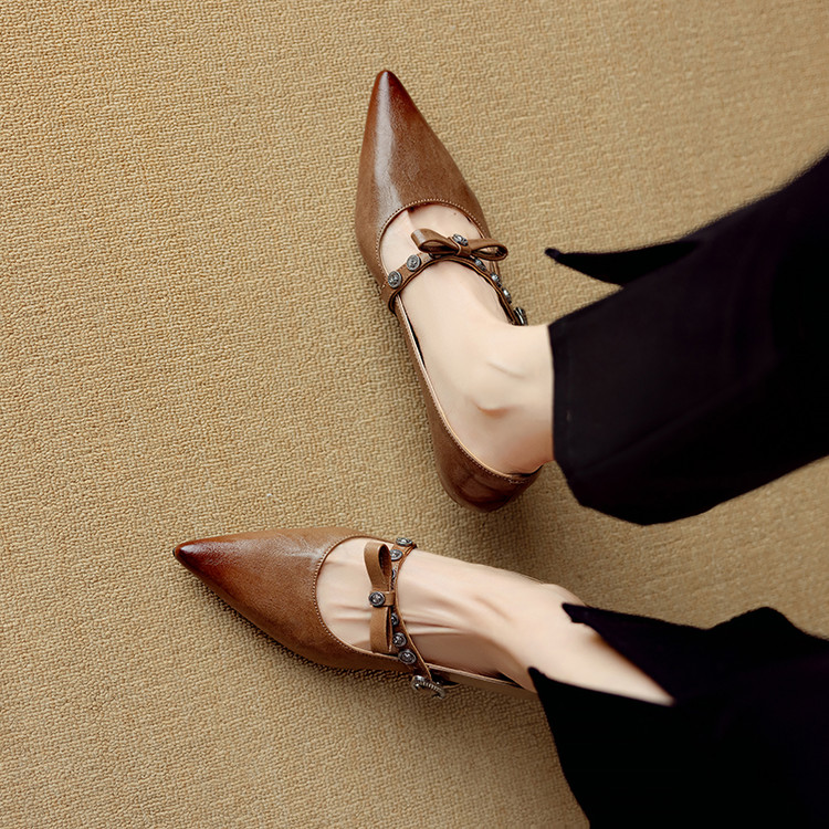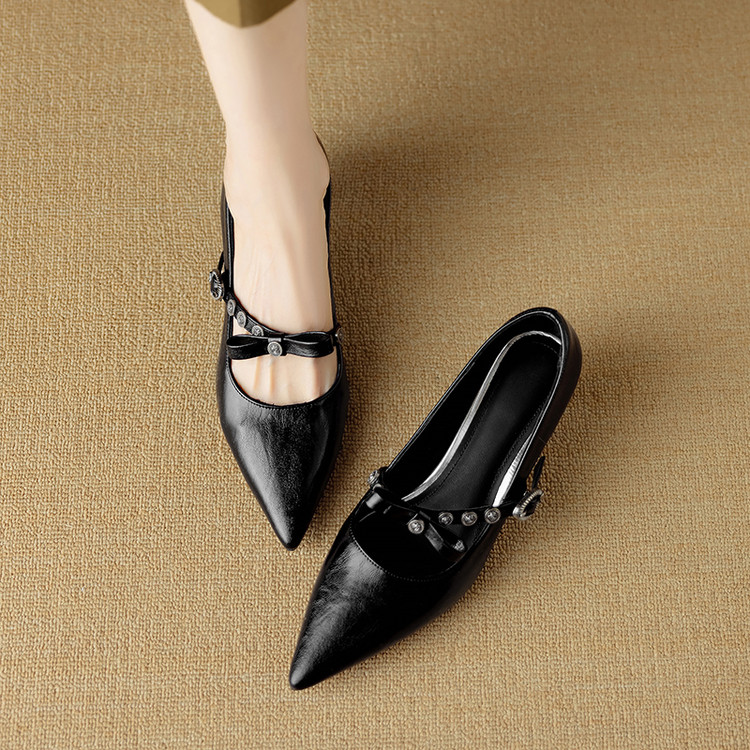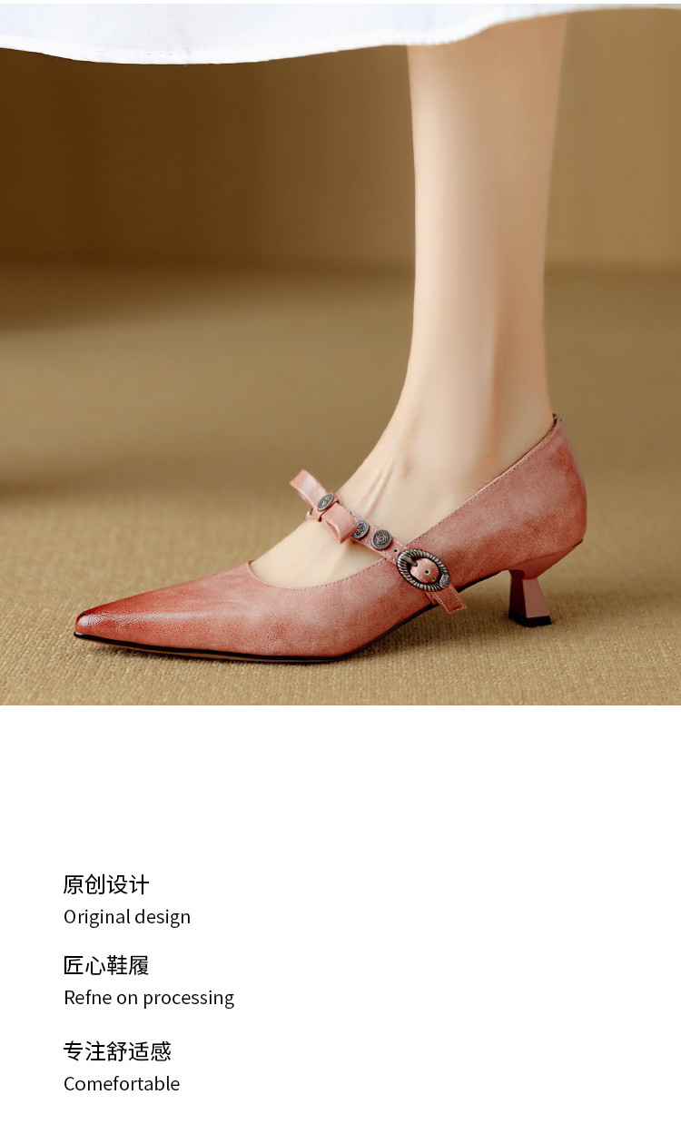 【预售5天】真皮气质尖头蝴蝶结高跟鞋粗跟法式玛丽珍鞋浅口单鞋女DB&M6208