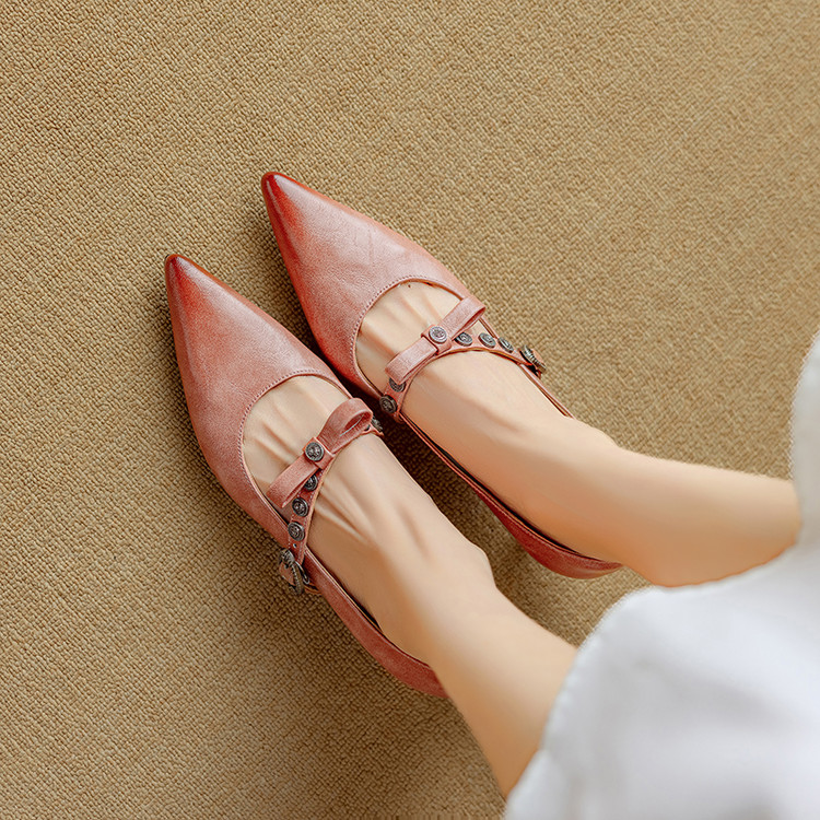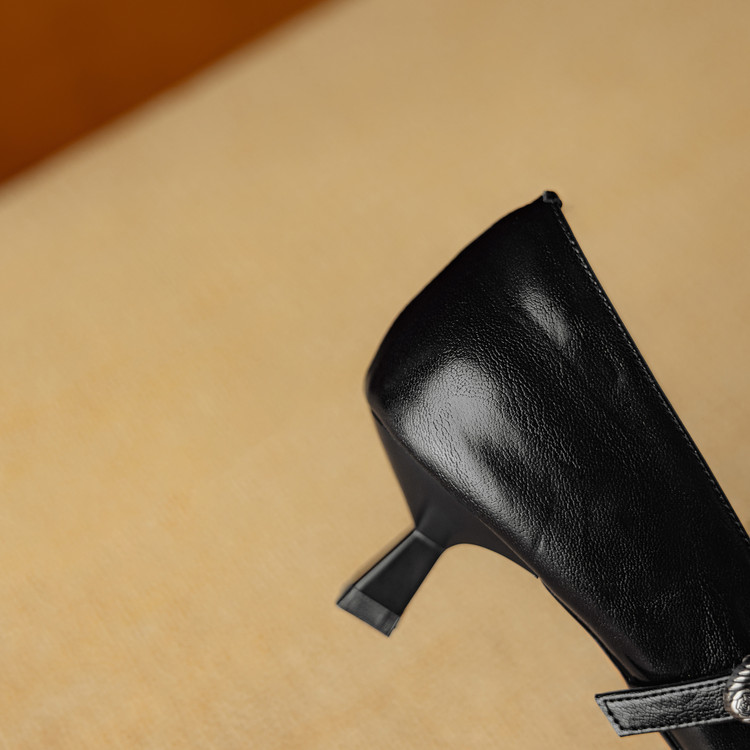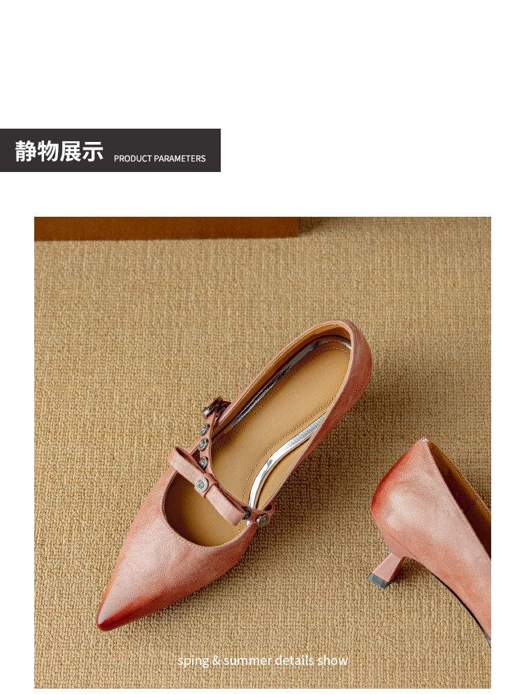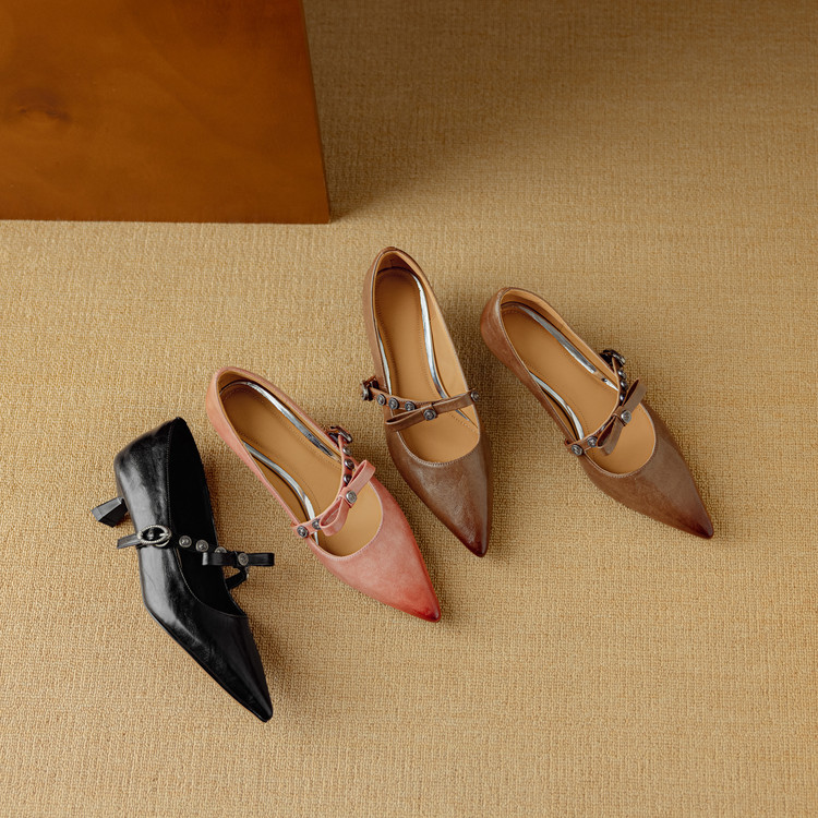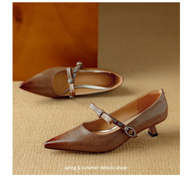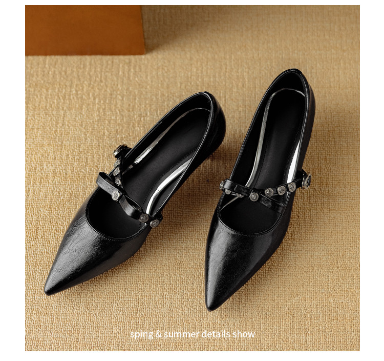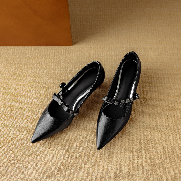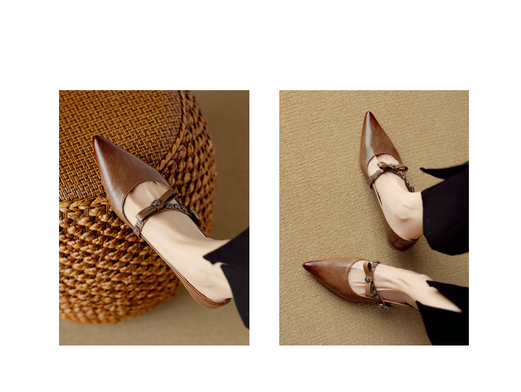 【预售5天】真皮气质尖头蝴蝶结高跟鞋粗跟法式玛丽珍鞋浅口单鞋女DB&M6208