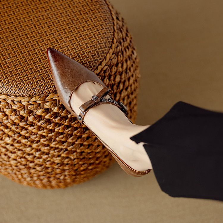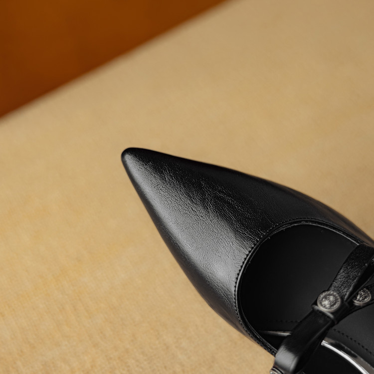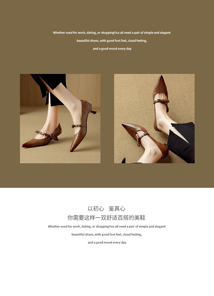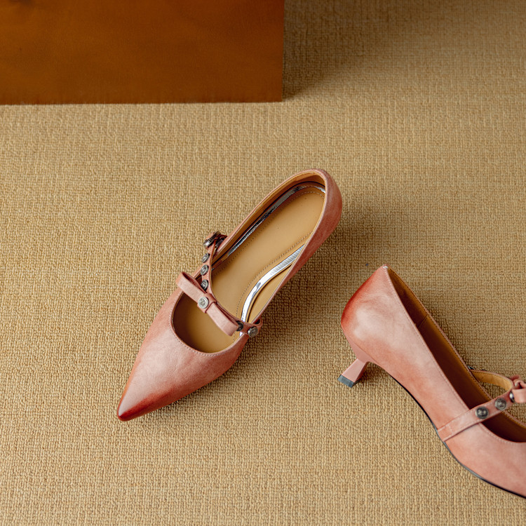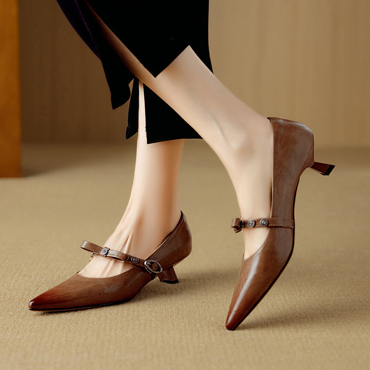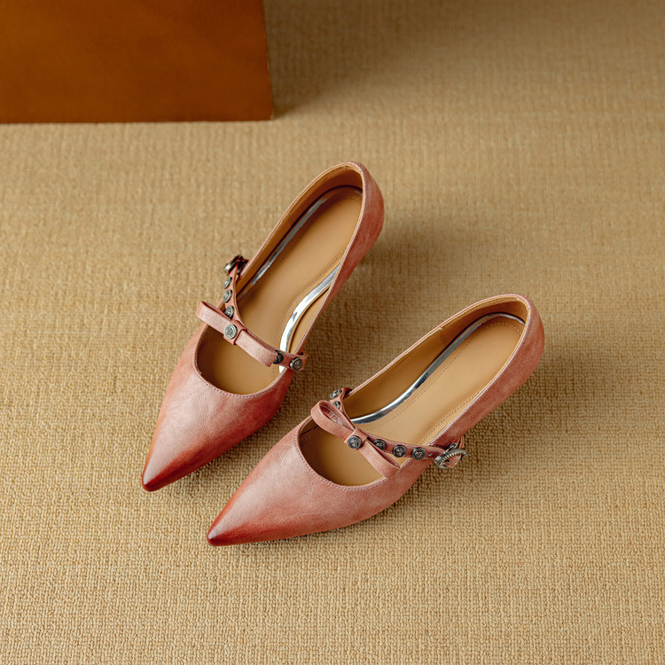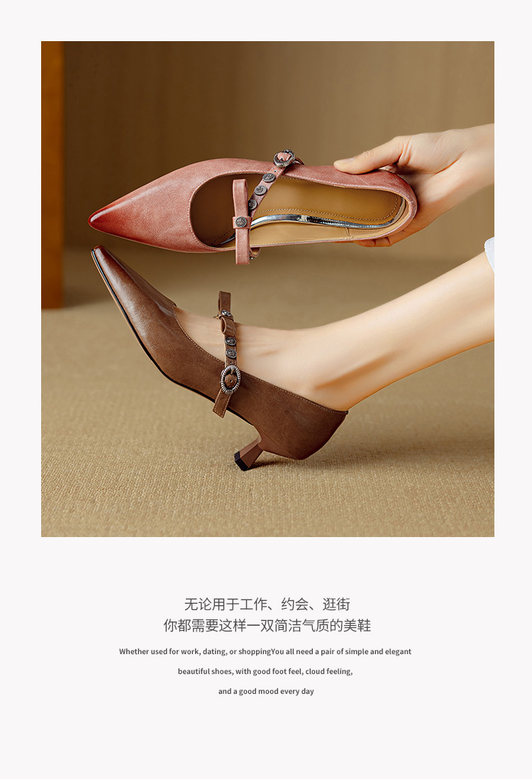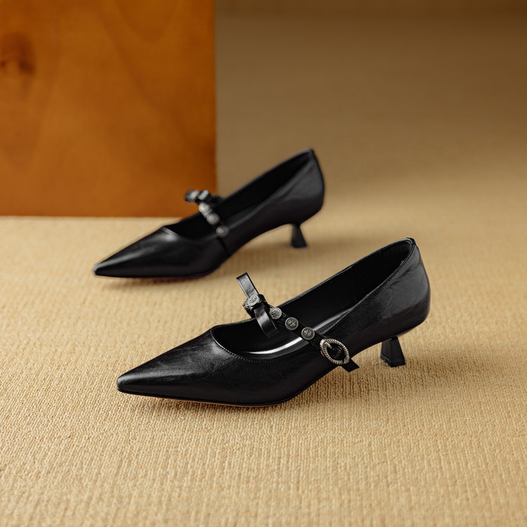 【预售5天】真皮气质尖头蝴蝶结高跟鞋粗跟法式玛丽珍鞋浅口单鞋女DB&M6208
