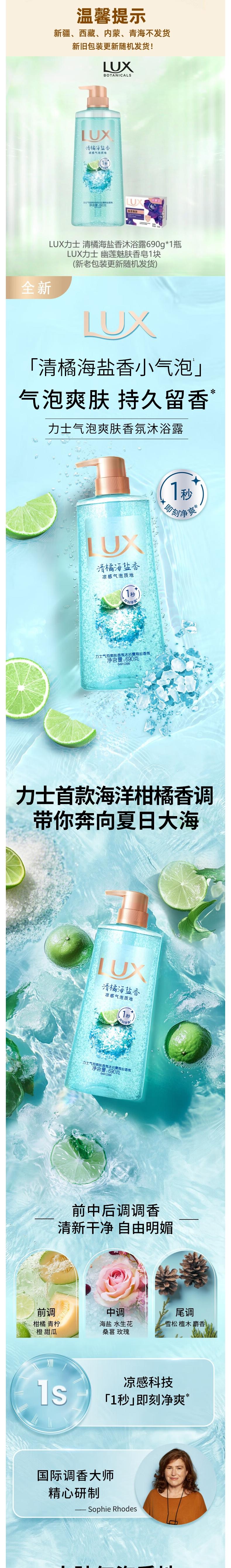 LUX力士 清橘海盐香沐浴露690g*1瓶+(赠品魅肤香皂1块) US-2R0FJ