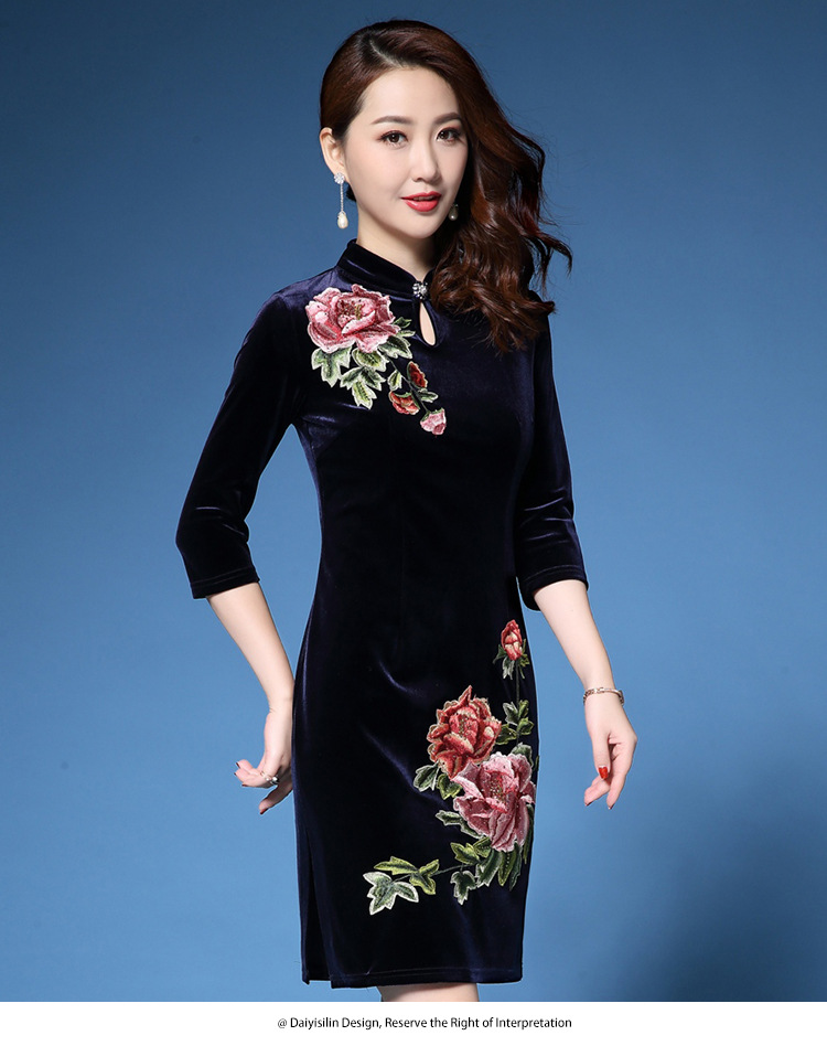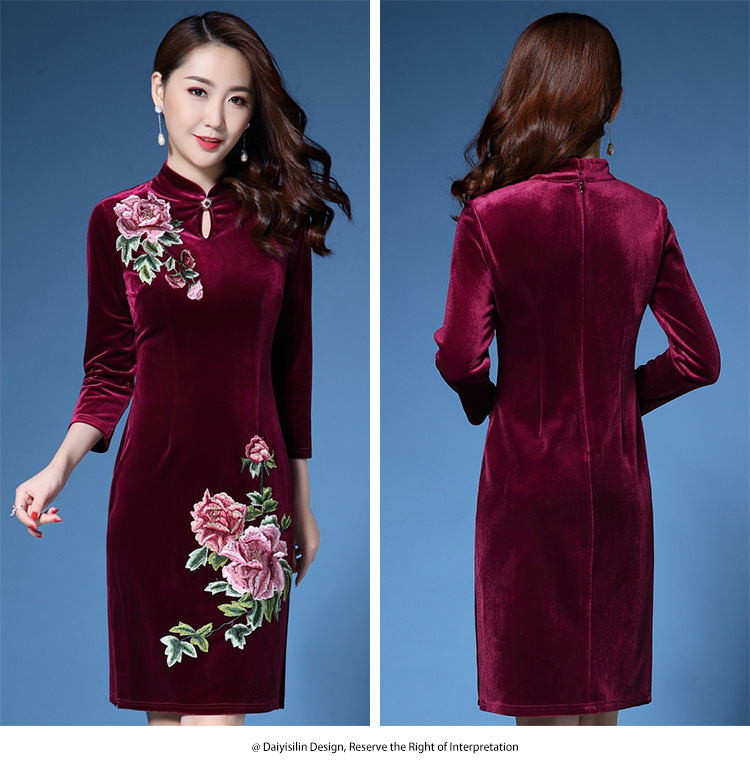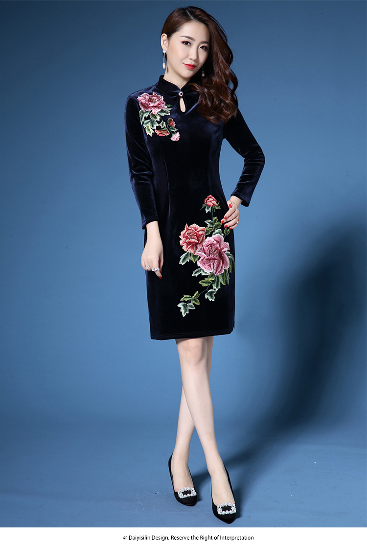 DYSL-Q4226春季装新款优雅丝绒晚礼服连衣裙