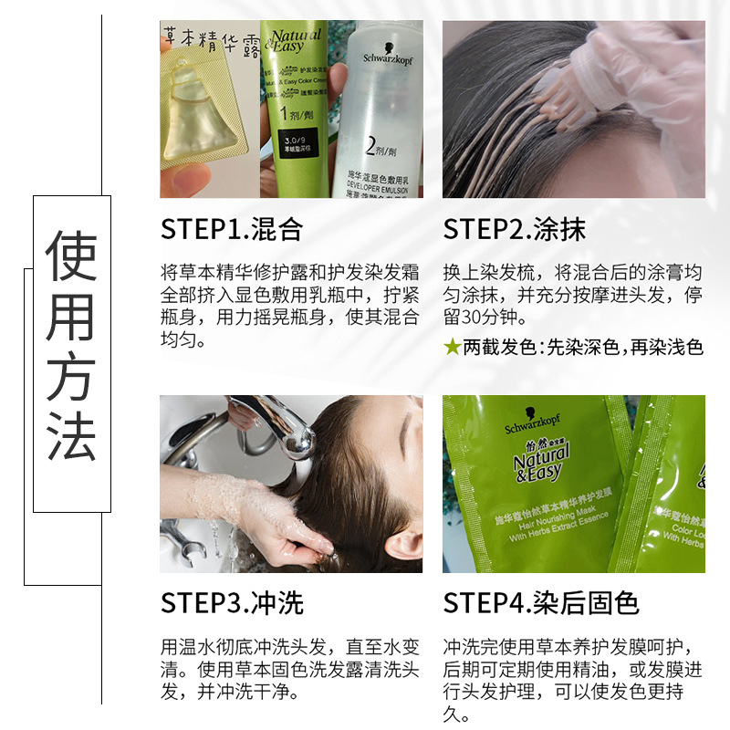 测评优品-施华蔻怡然染发霜 怡然双膏 怡然经典染发霜 膏状 盖白发 简单易操作 成分安全 染发剂 自然棕黑茶色黑色