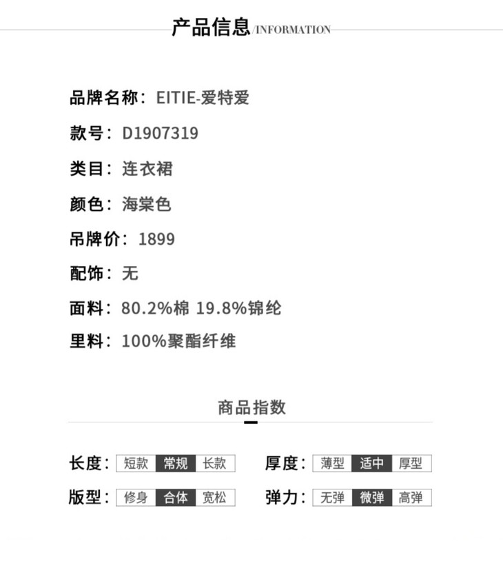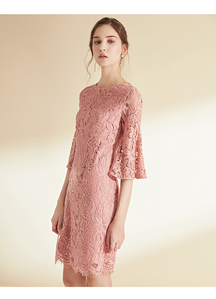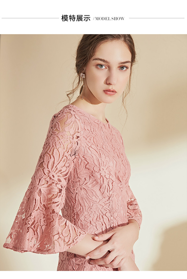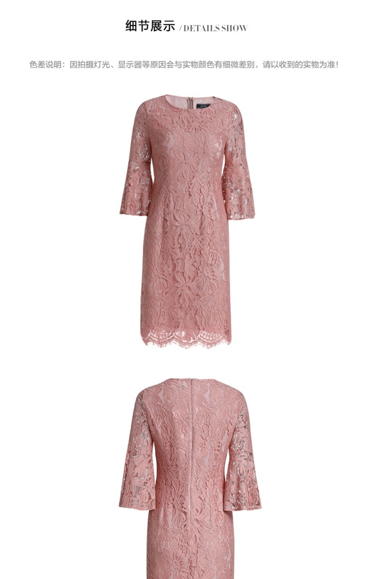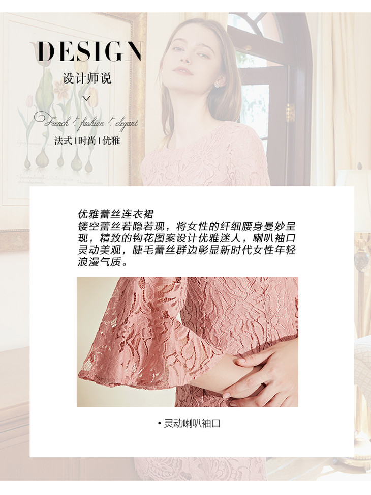 EITIE爱特爱女装蕾丝镂空钩花喇叭七分袖优雅连衣裙D1907319