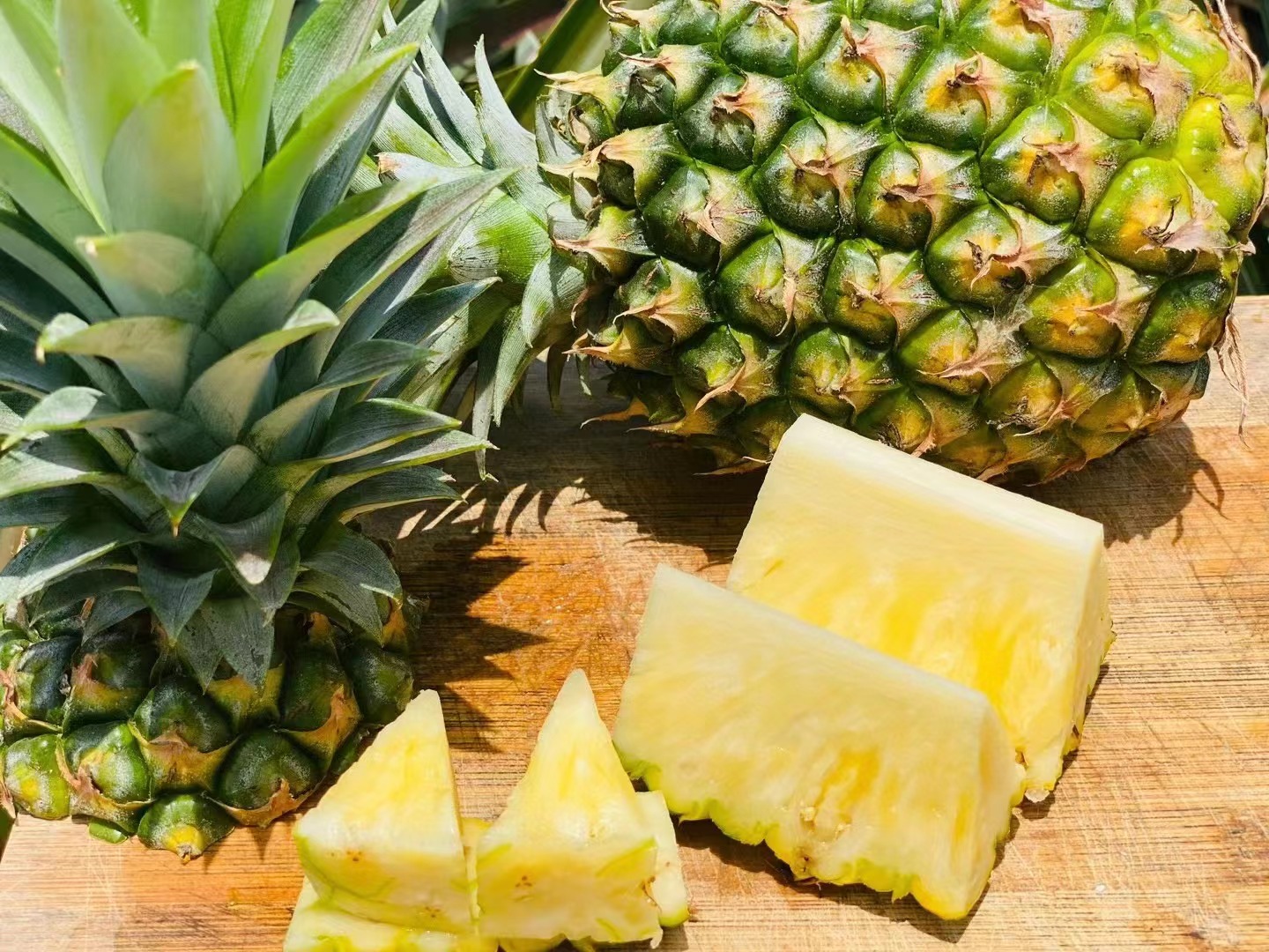 【香甜多汁】甜嫩的果肉,汁水充沛,每咬一口都是满满的幸福感。讲真,这个凤梨切出来,我一口气吃掉了一大盘,入口一嚼,汁水迸发,每一口都是天然的味道,简直不要太幸福!