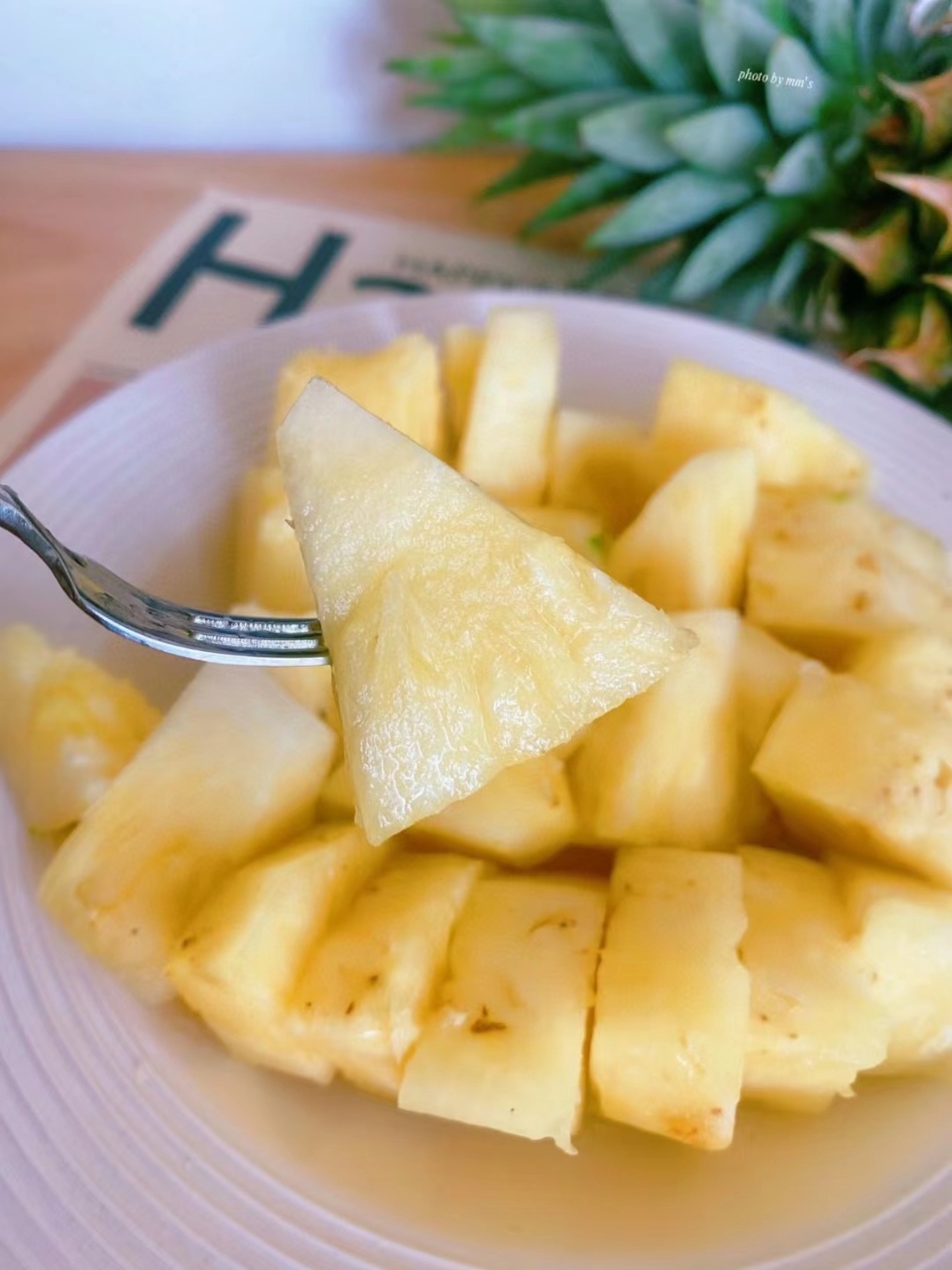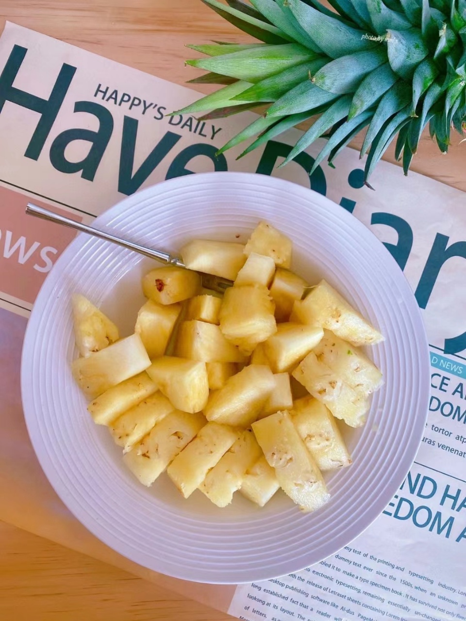 炎炎夏日,从冰箱中拿出一碟冰得透凉的凤梨,一咬,凉爽甘甜的汁水流到喉咙里。什么烦躁,倦意都没了!