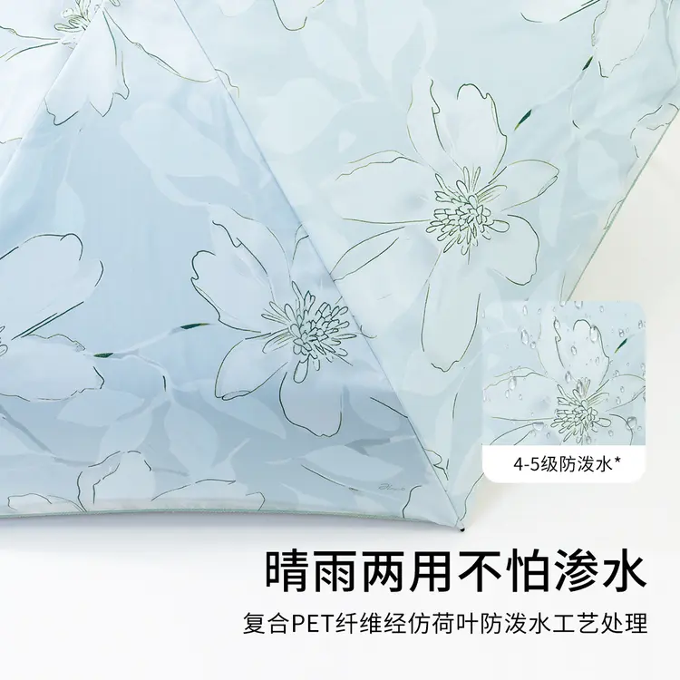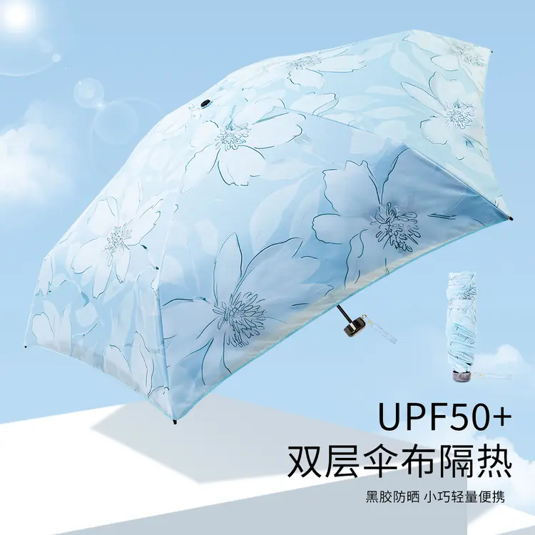 紫宝【小轻伞】陌上花语双层黑胶防紫外线五折晴雨伞