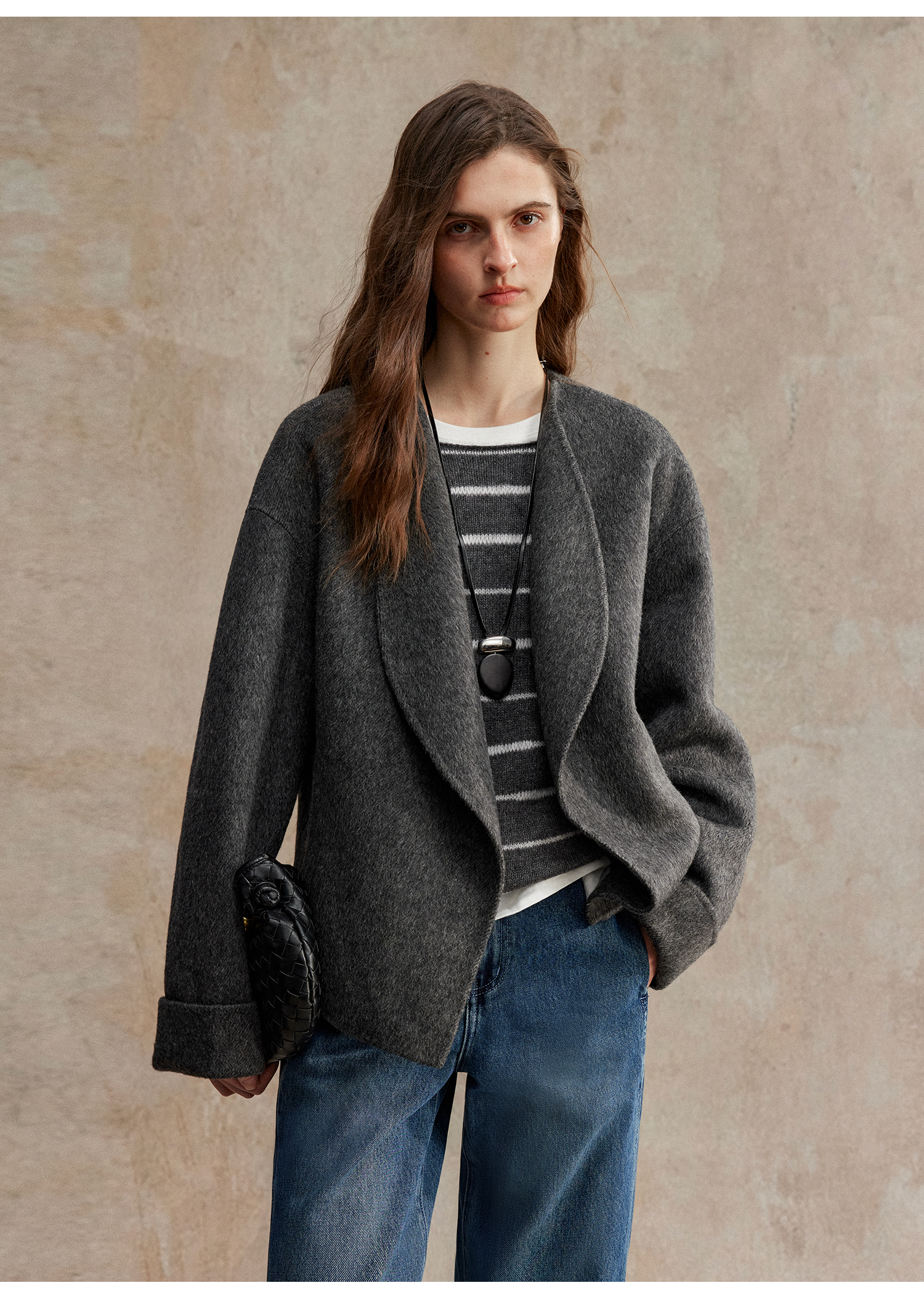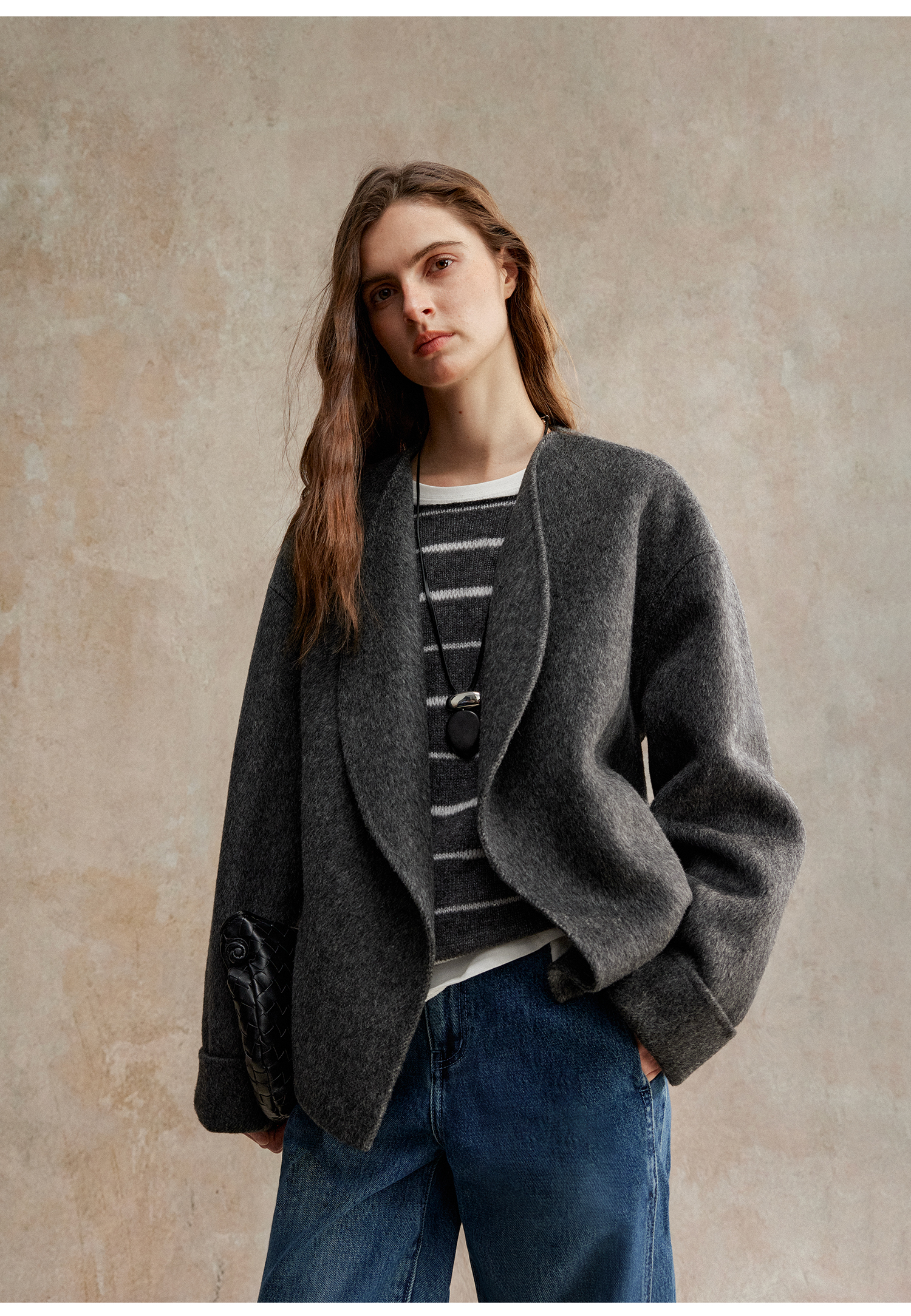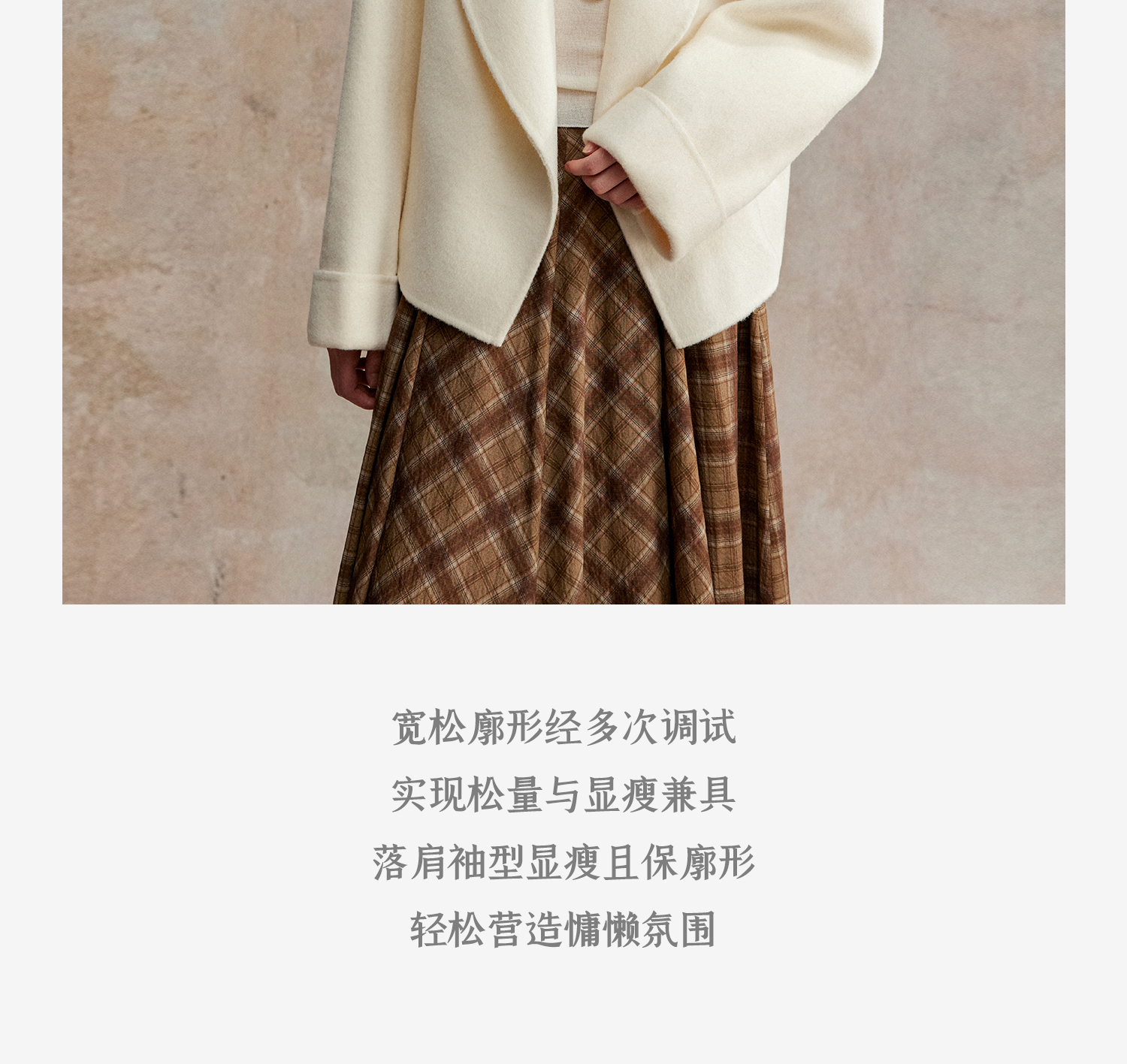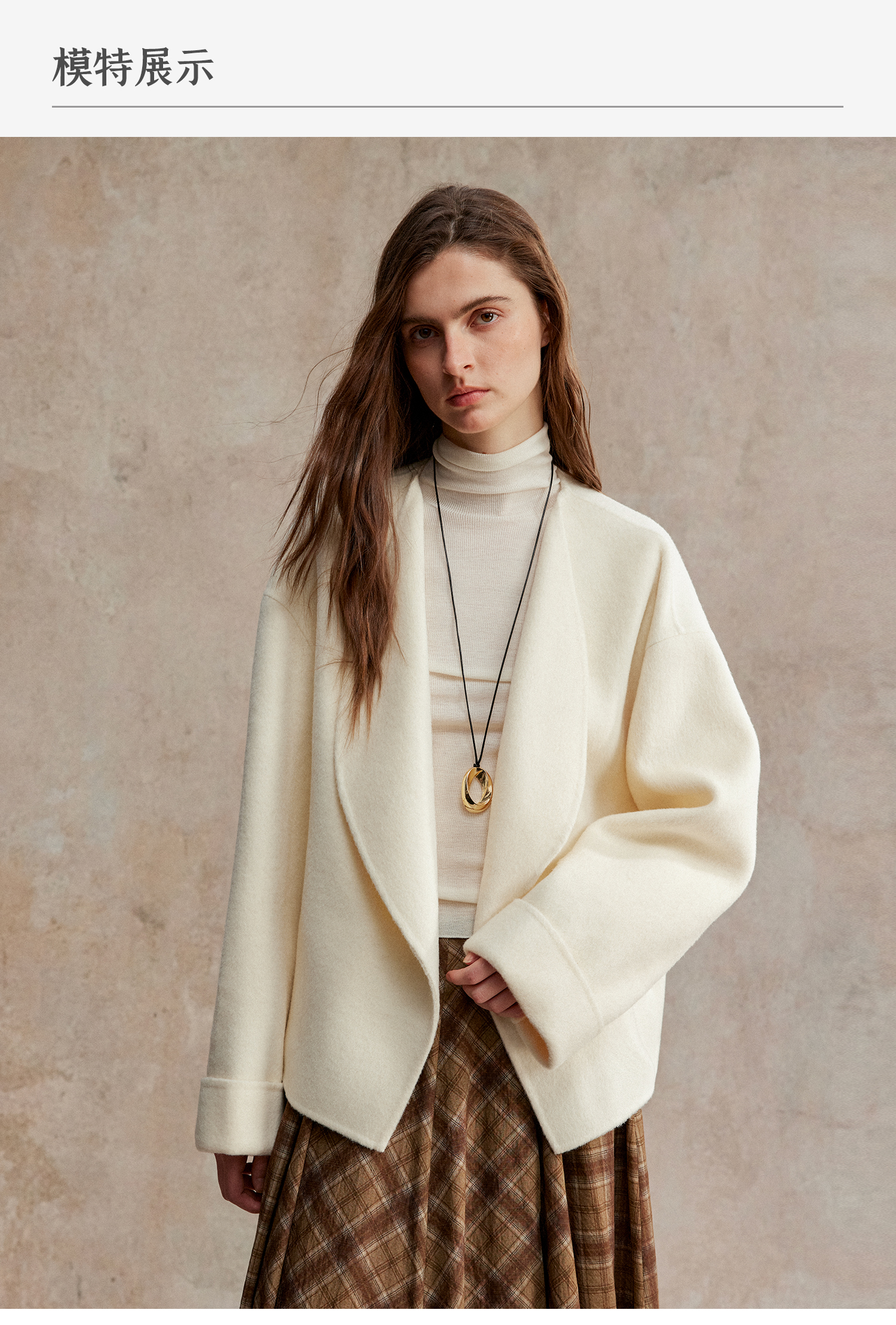 C+IMPRESS/西嘉骆驼绒绵羊毛 时髦松弛感宽松短款双面呢大衣外套
