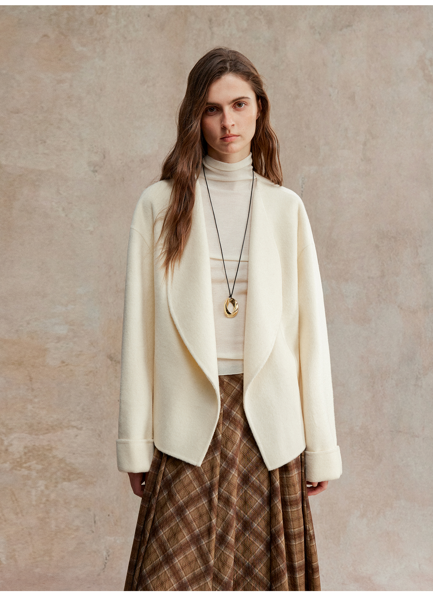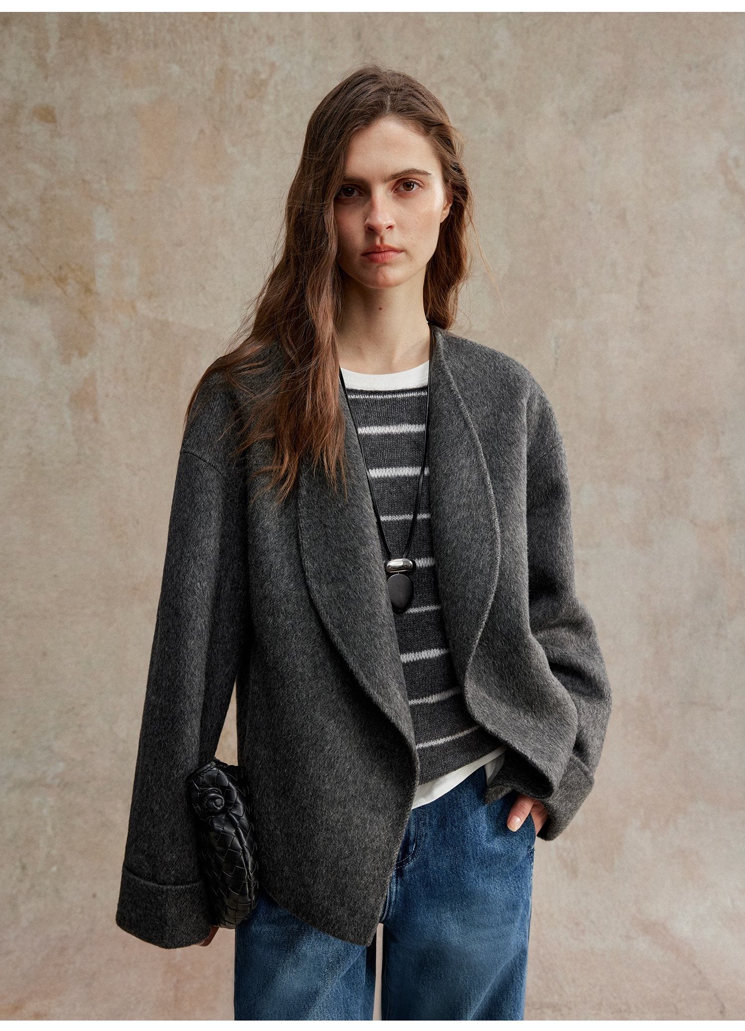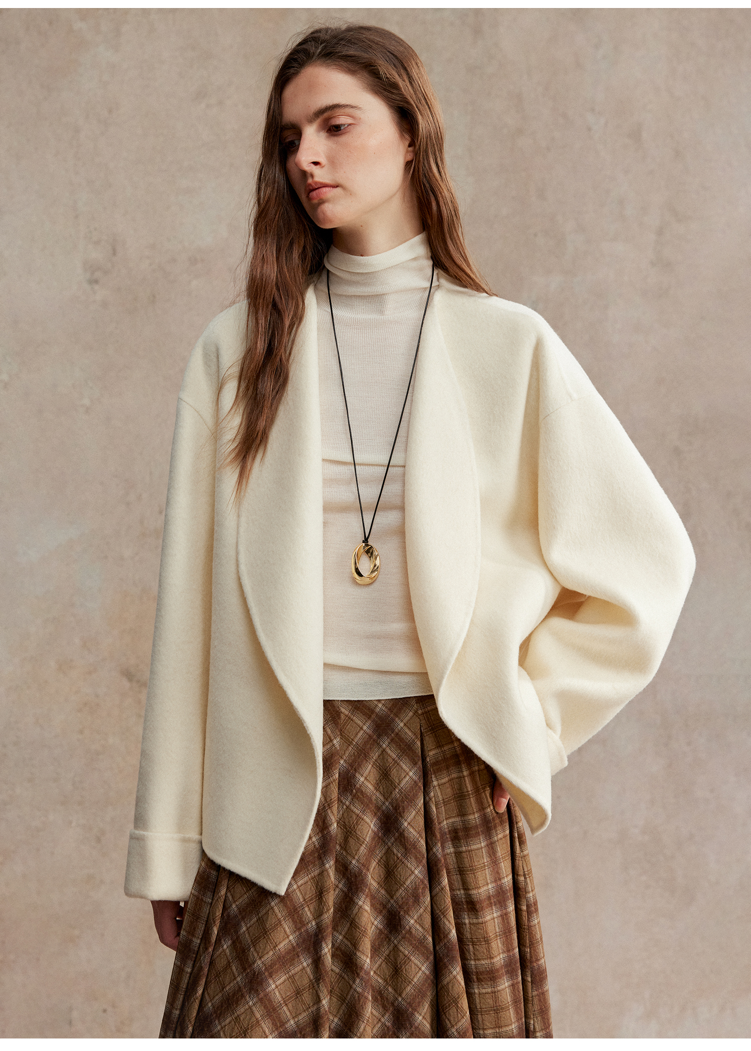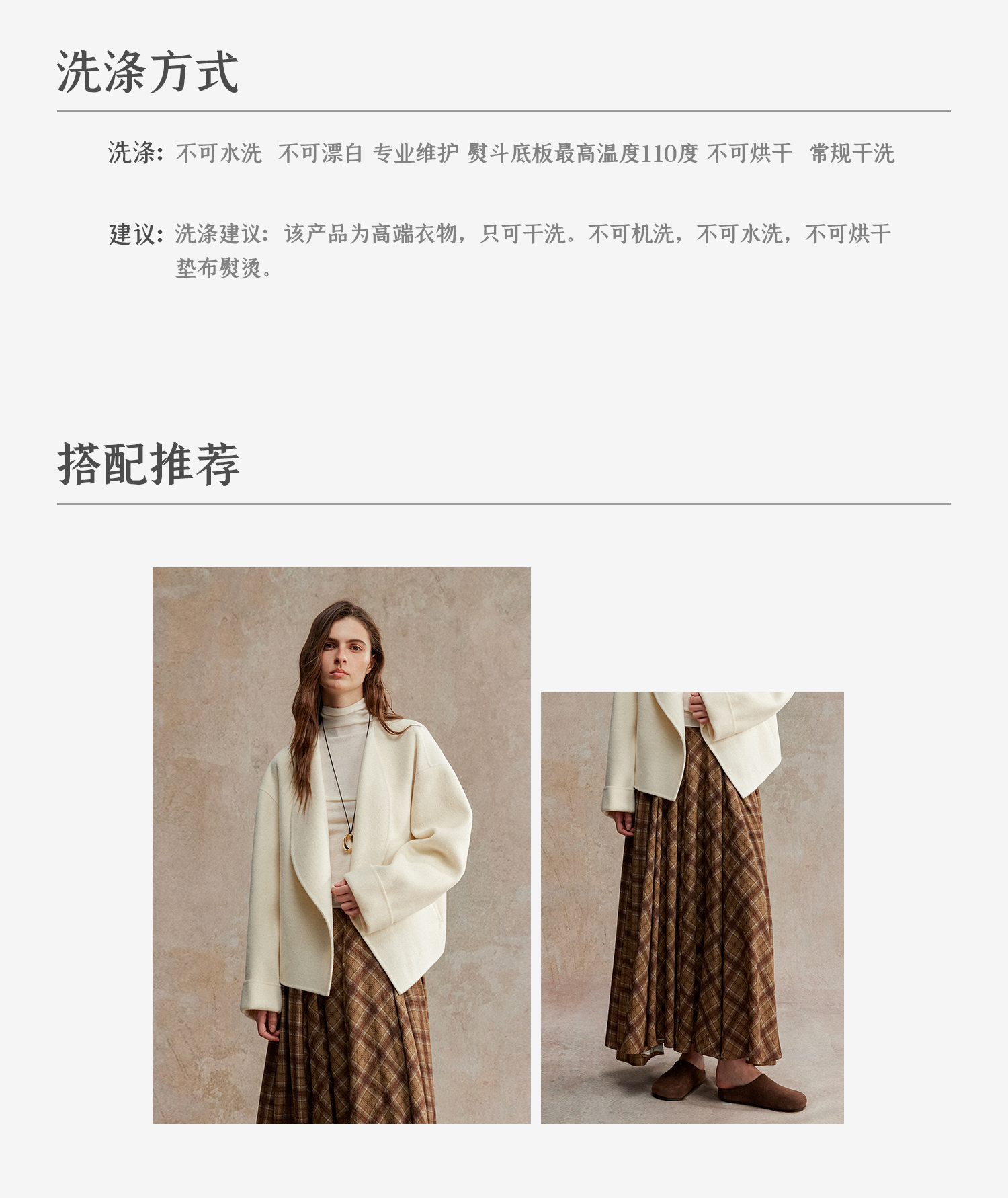 C+IMPRESS/西嘉骆驼绒绵羊毛 时髦松弛感宽松短款双面呢大衣外套