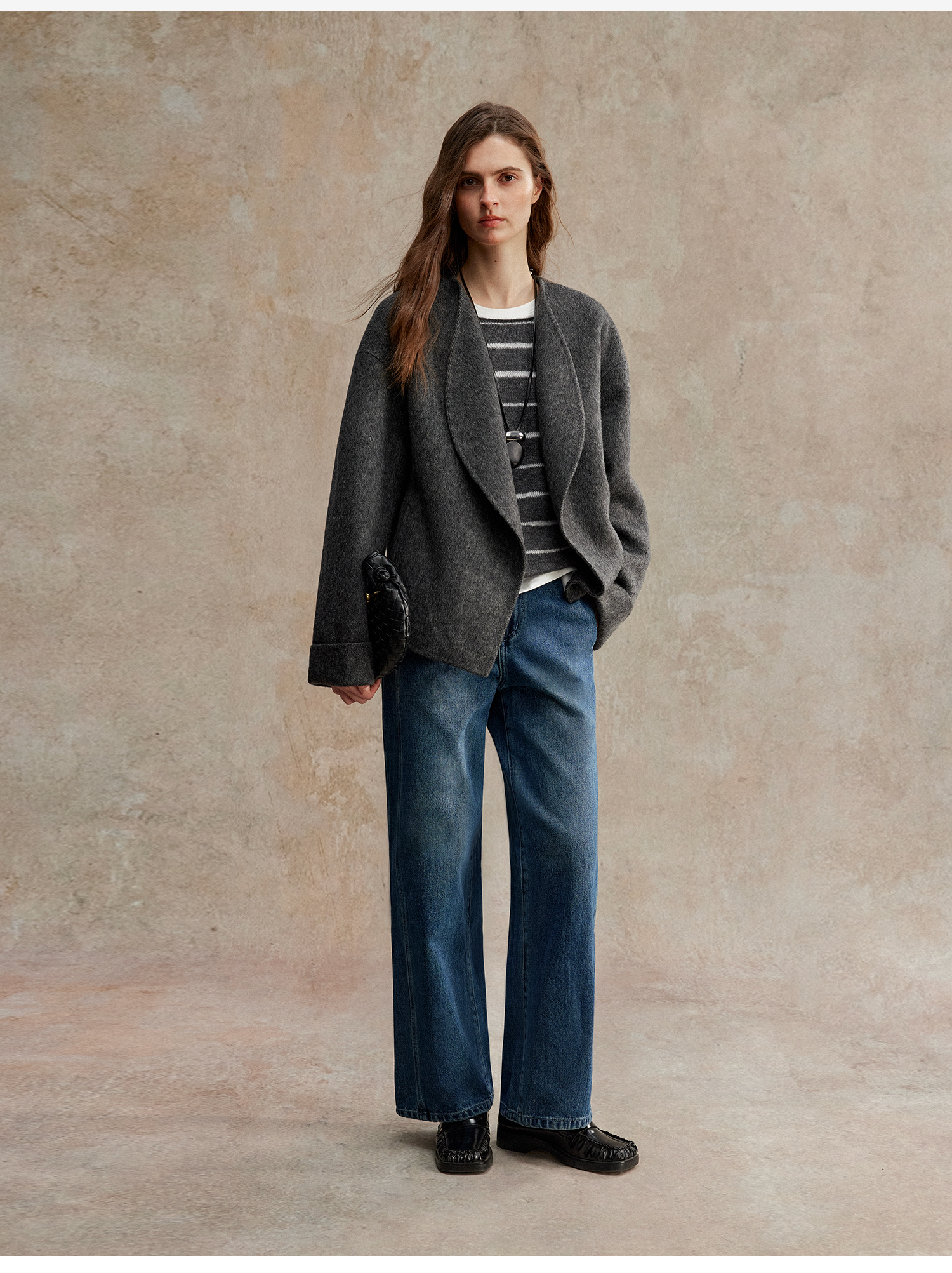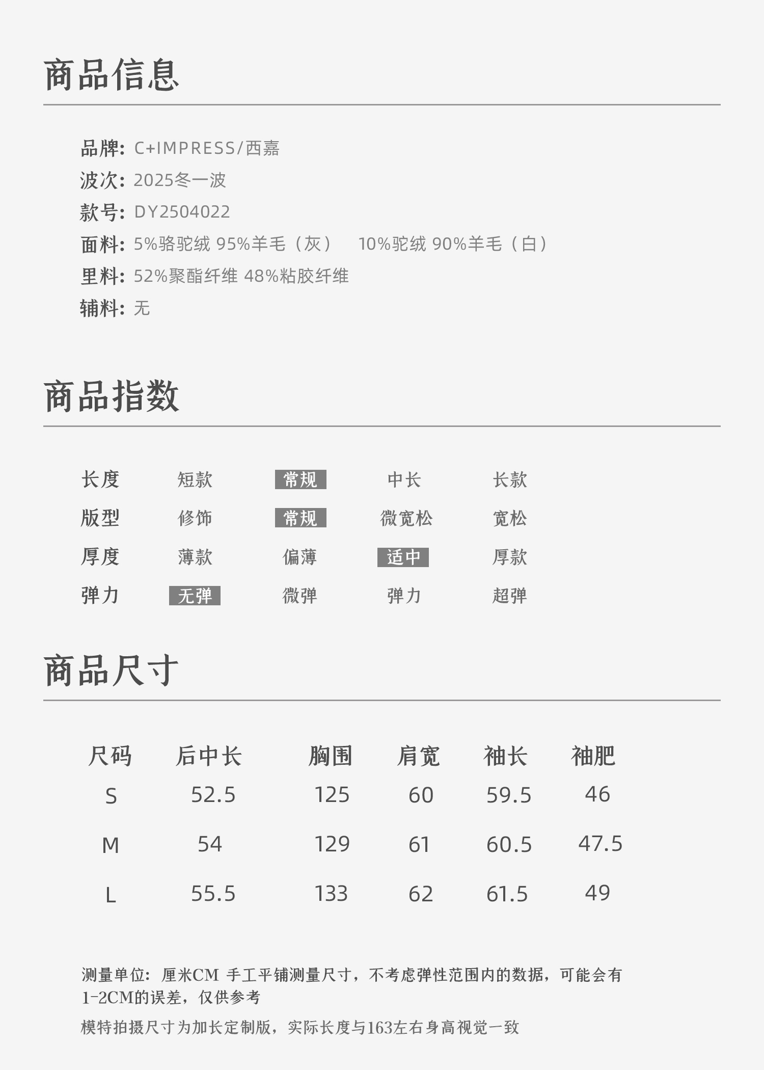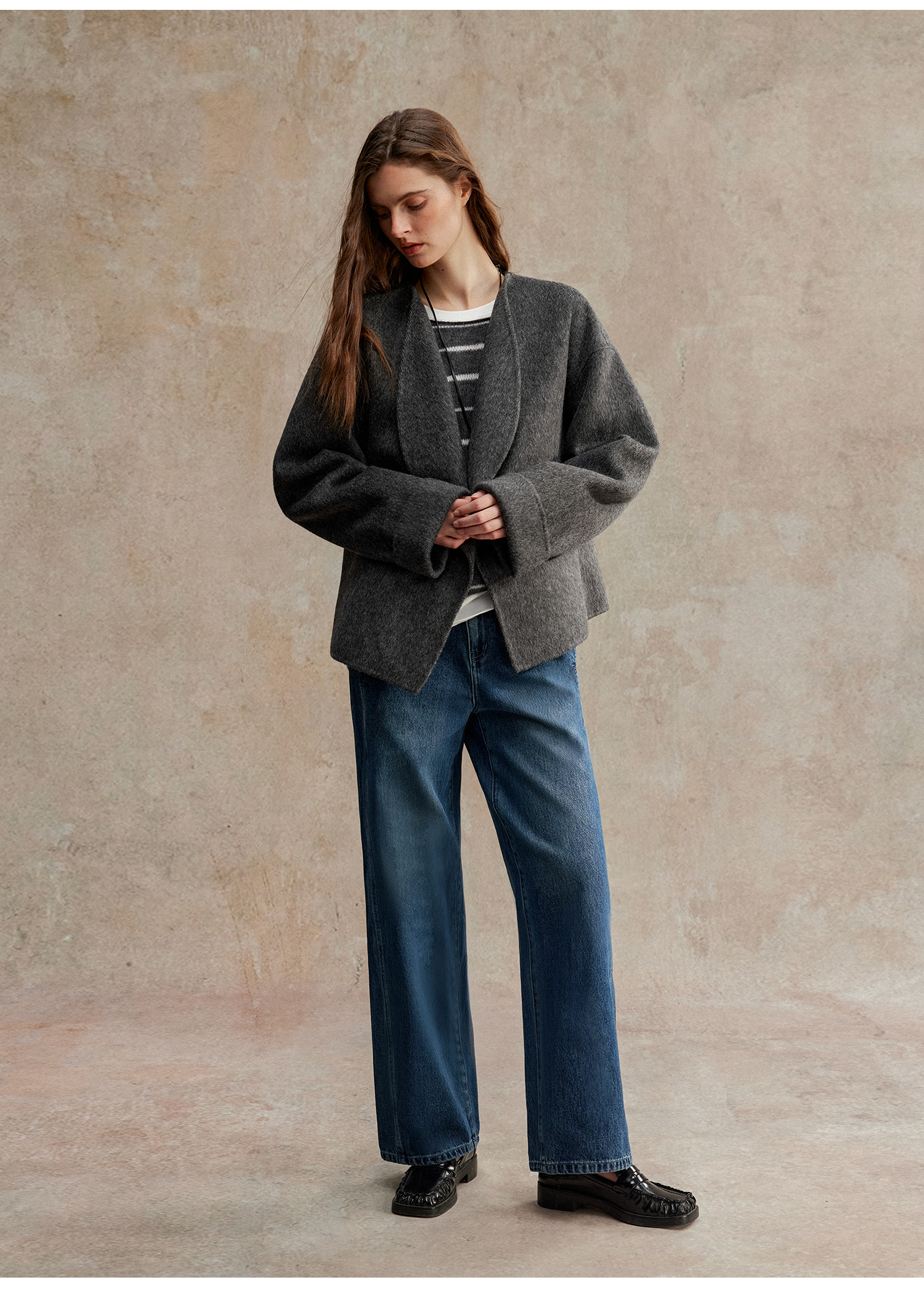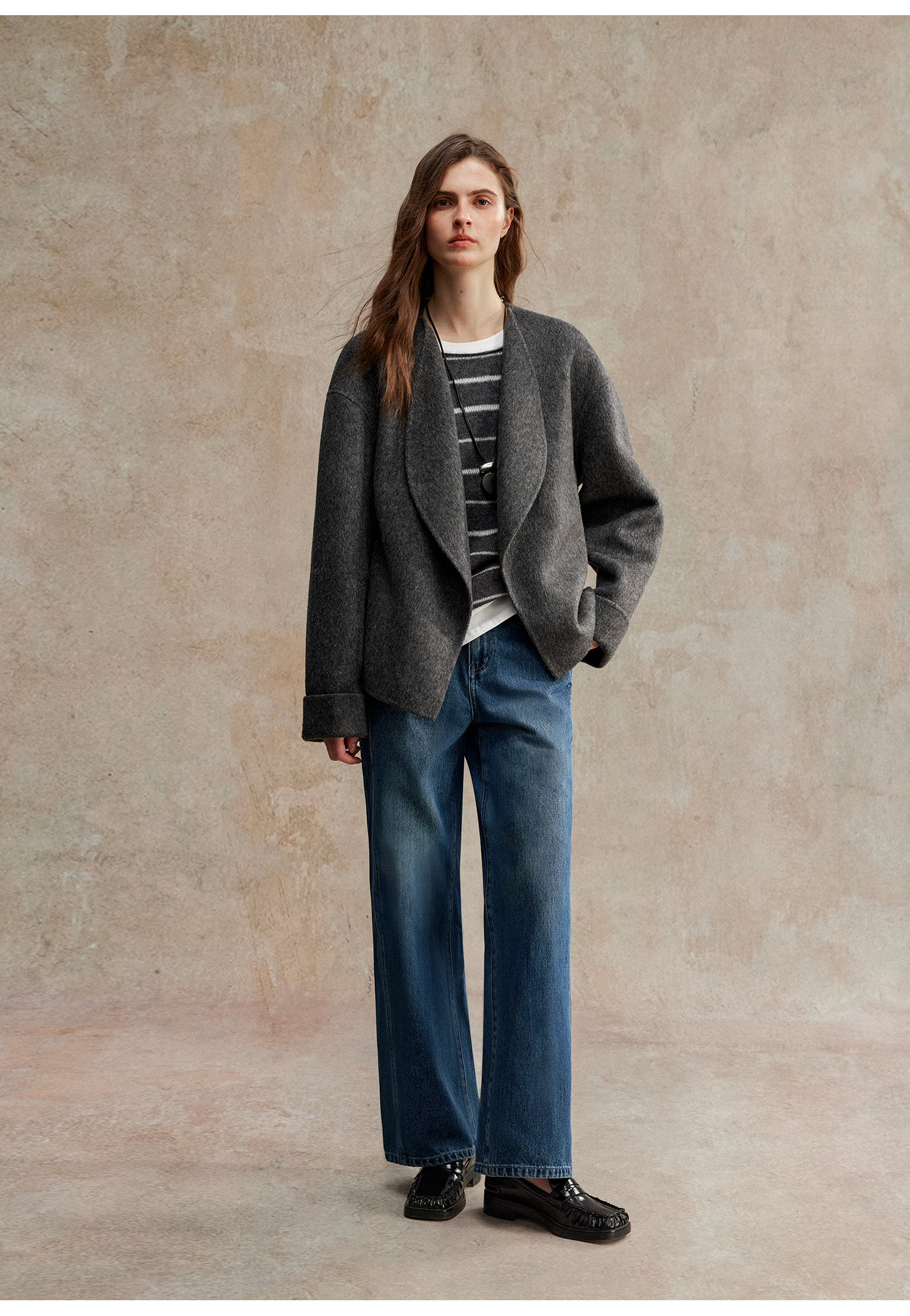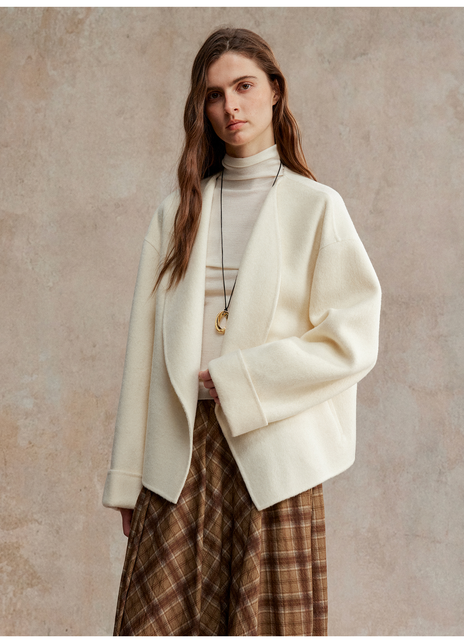 C+IMPRESS/西嘉骆驼绒绵羊毛 时髦松弛感宽松短款双面呢大衣外套