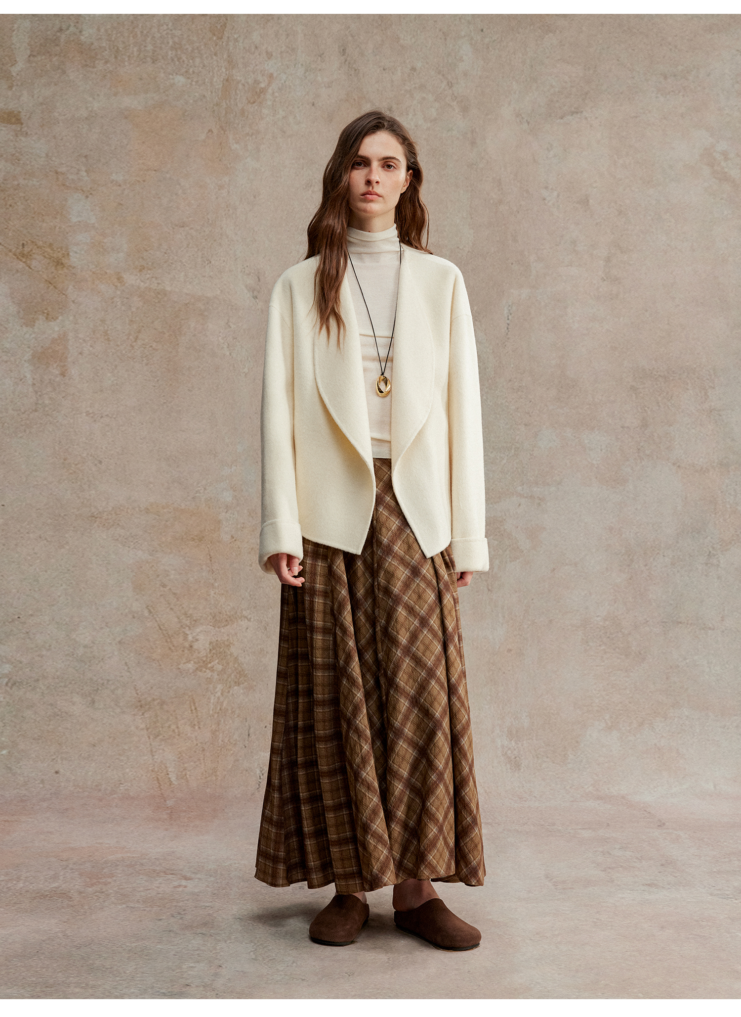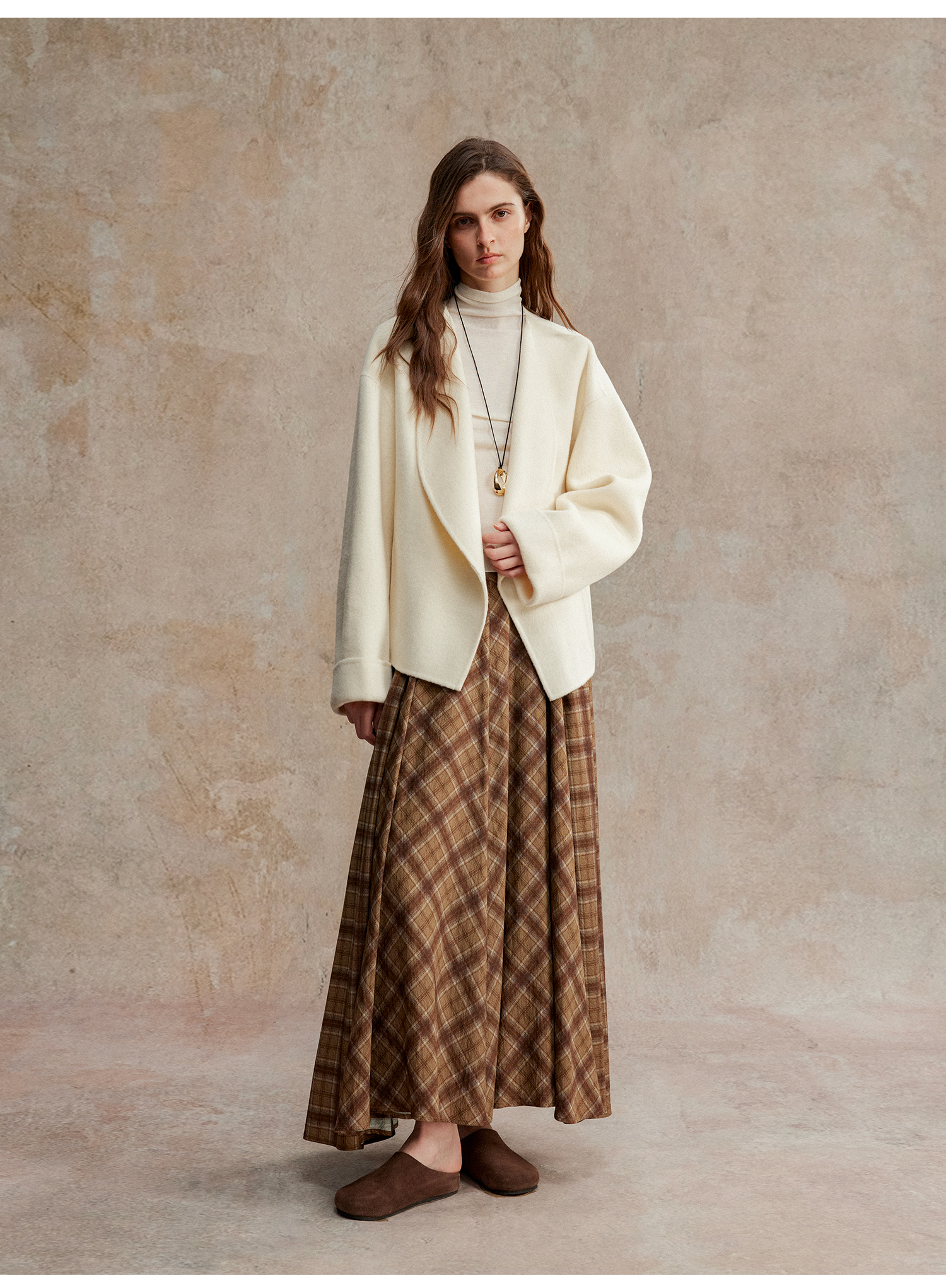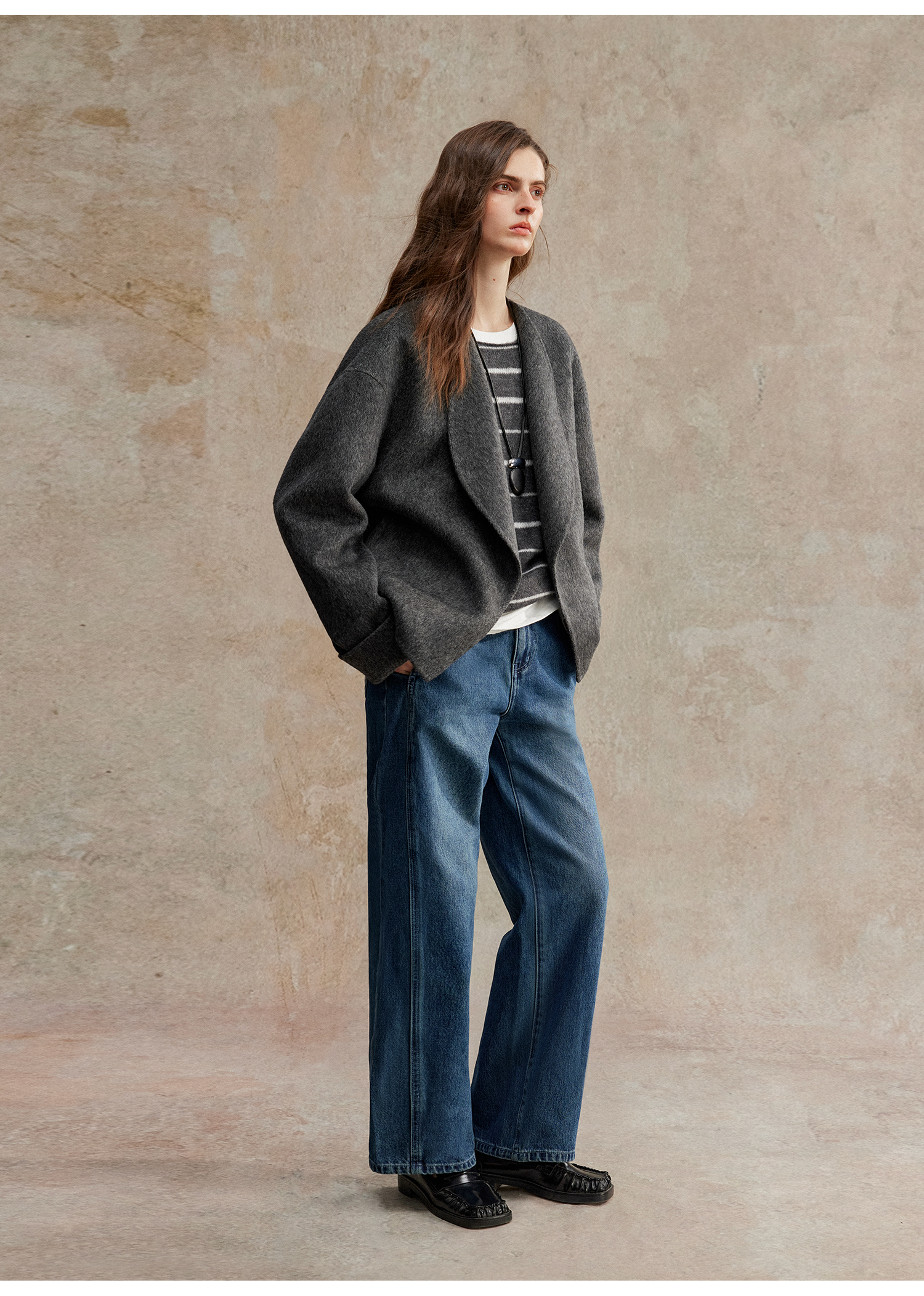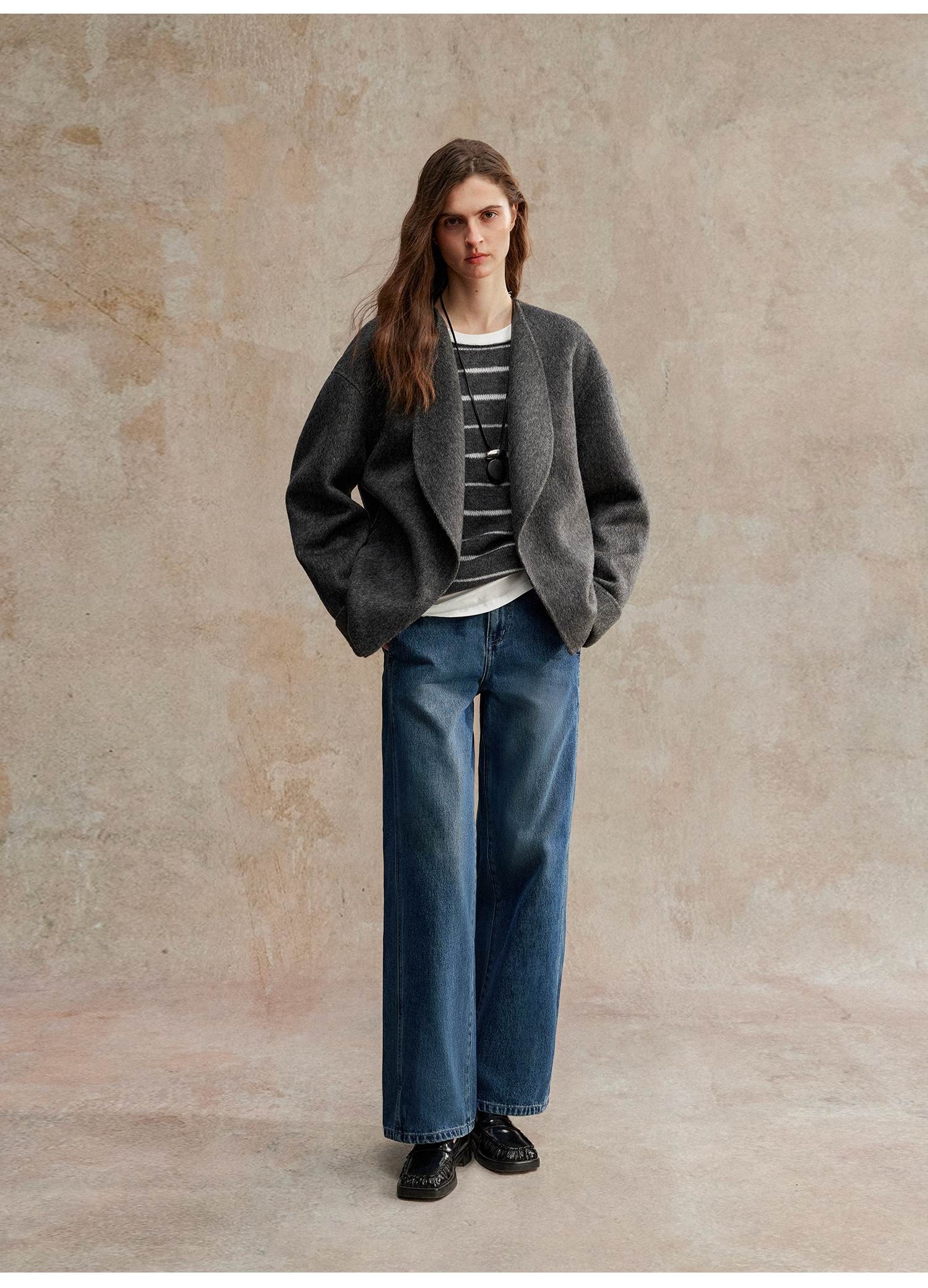C+IMPRESS/西嘉骆驼绒绵羊毛 时髦松弛感宽松短款双面呢大衣外套
