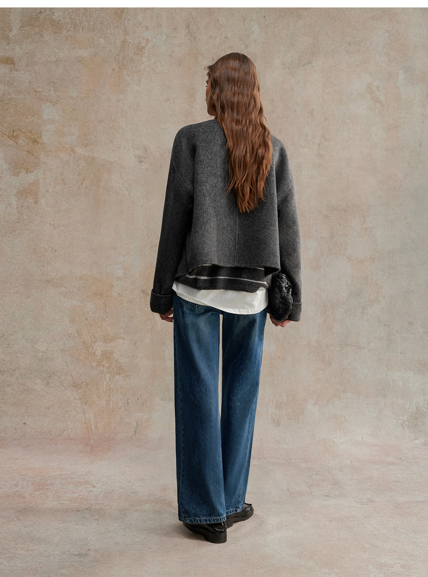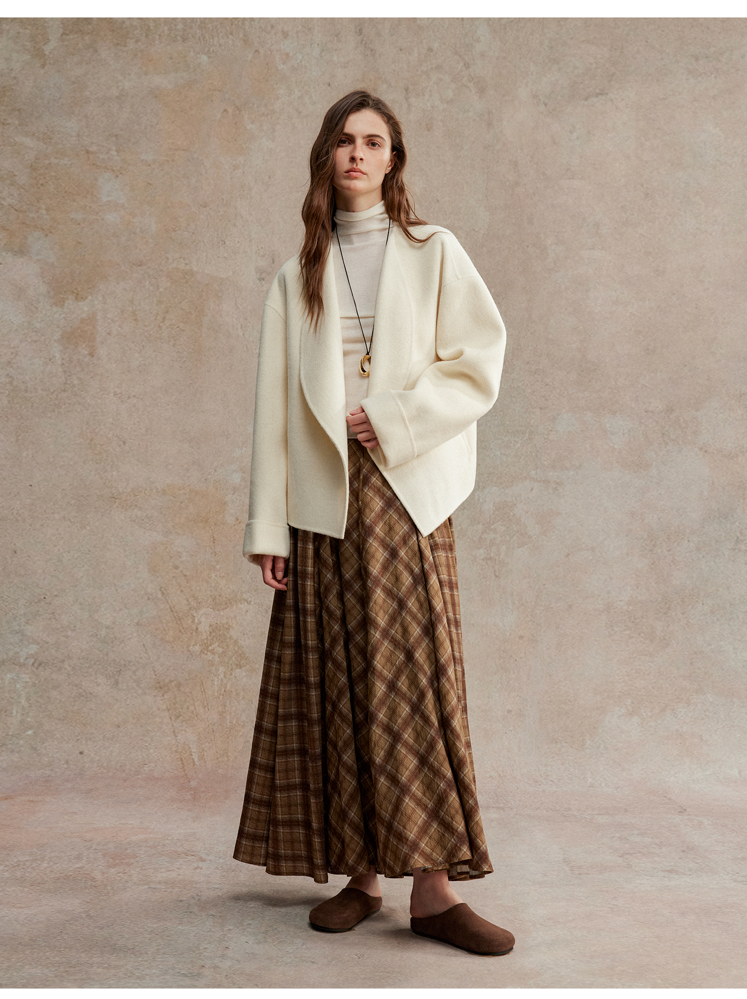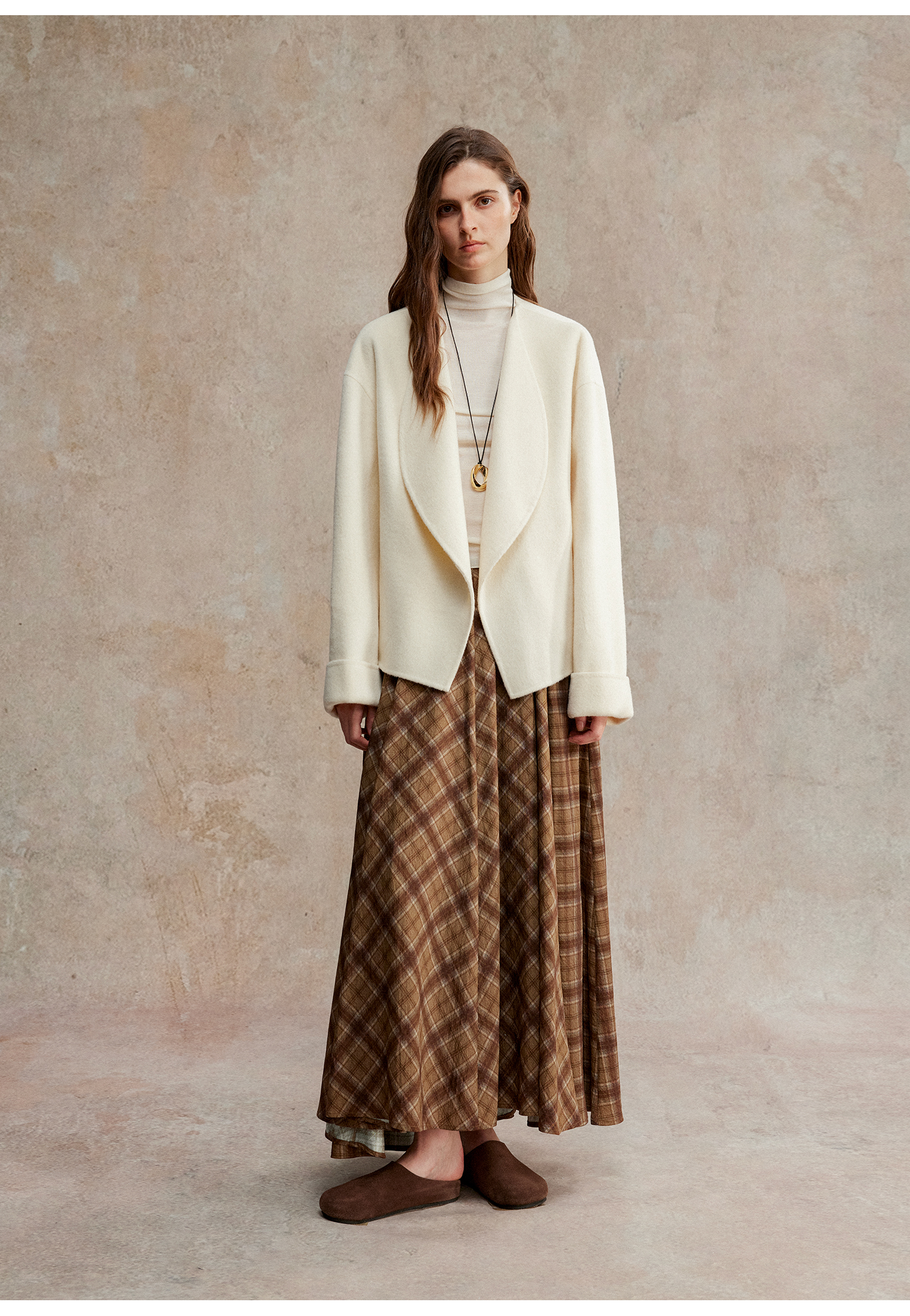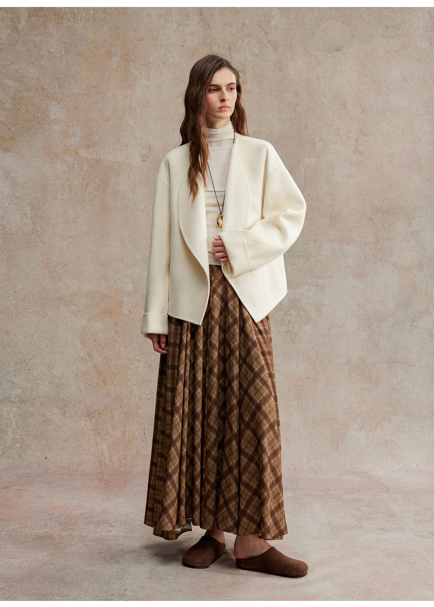 C+IMPRESS/西嘉骆驼绒绵羊毛 时髦松弛感宽松短款双面呢大衣外套