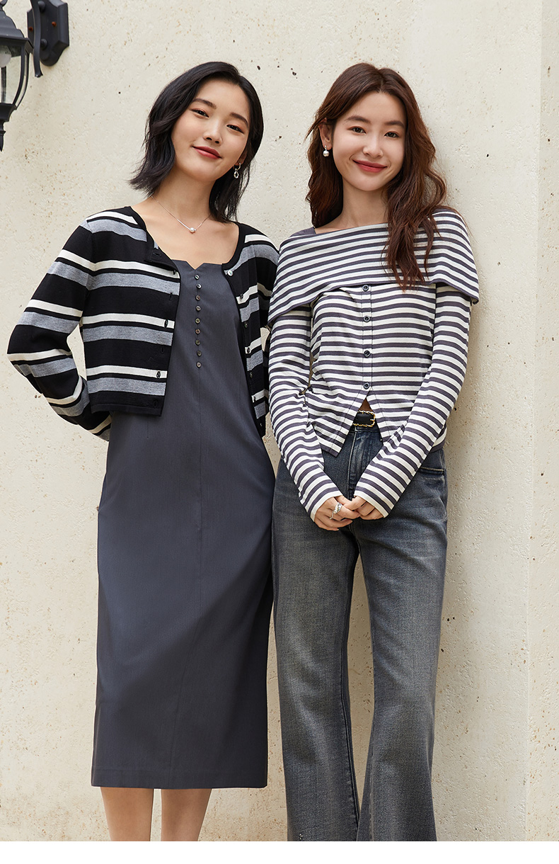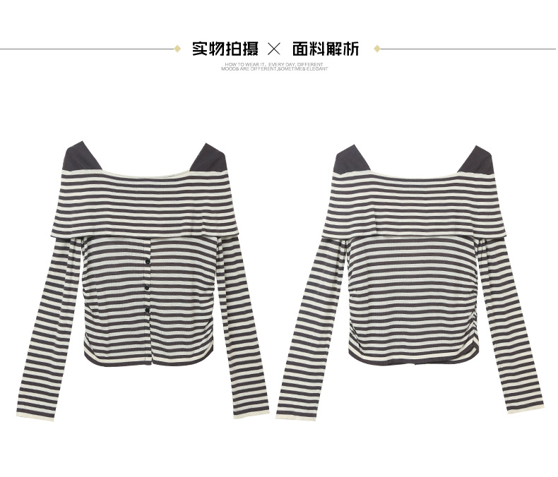 法式风情拉满!条纹一字肩长袖上衣,尽显慵懒优雅