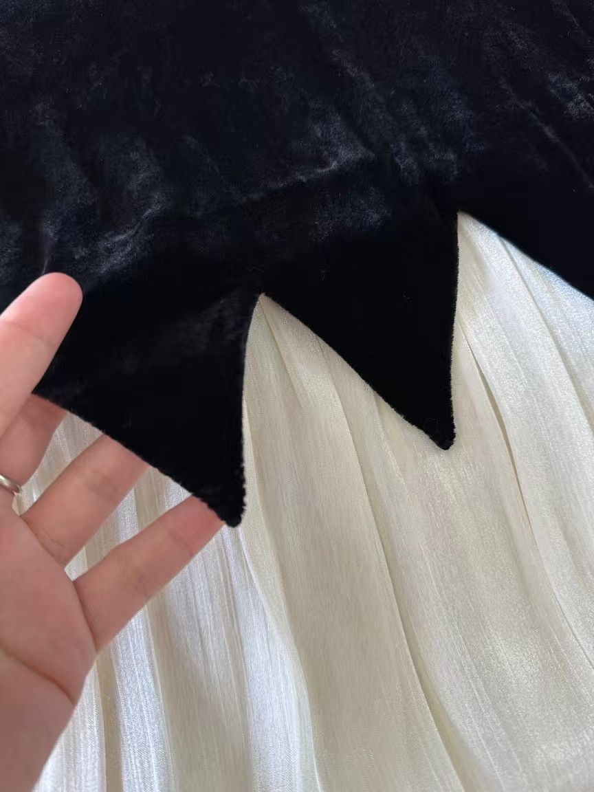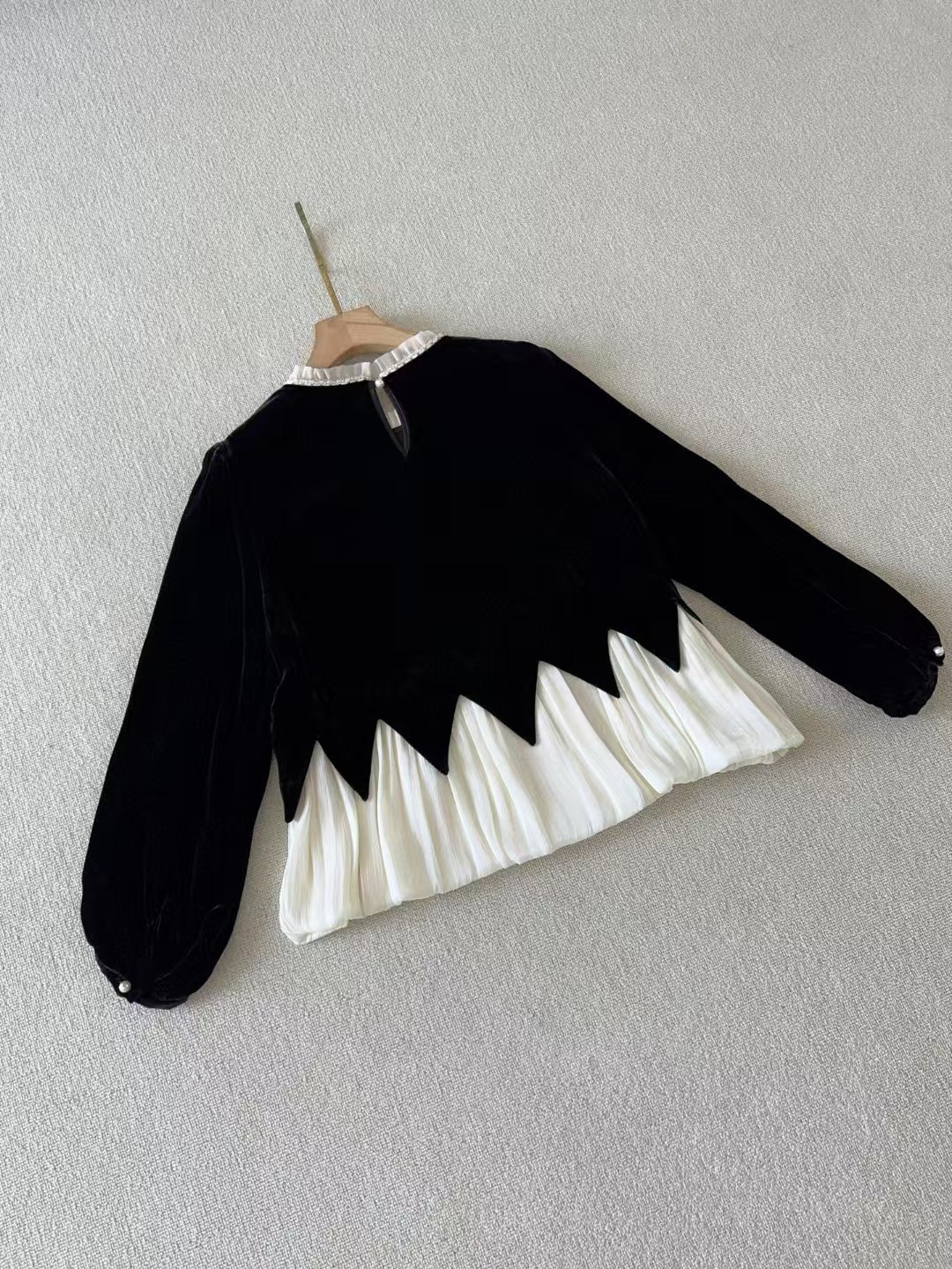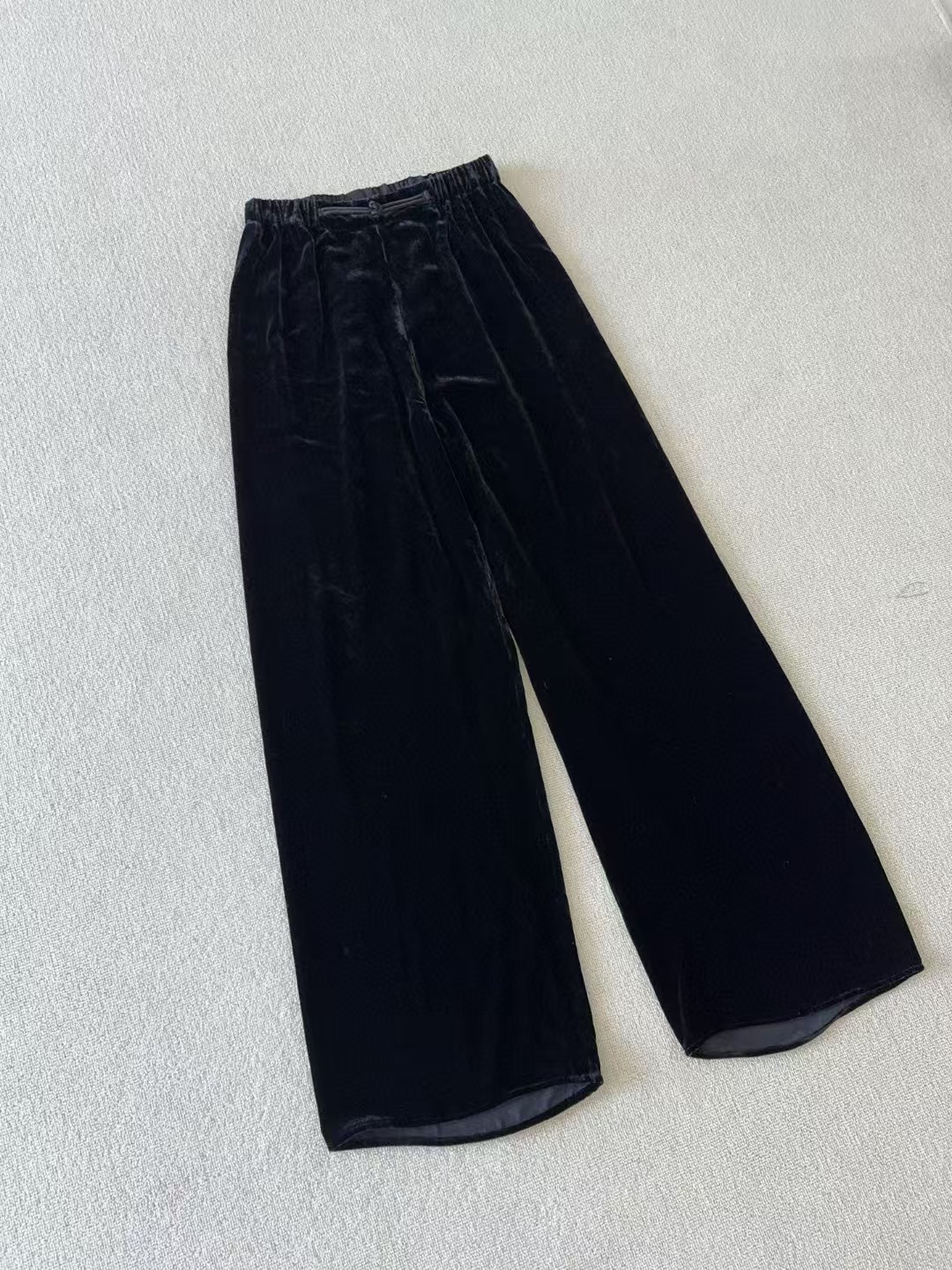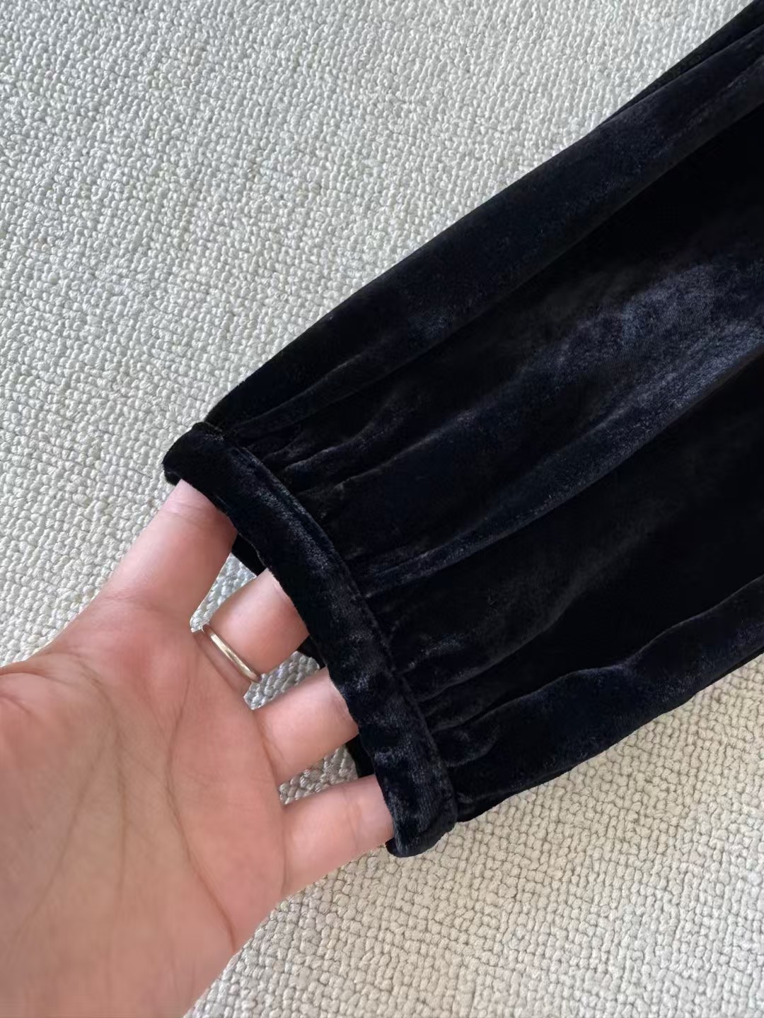 【à perles】客供真丝丝绒 拼接黑色真丝丝绒上衣+裤子套装系列