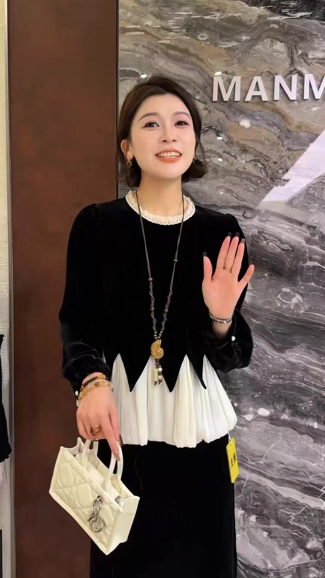 大王*天丝拼接黑色真丝丝绒上衣+裤子套装系列,客供100%真丝丝绒面料 短绒立体,光泽莹润篙阶比一般丝绒触手更柔 更奢hua亲肤有质感,舒爽不易皱,满满的品质感,领口荷叶边钉珠设计点缀,更添优雅细节,低调的精致、高级!宽松舒适的版型,简单搭配就能高级又大气;优雅但又不失精致的感觉,气质知性感由里到外的散出来!
