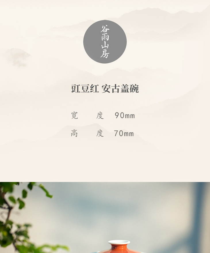 「茶器」豇豆红安古盖碗