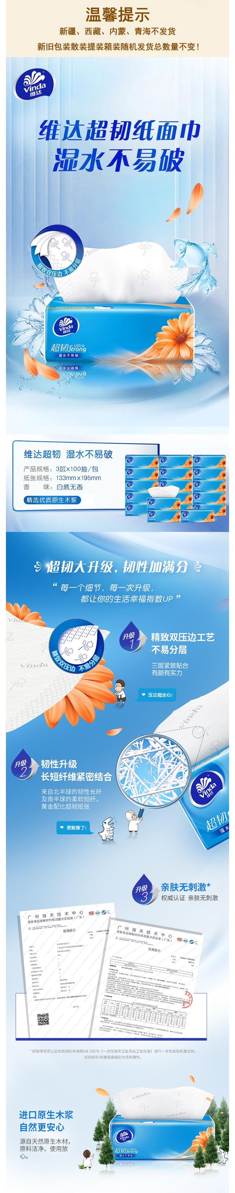 Vinda维达 超韧抽纸3层100抽*8包 vw100cr-08p