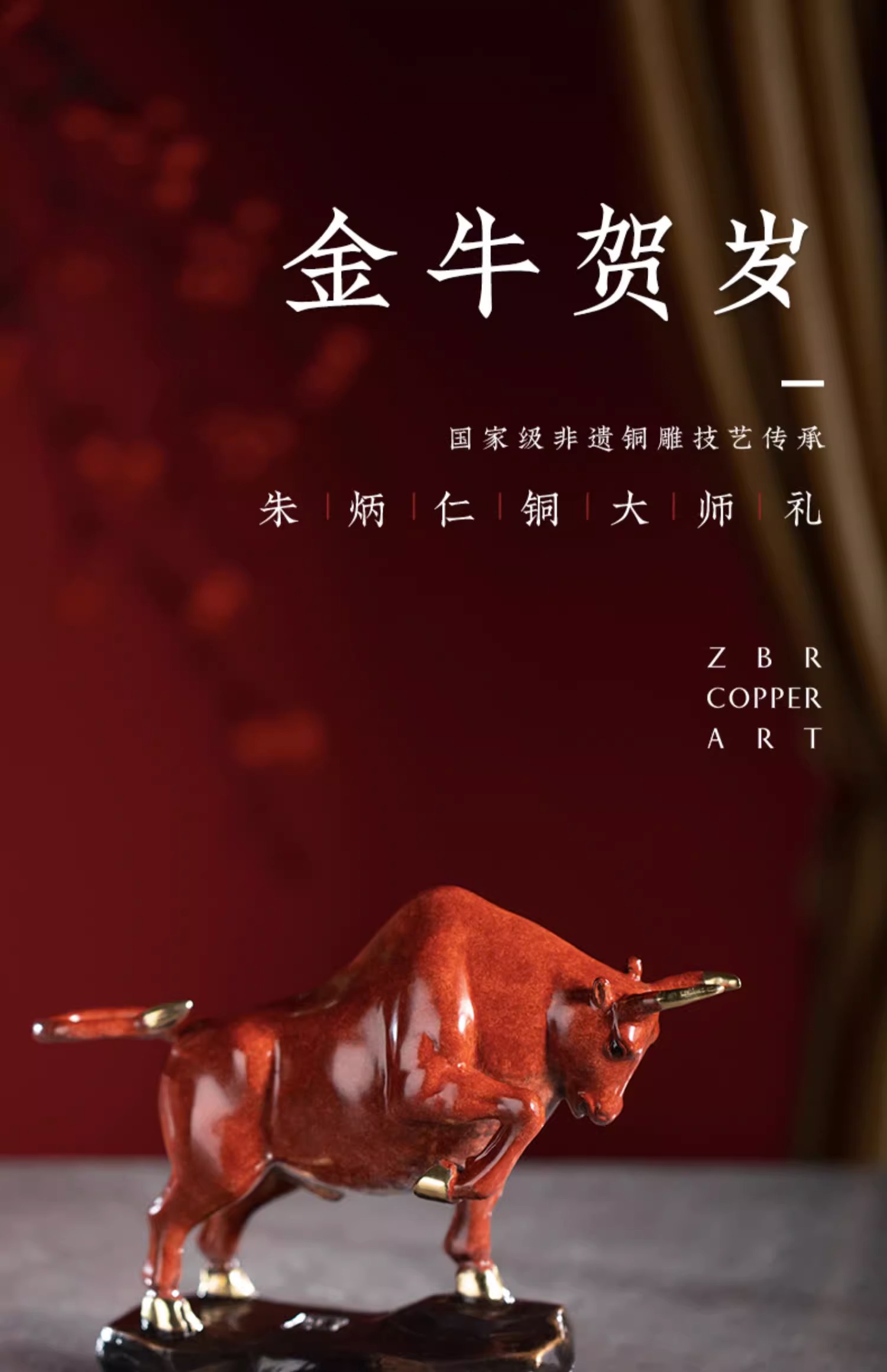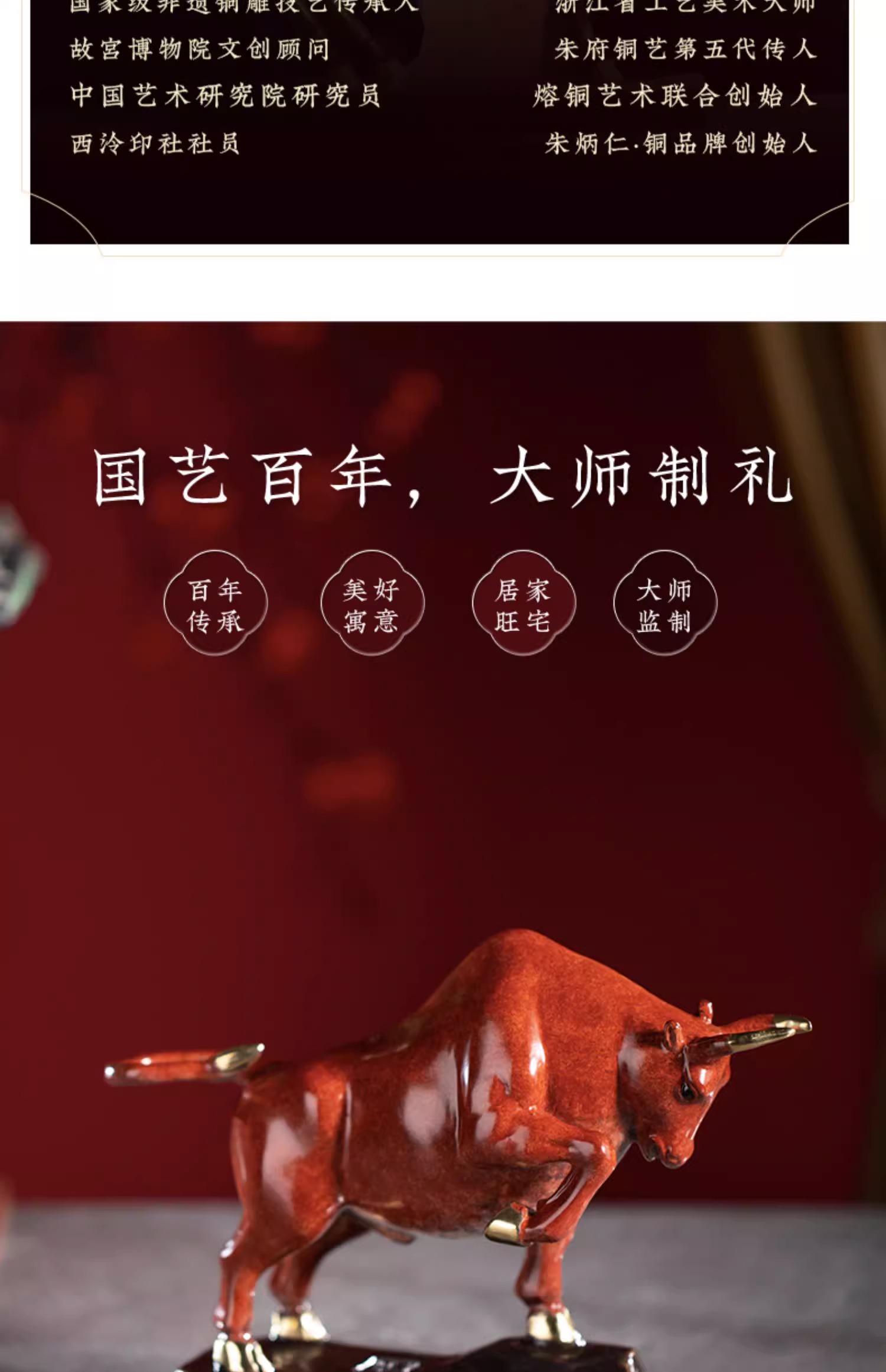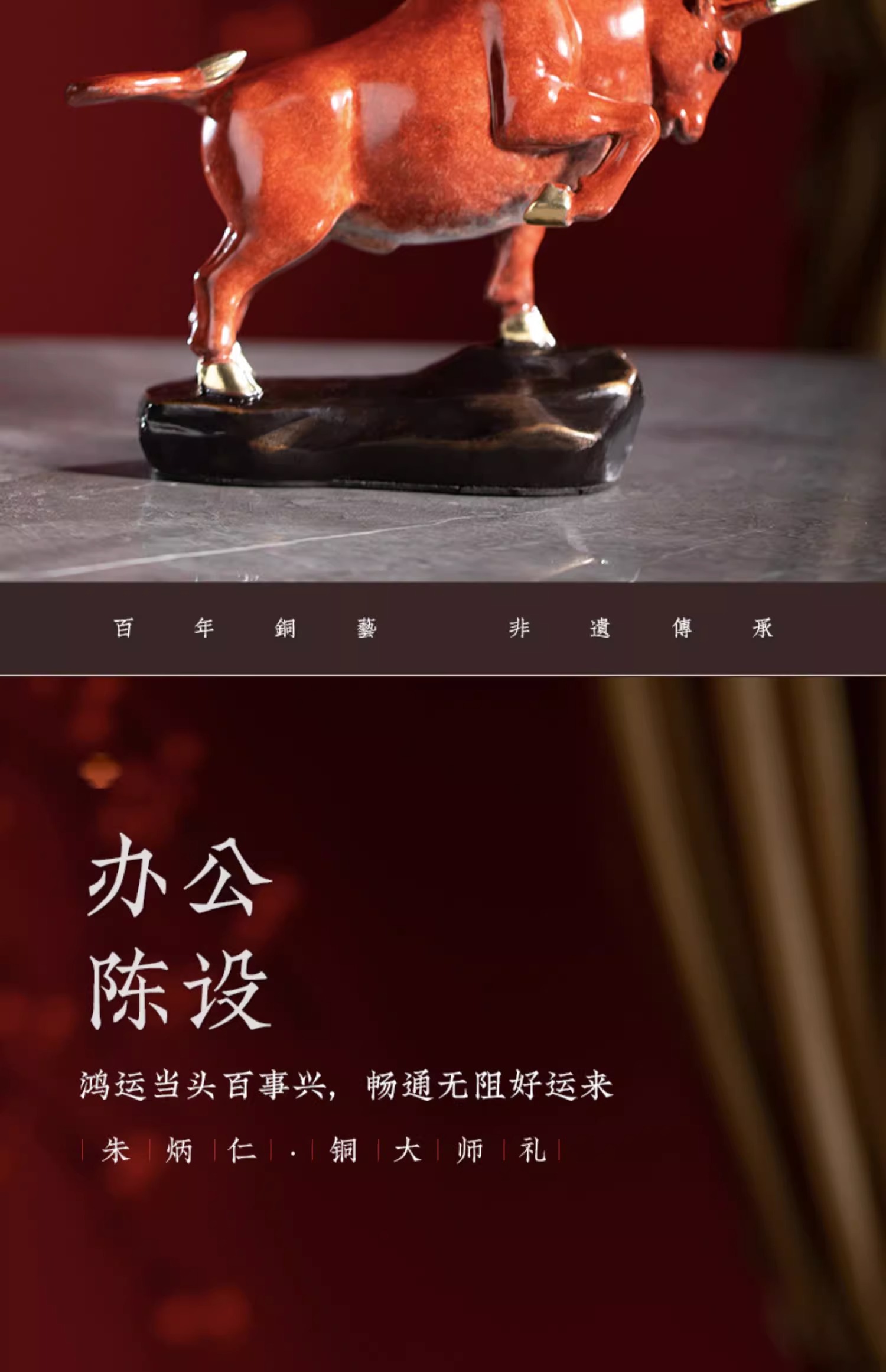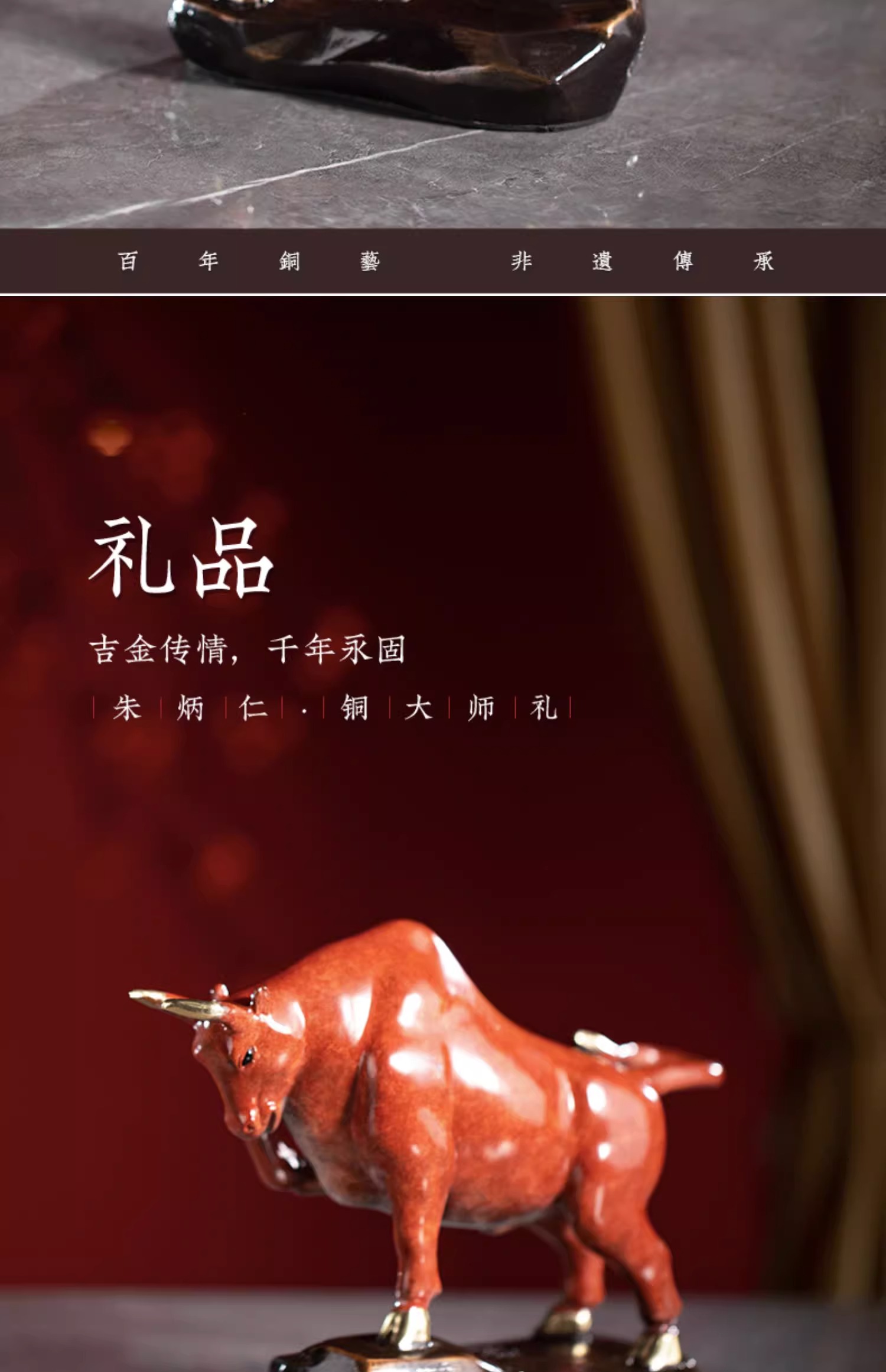 朱炳仁铜 十二生肖金牛贺岁彩色铜雕办公桌摆件 工艺品办公桌摆件