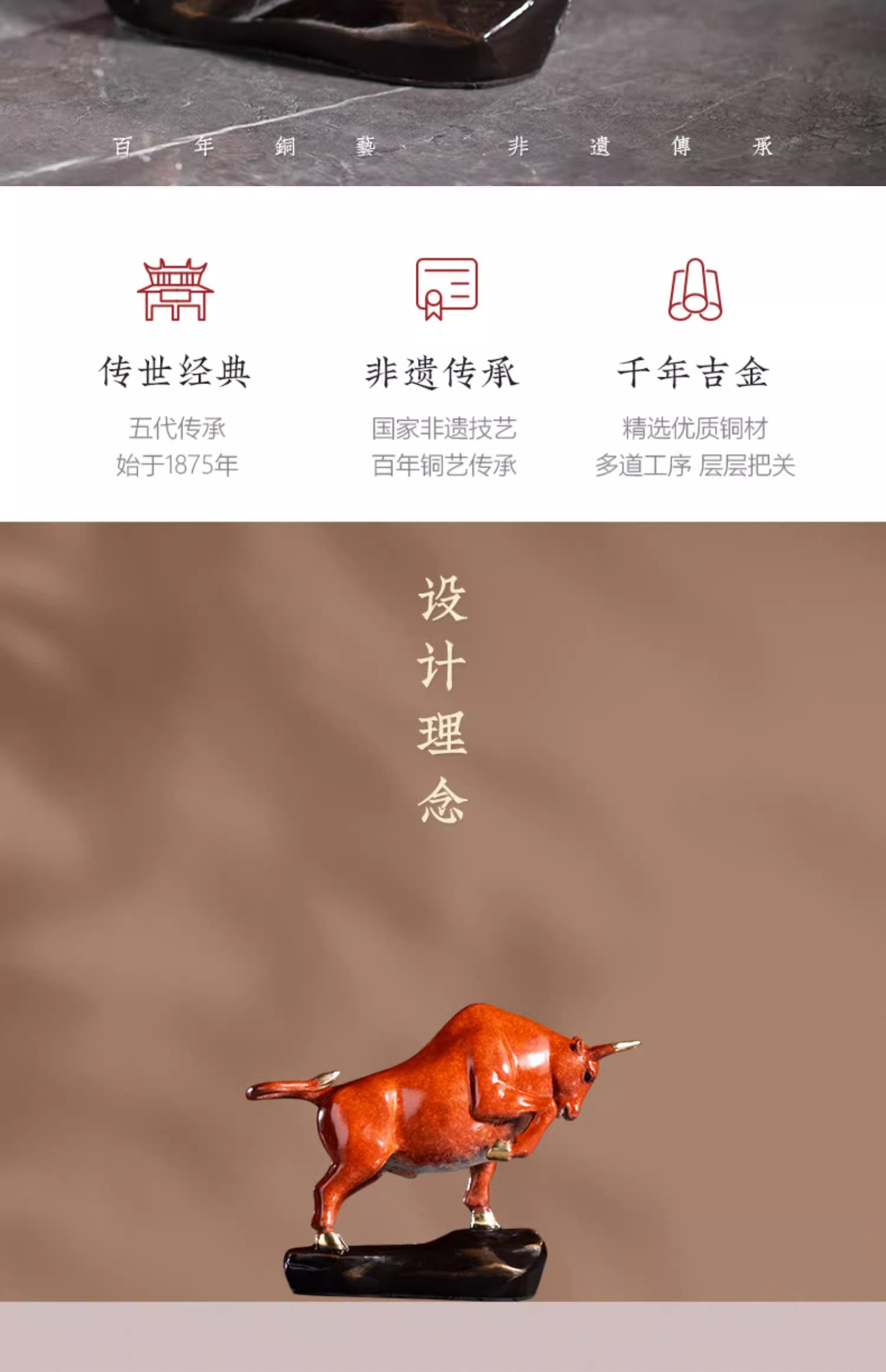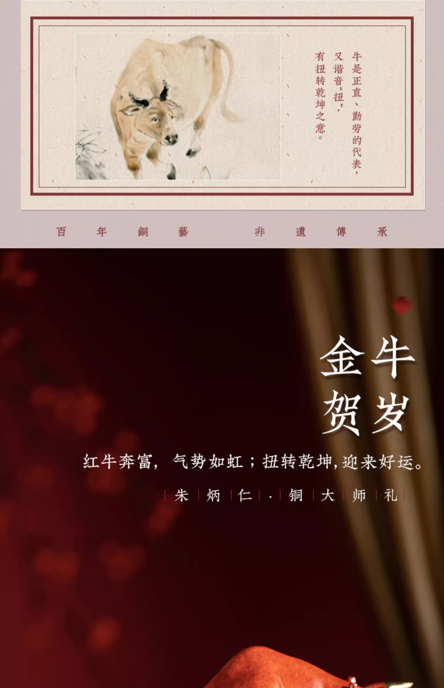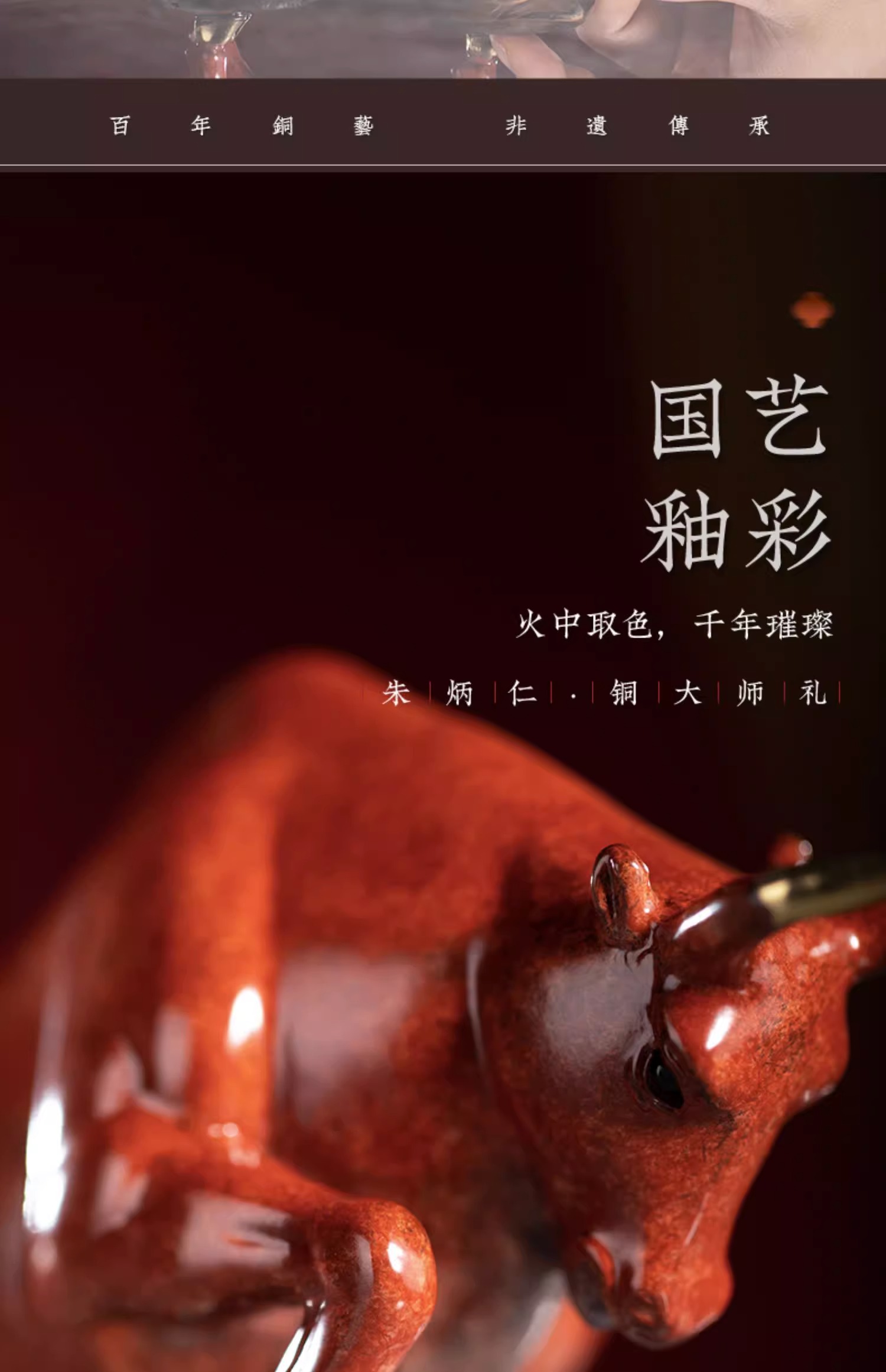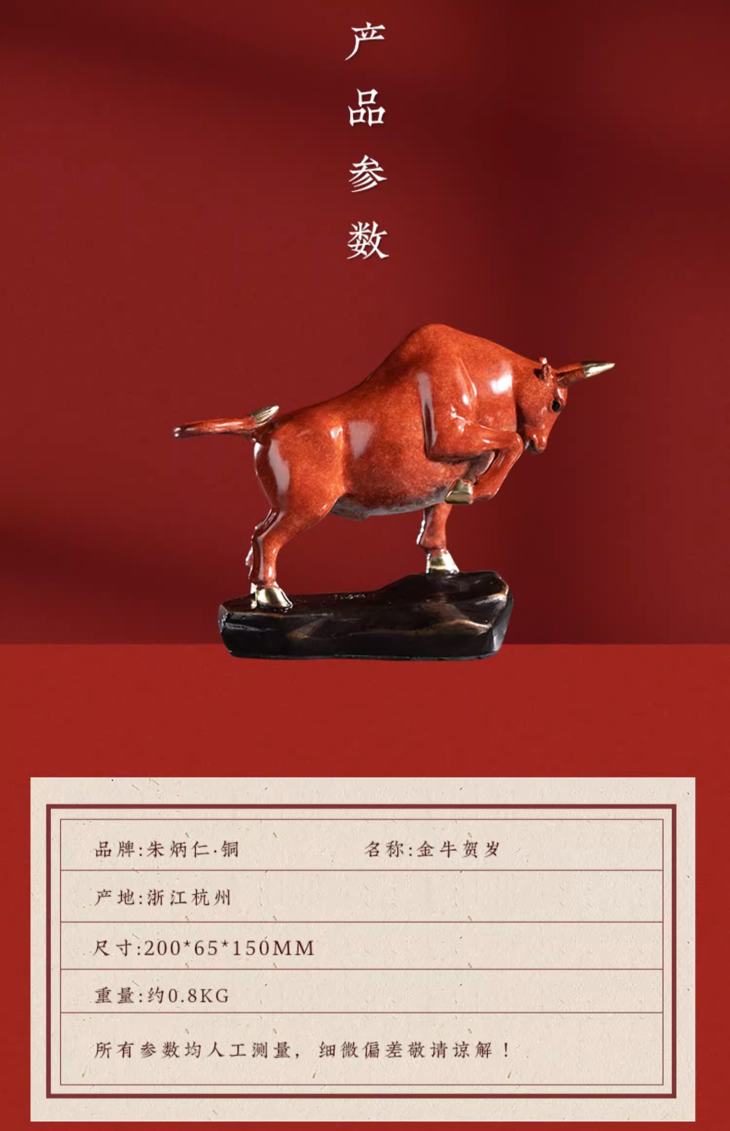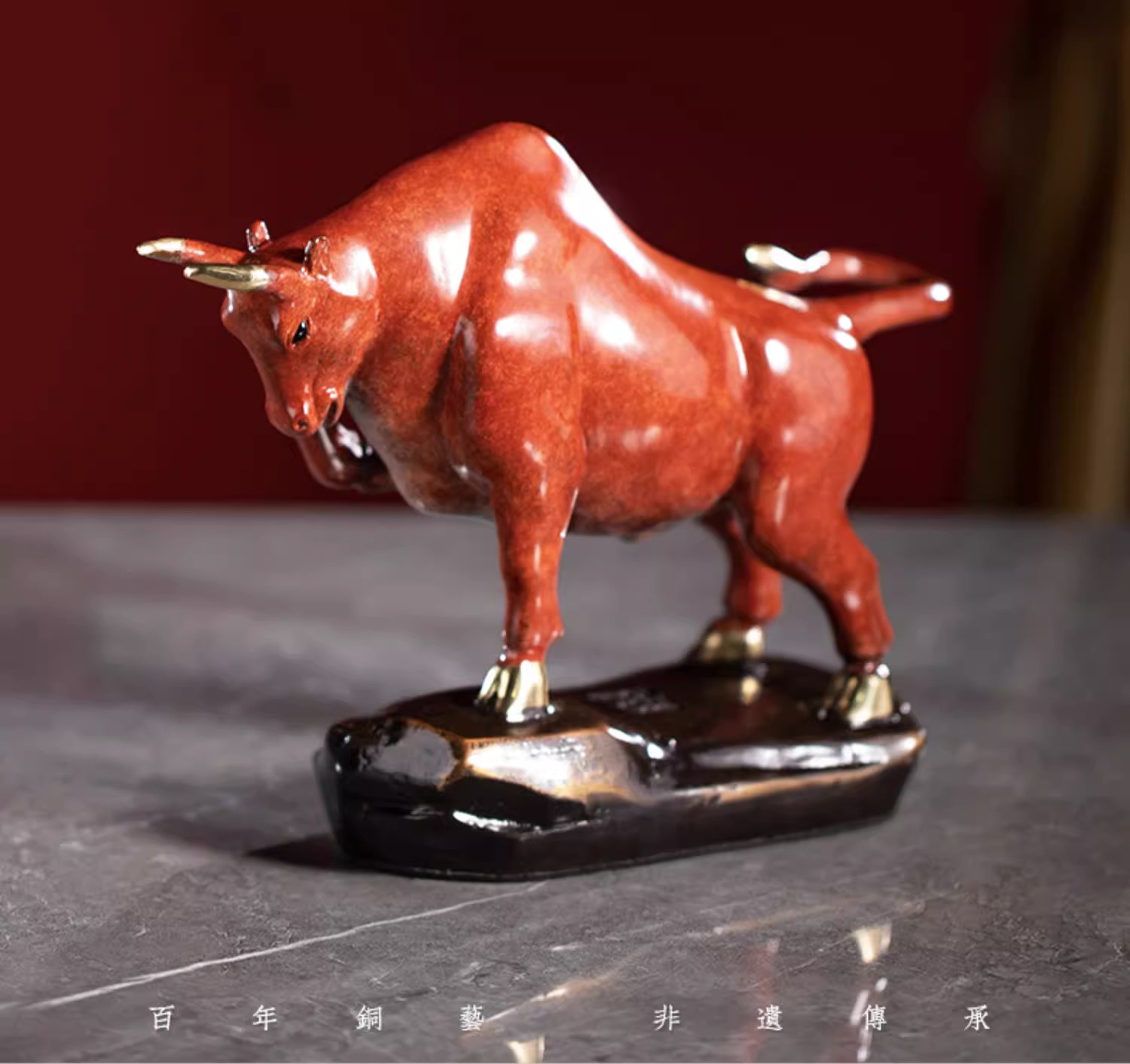朱炳仁铜 十二生肖金牛贺岁彩色铜雕办公桌摆件 工艺品办公桌摆件