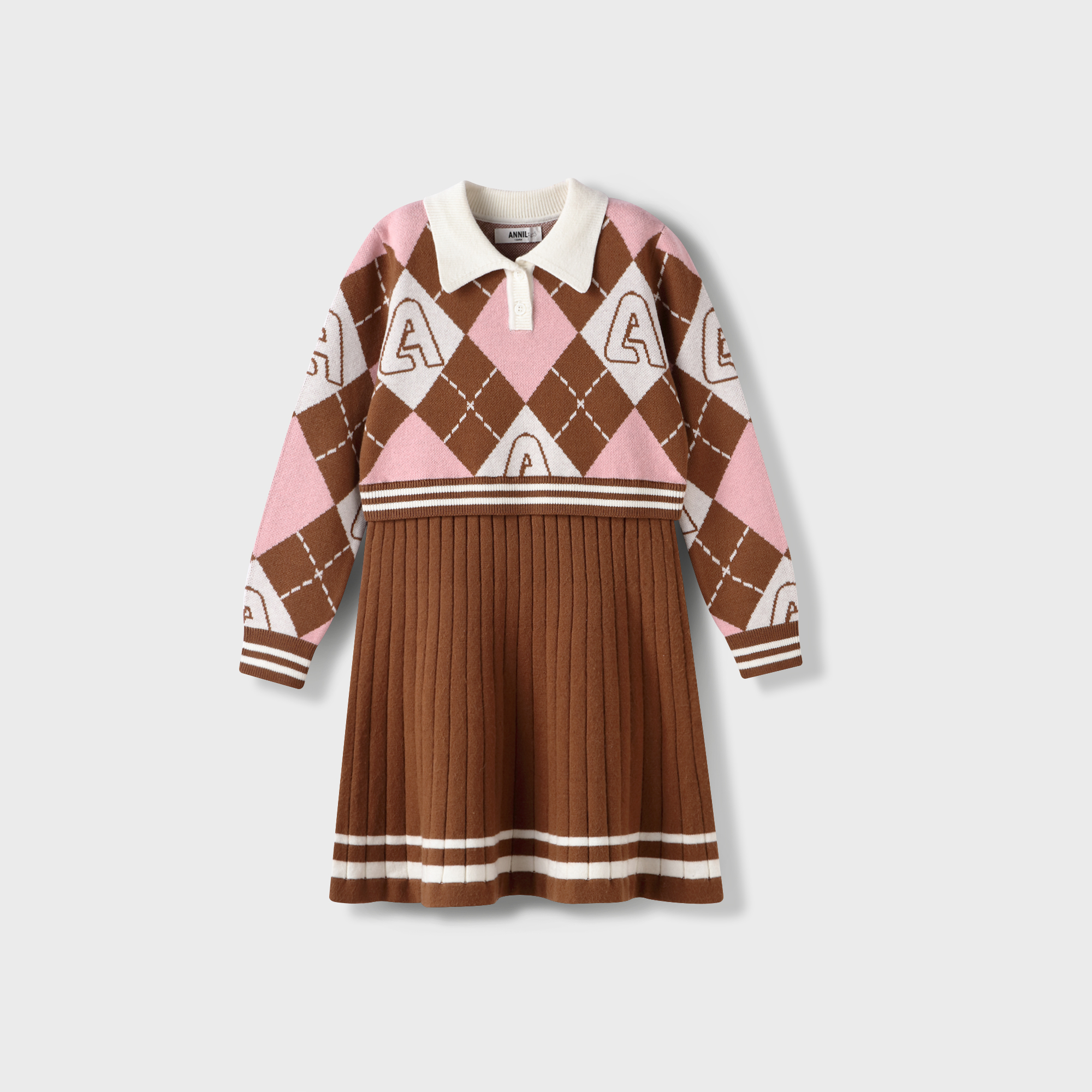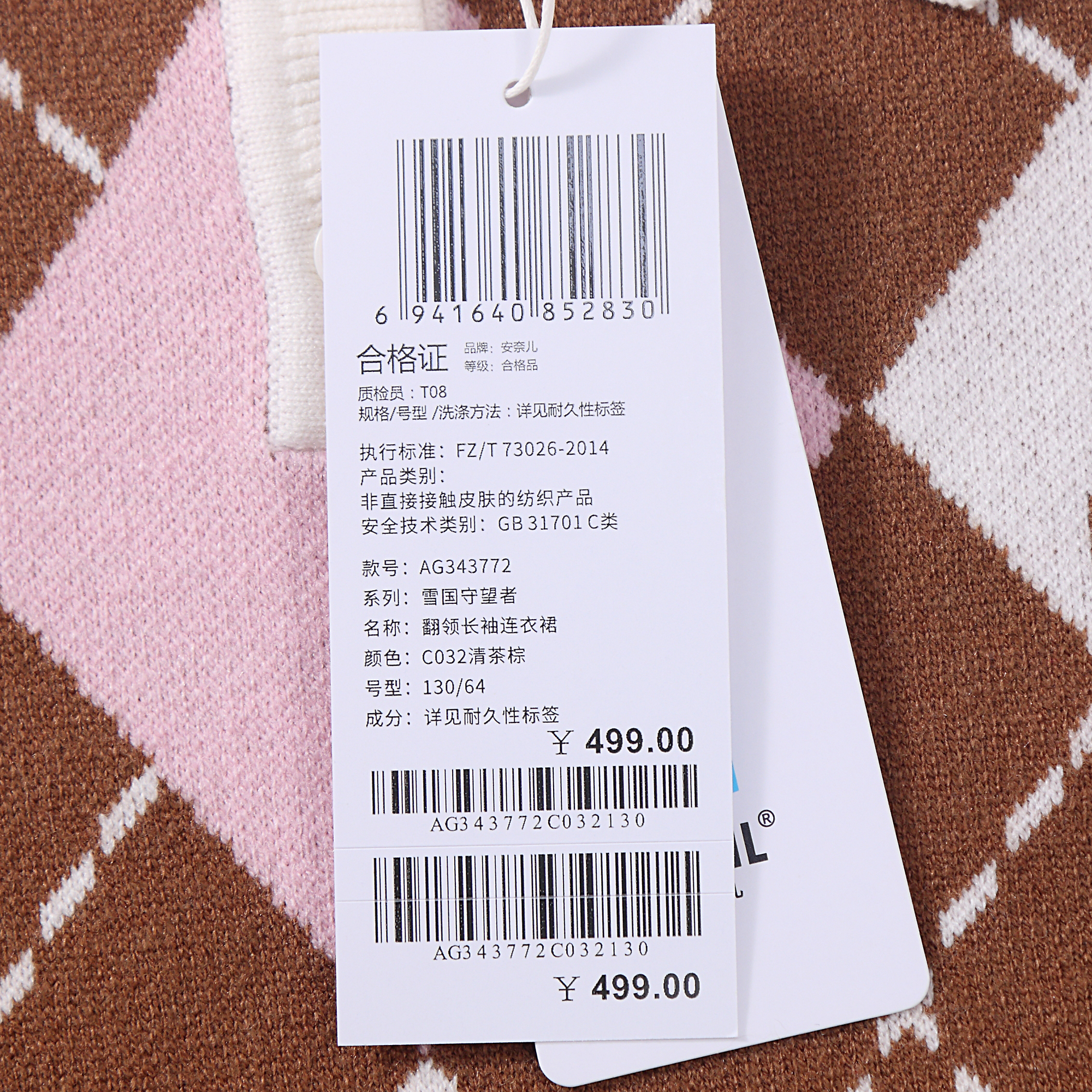 【实体店同款】女童翻领长袖连衣裙2023年冬季新款安奈儿童装AG343772
