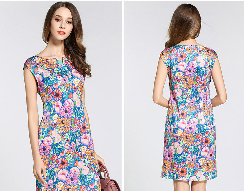 乔万尼桑蚕丝夏季修身显瘦简约真丝短袖连衣裙女EB2E891