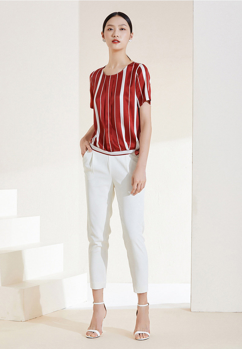 乔万尼休闲职场条纹显白真丝衬衫EI2C786