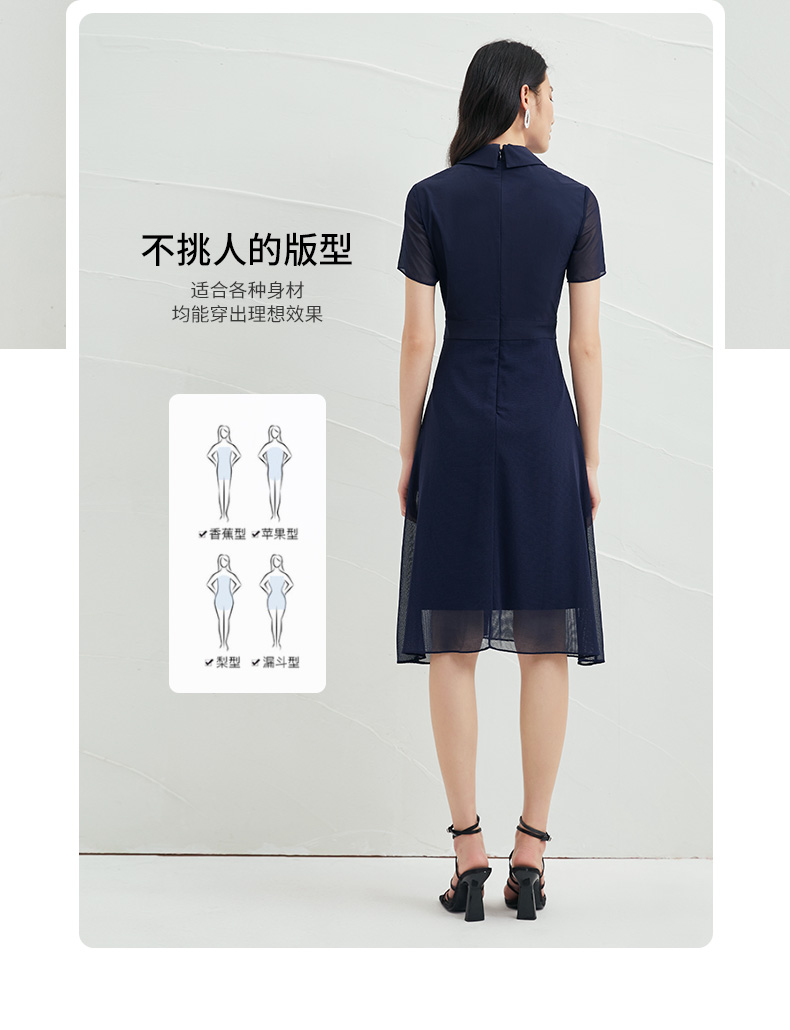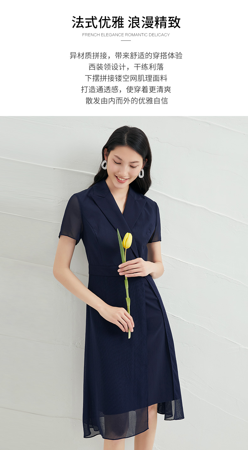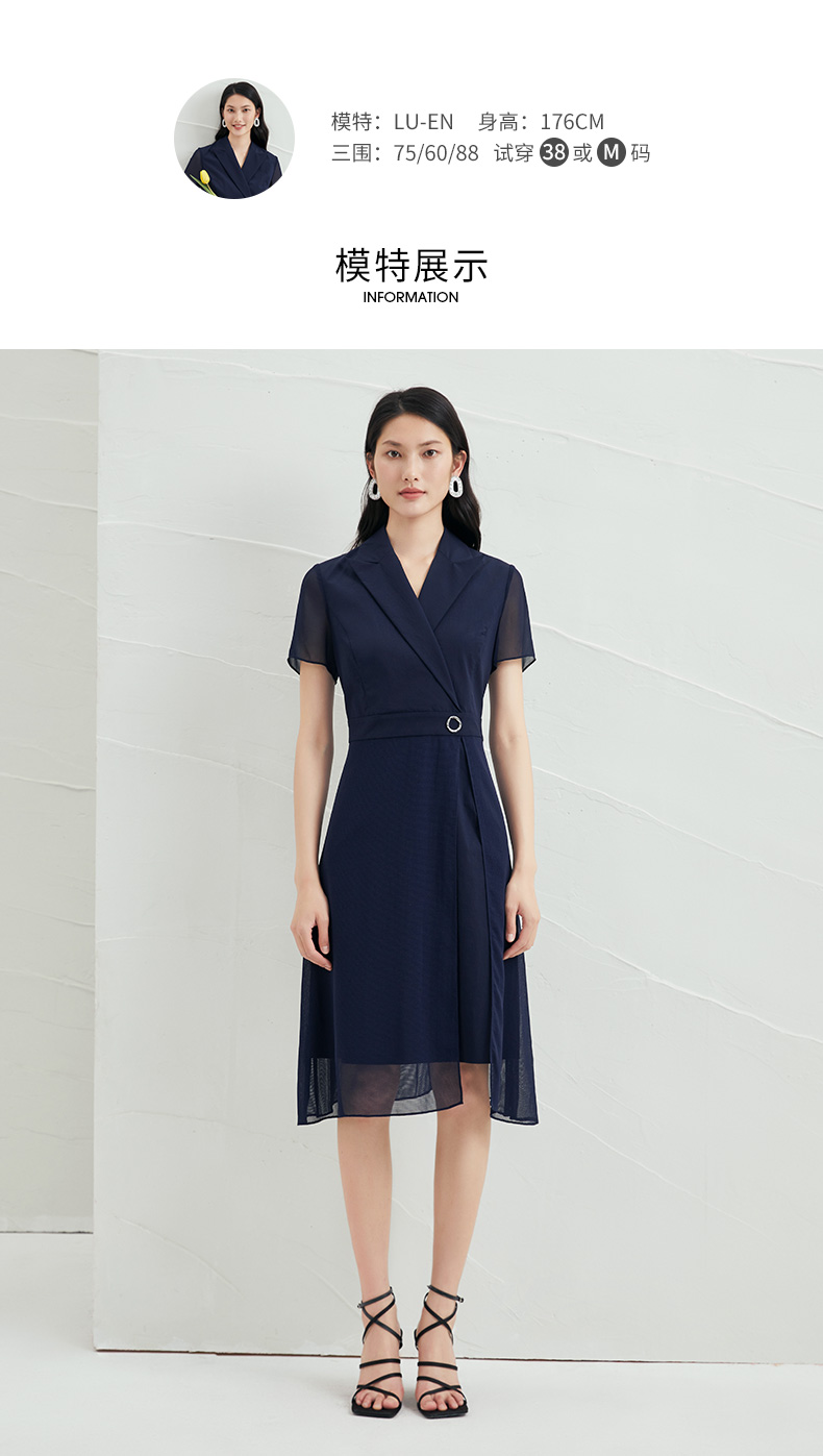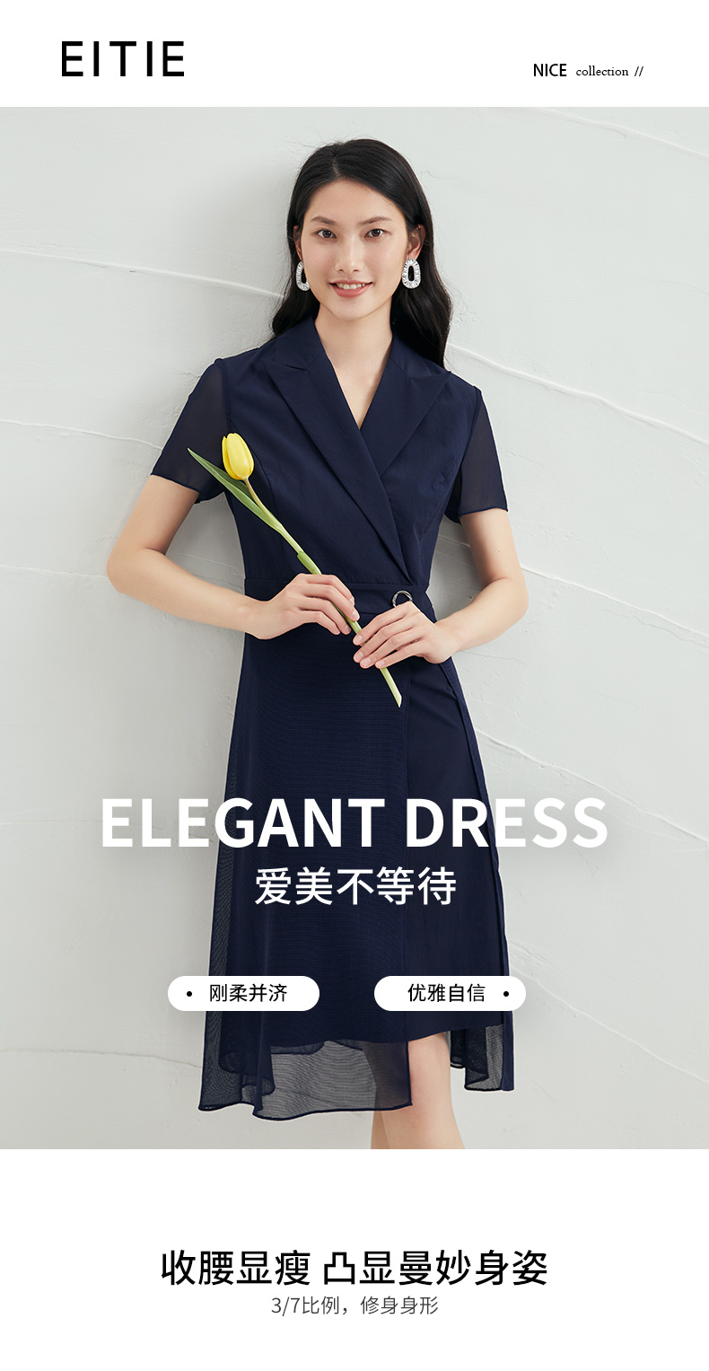 EITIE爱特爱女装夏季新款雪纺拼接V字领连衣裙女6607362