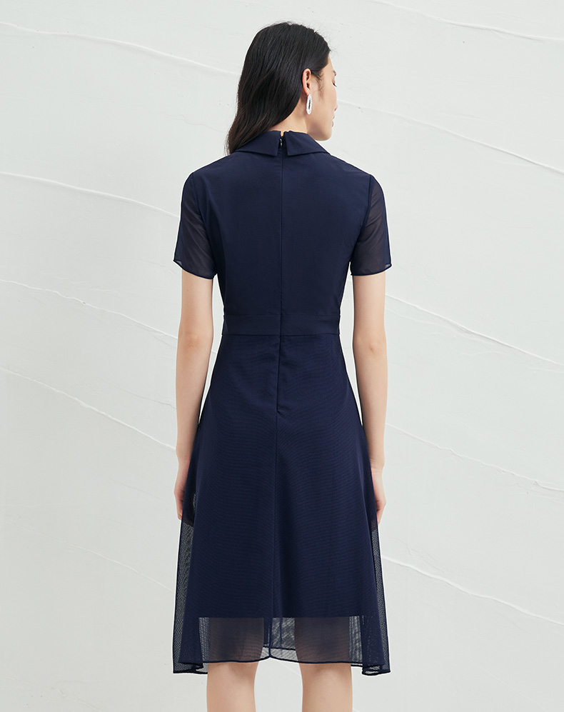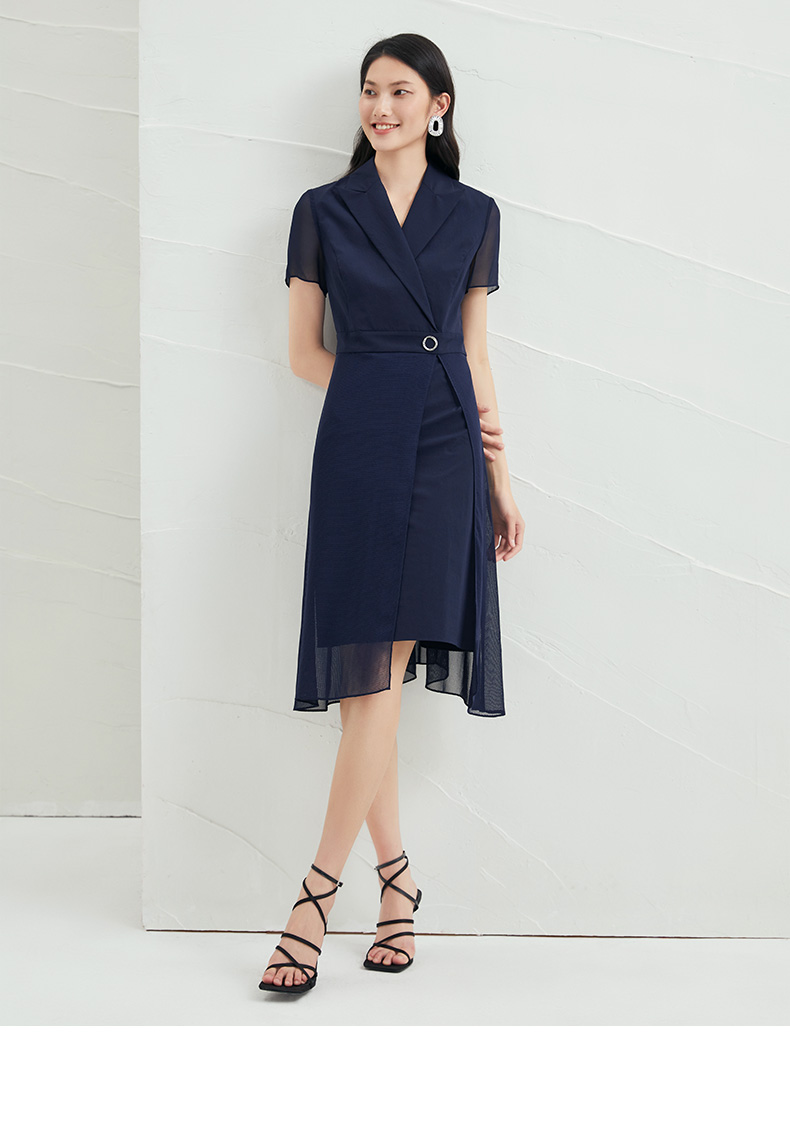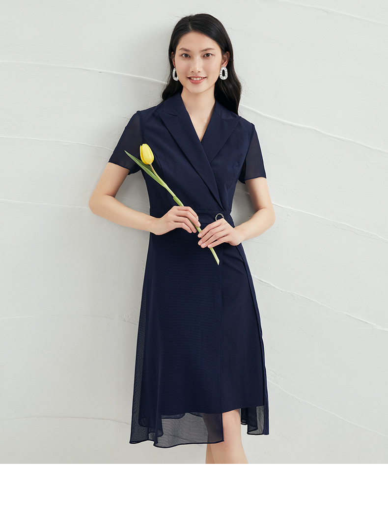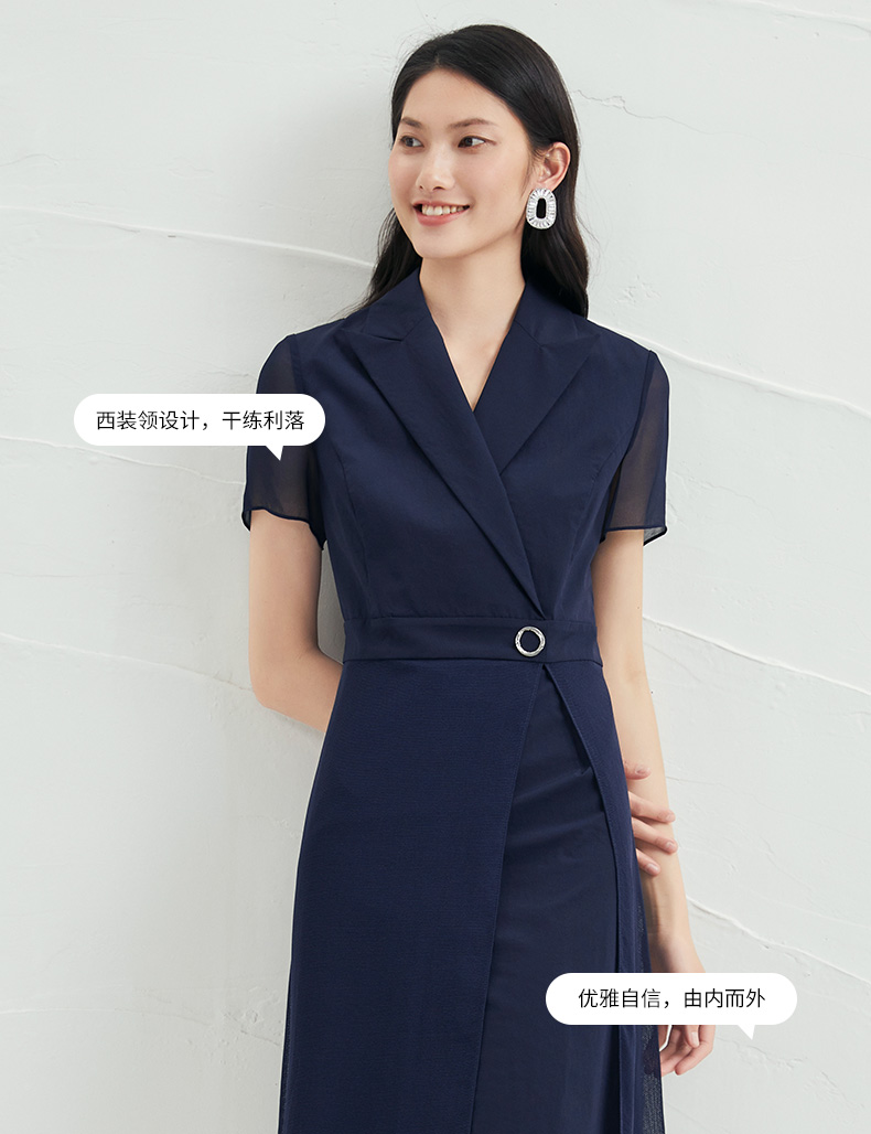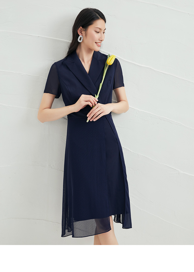 EITIE爱特爱女装夏季新款雪纺拼接V字领连衣裙女6607362