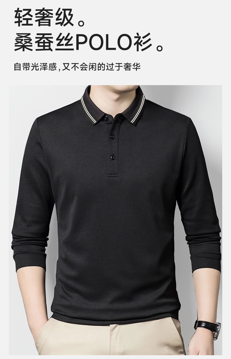 【桑蚕丝】【新款DK】大依优型大码长袖Polo衫桑蚕丝珠地翻领加肥加大肥佬休闲商务宽松透气上衣秋装
