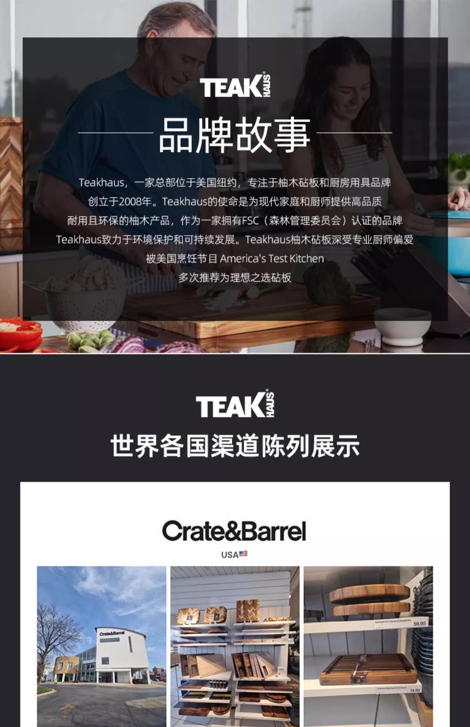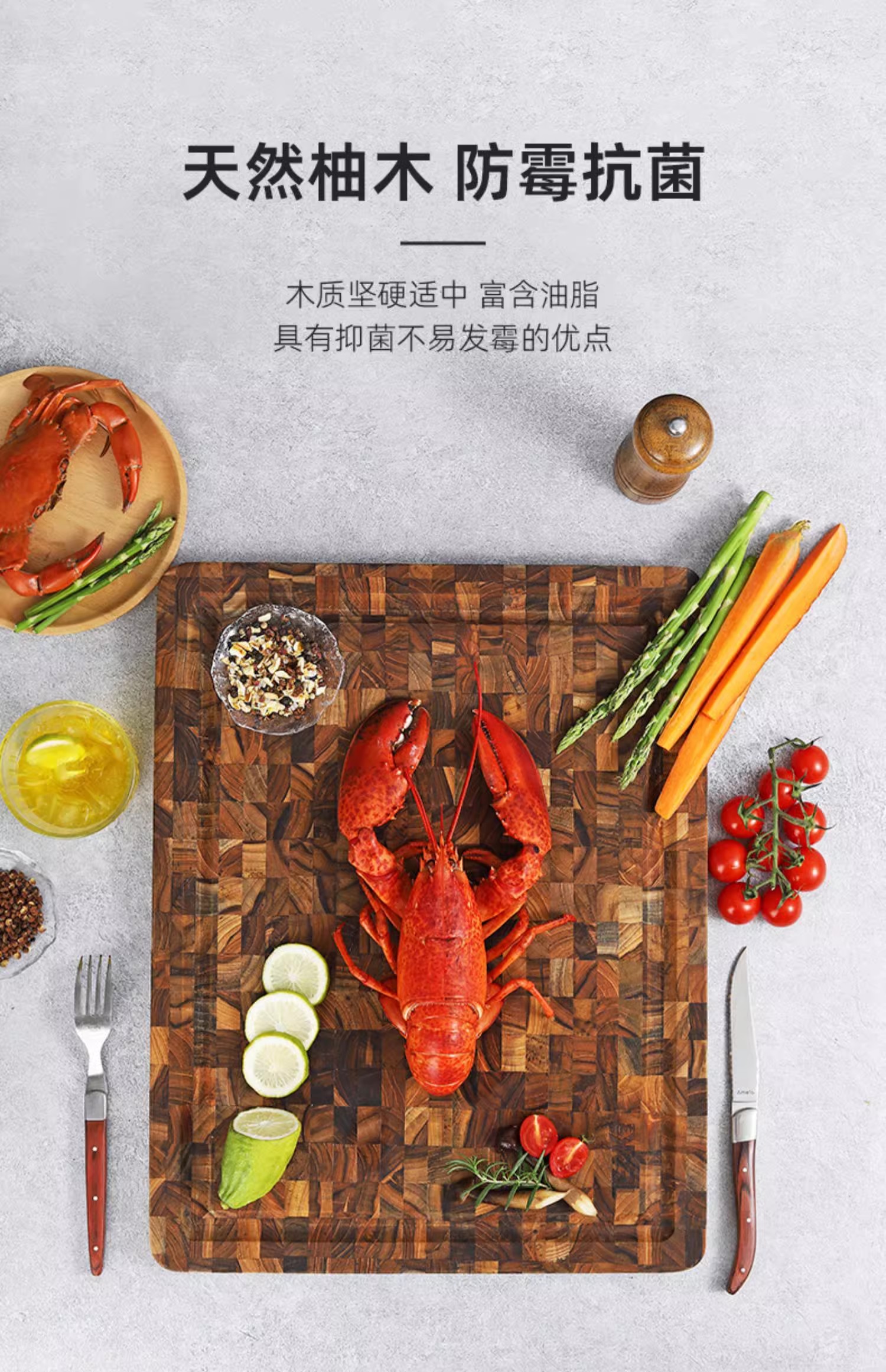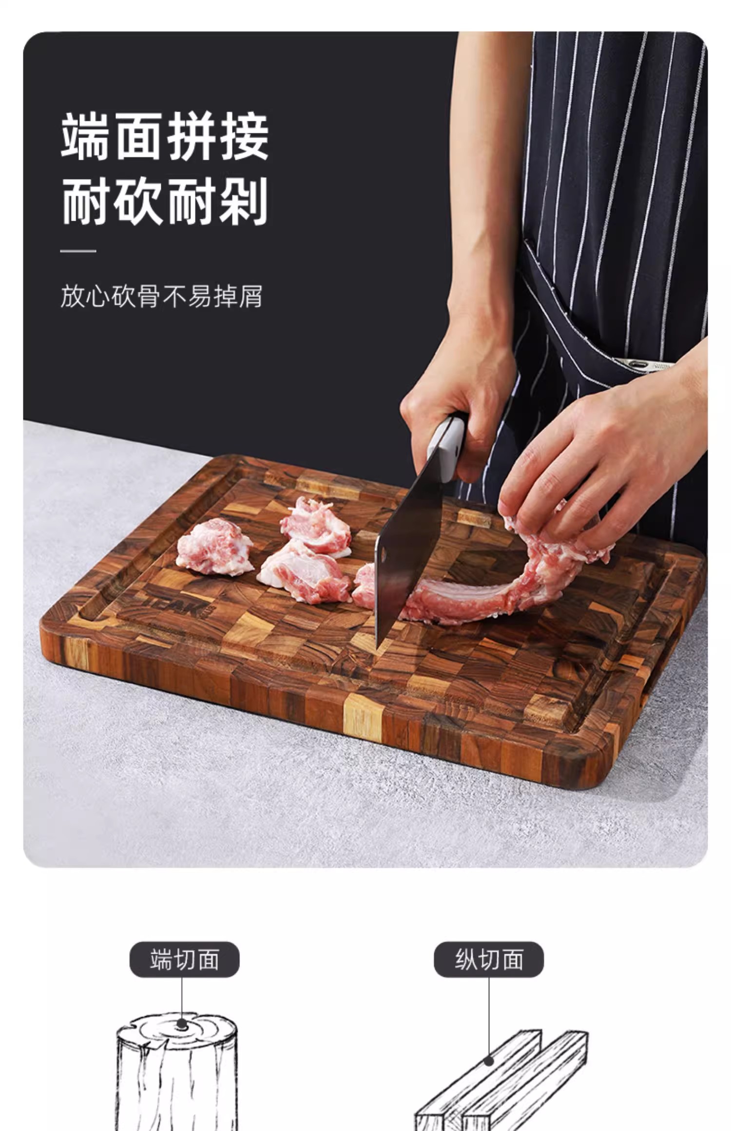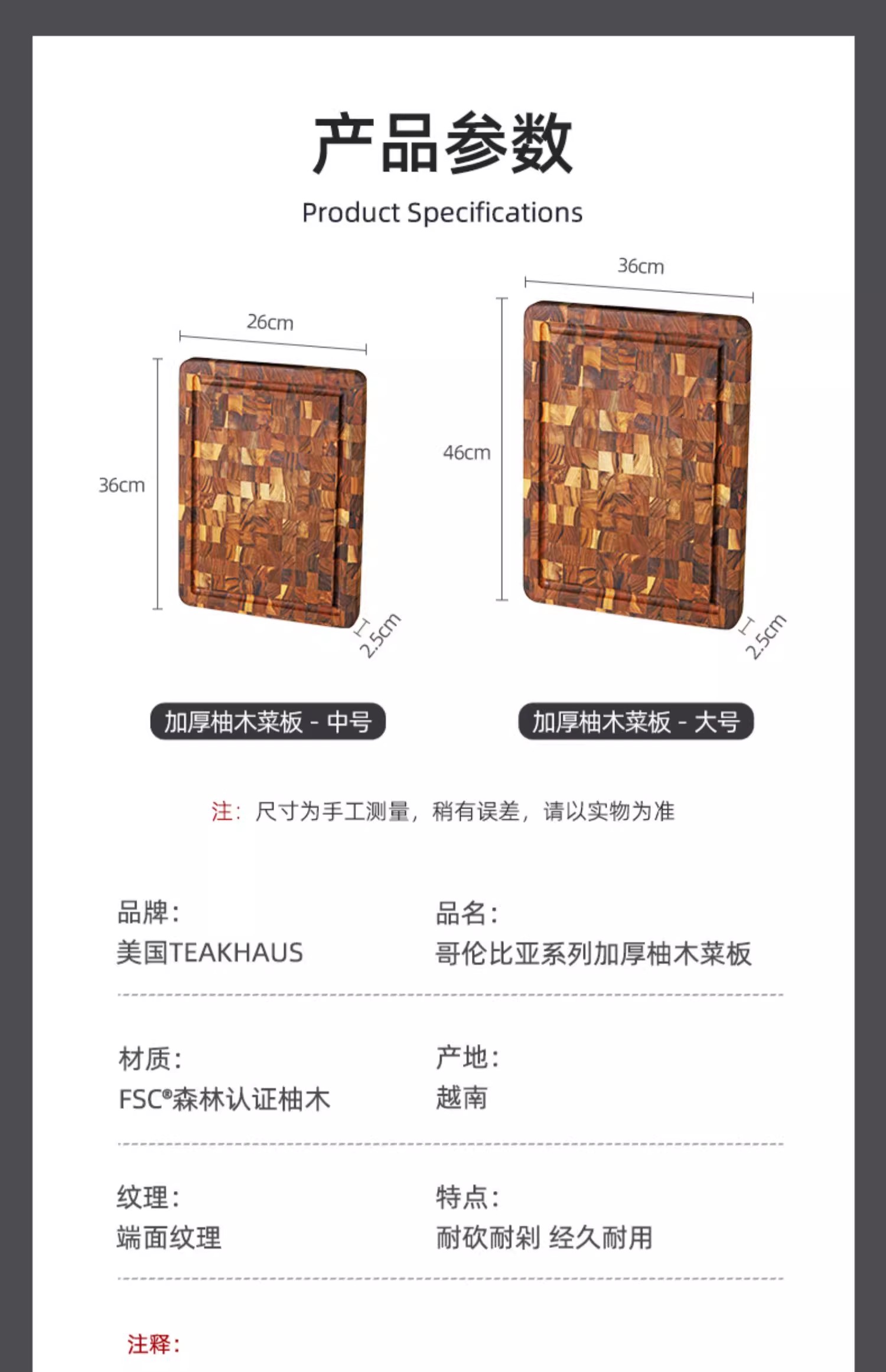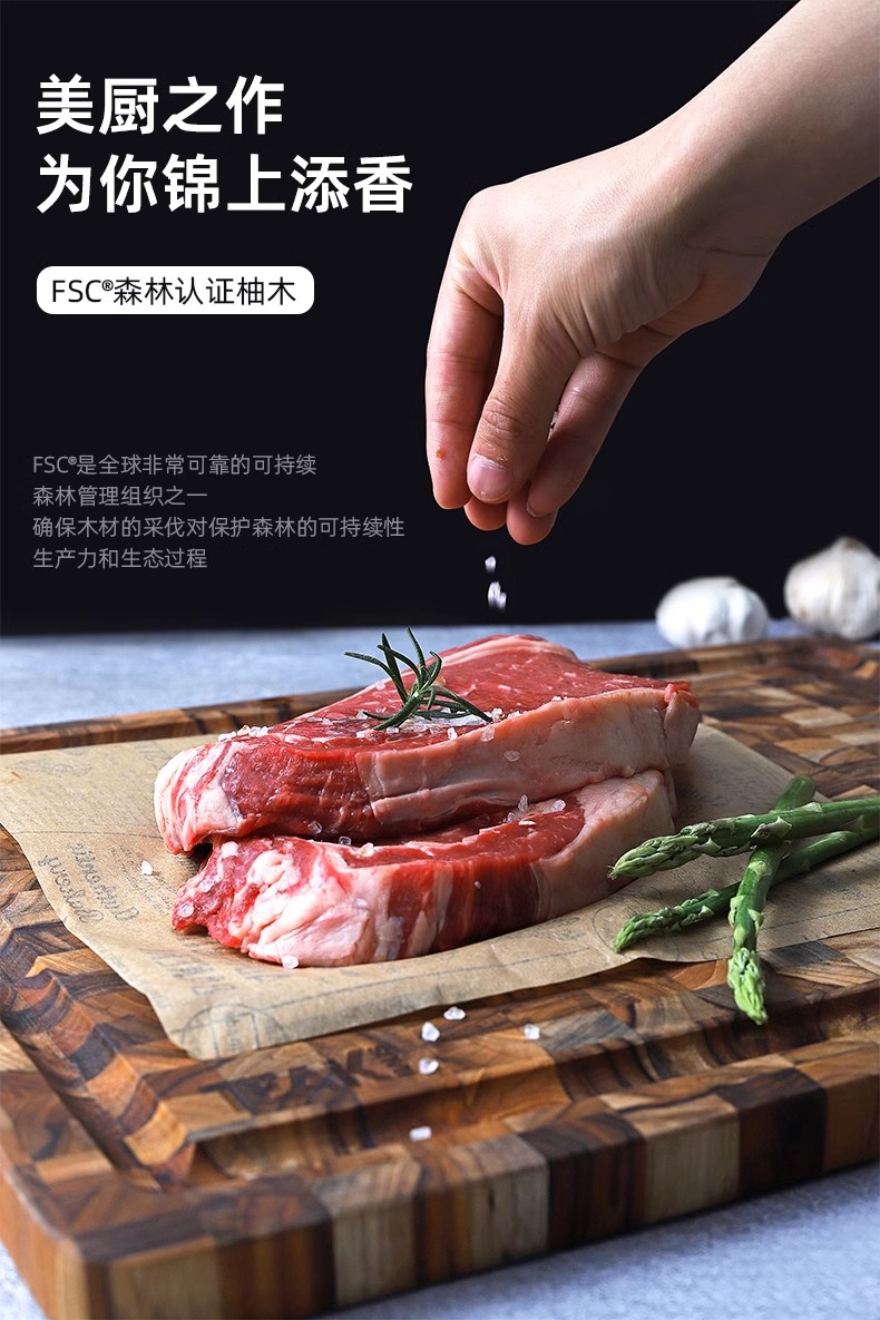 美国TEAKHAUS哥伦比亚系列长方形加厚柚木菜板带导流槽-大号