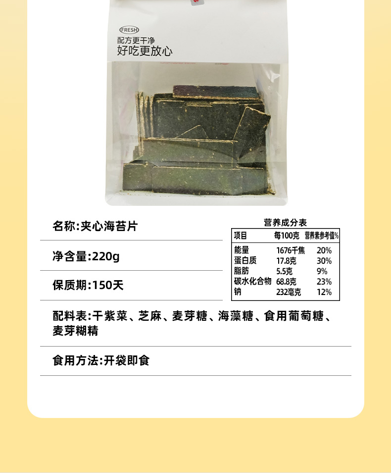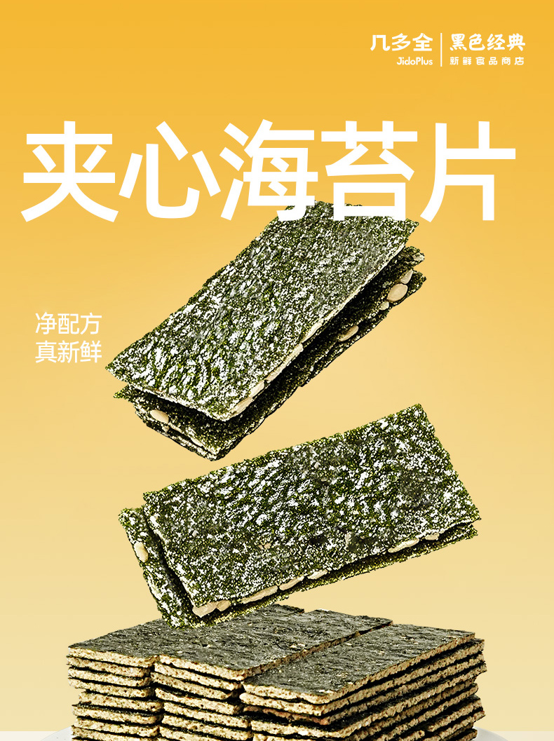 【鲜食】黑色经典x几多全夹心海苔片,220g/袋 保质期150天