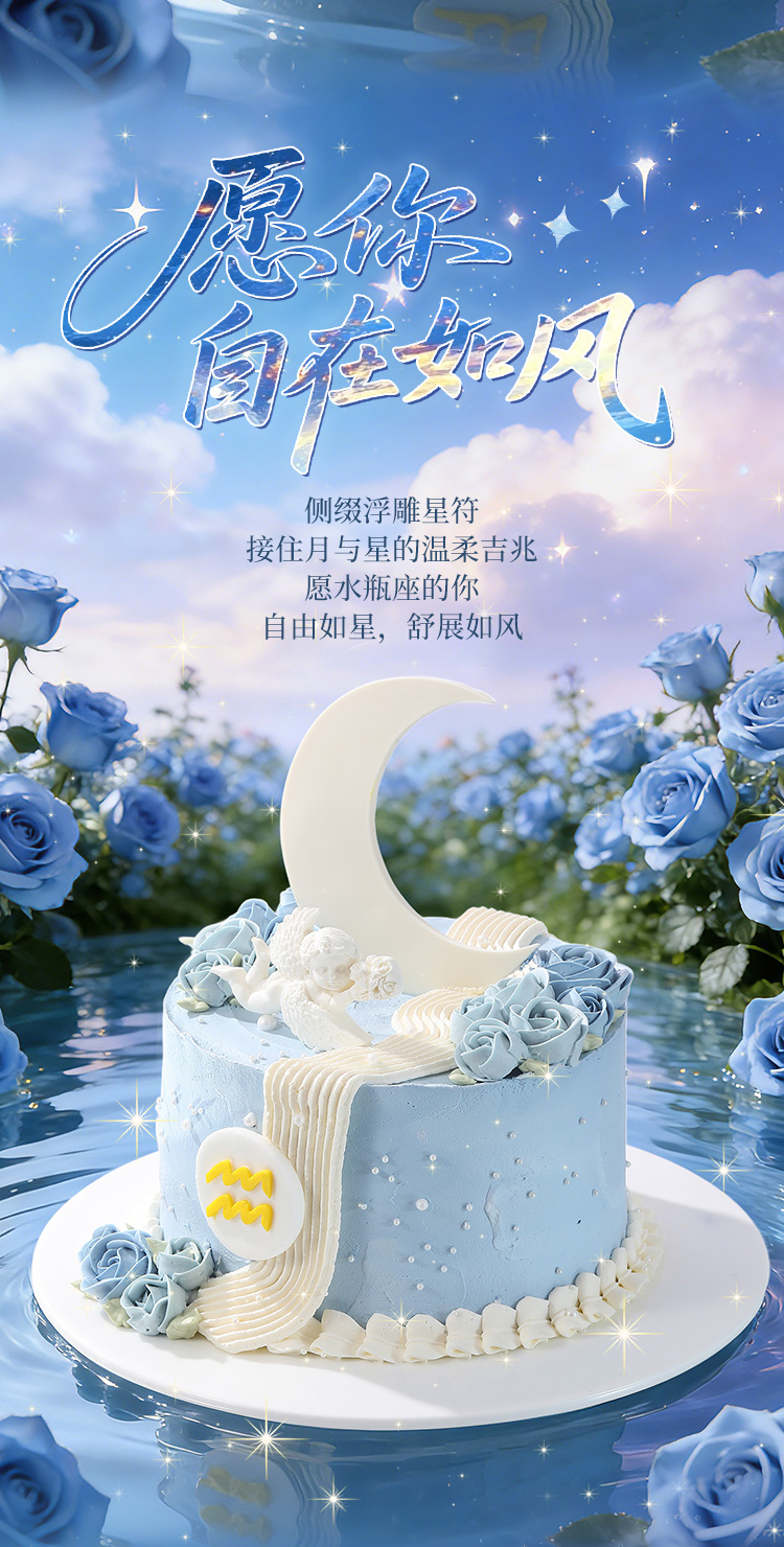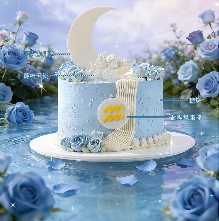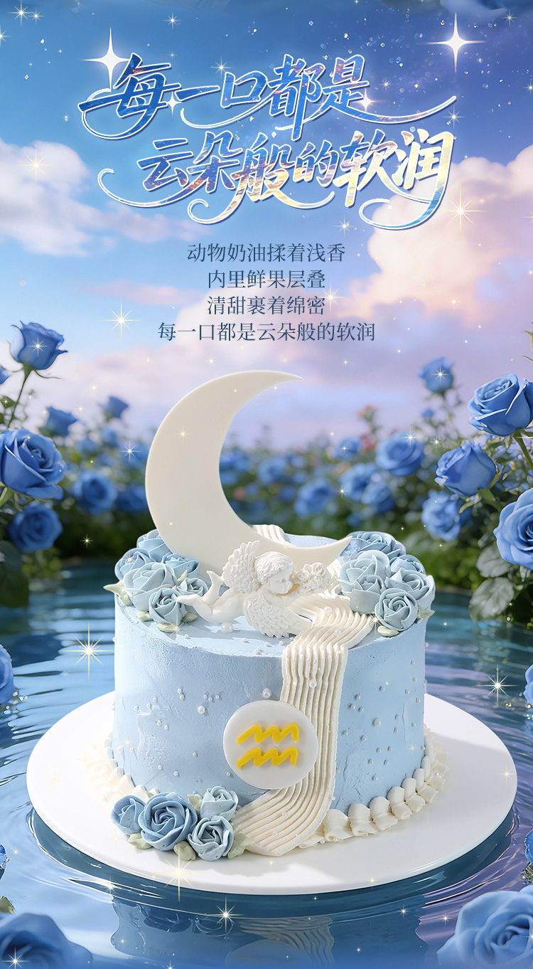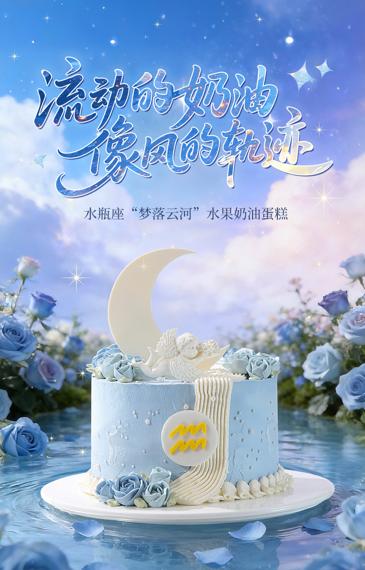 水瓶座“梦落云河” 水果奶油蛋糕