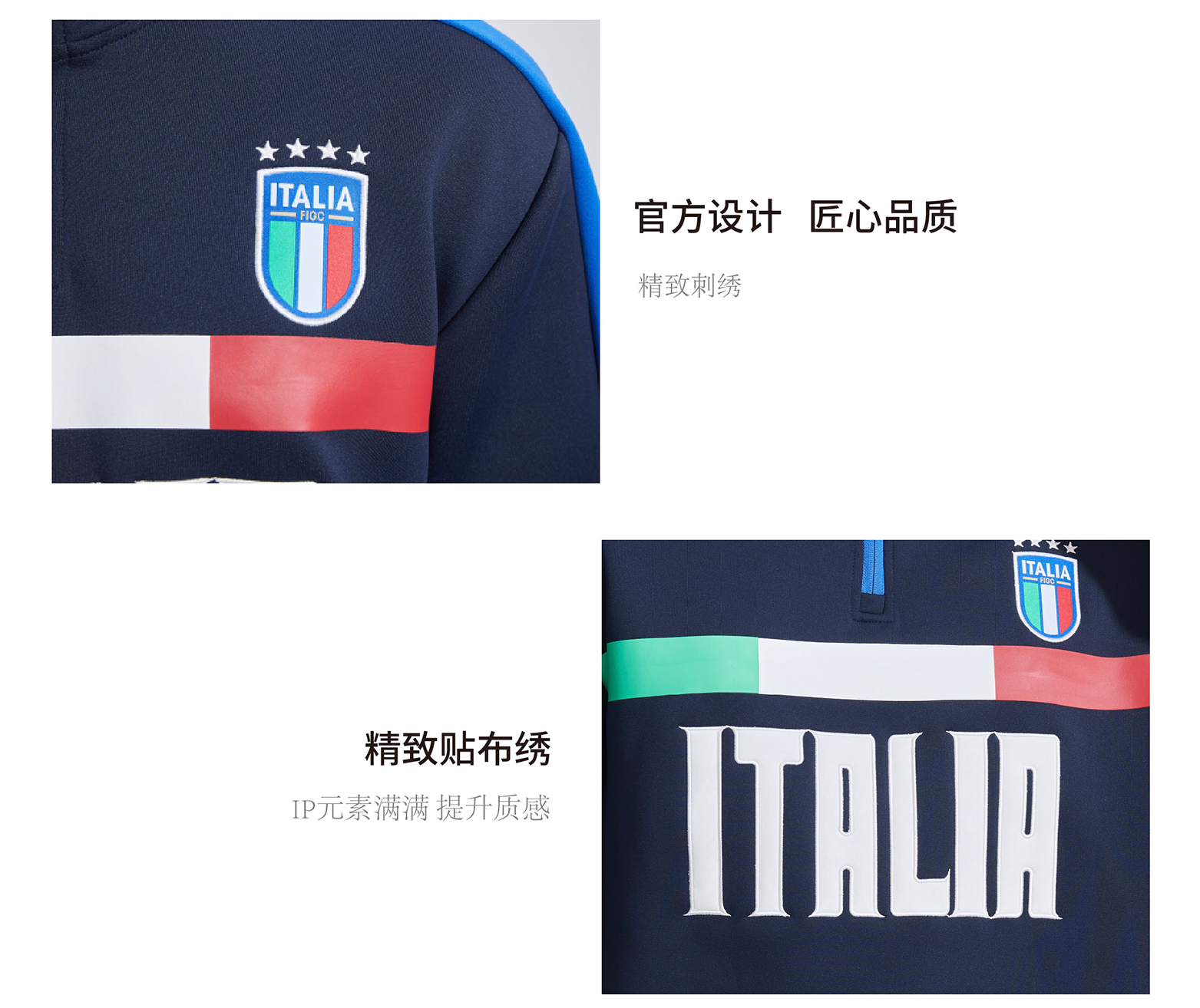 意大利国家队官方商品丨复古立领半拉链刺绣卫衣运动休闲足球迷