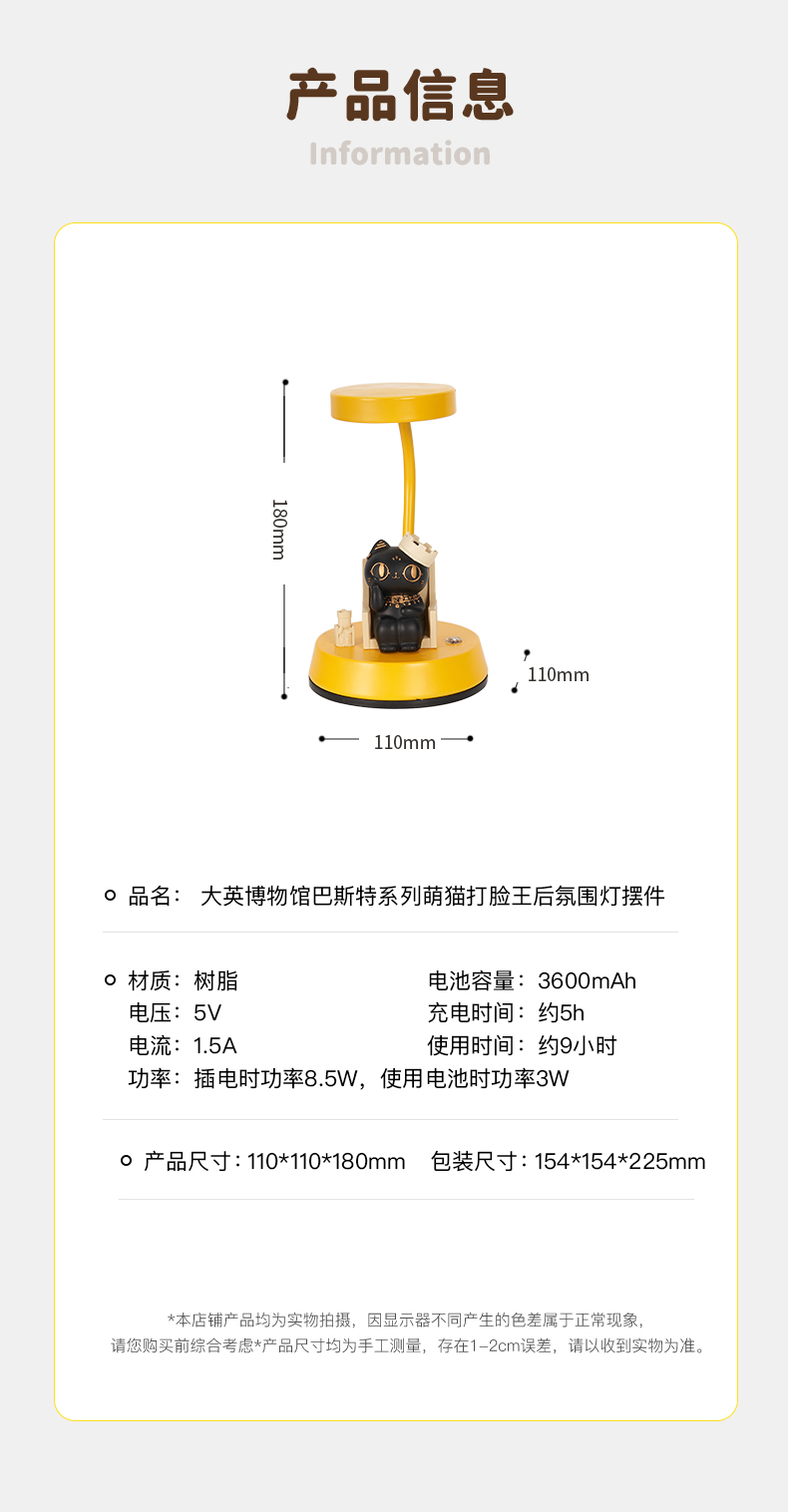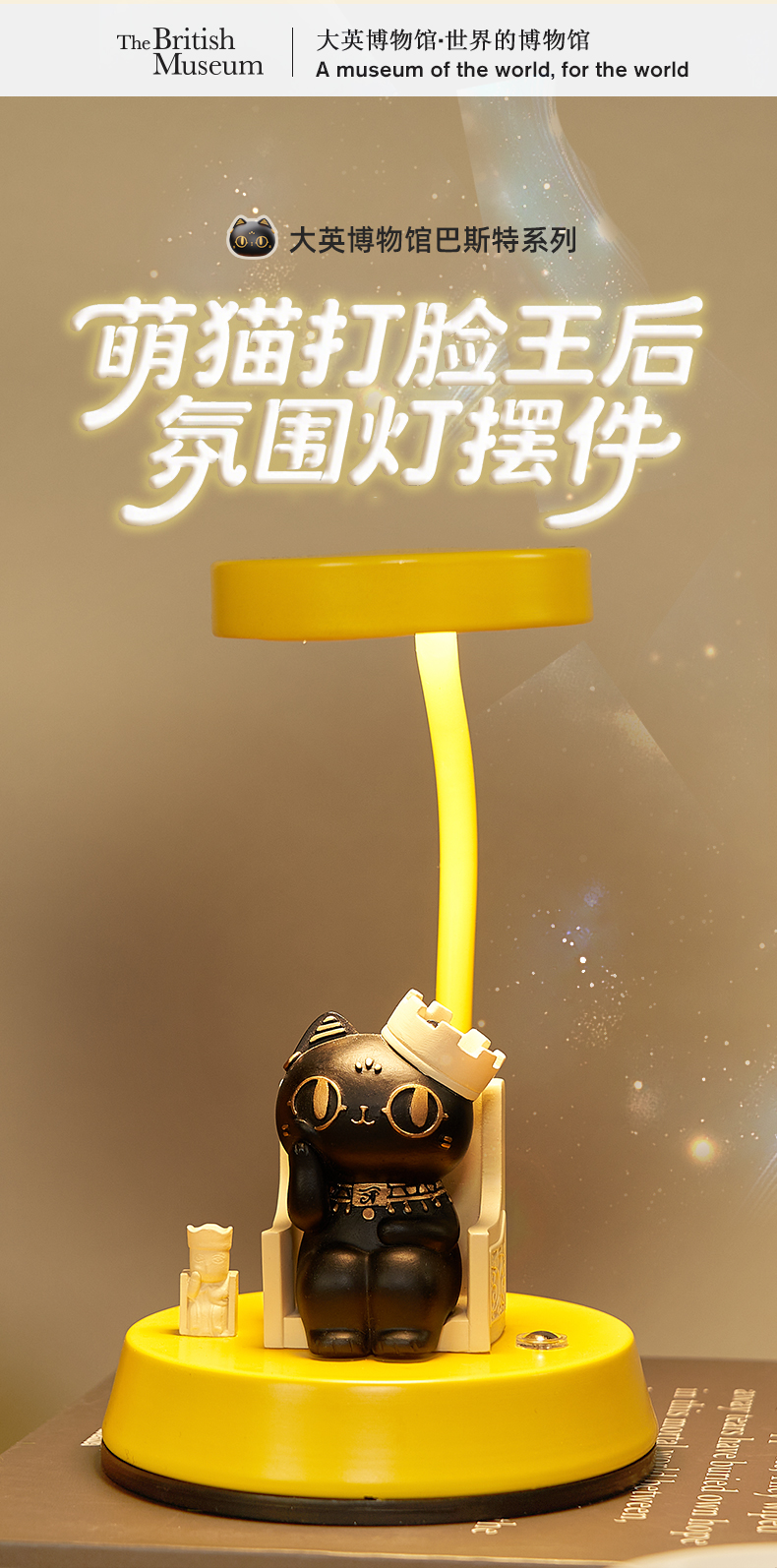 大英博物馆 盖亚·巴斯特系列 萌猫打脸王后 氛围灯摆件