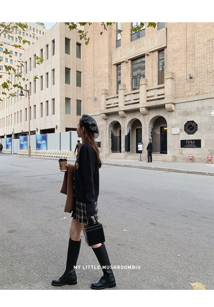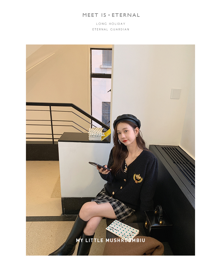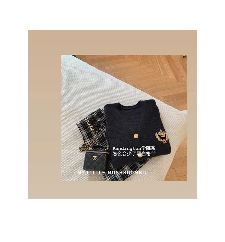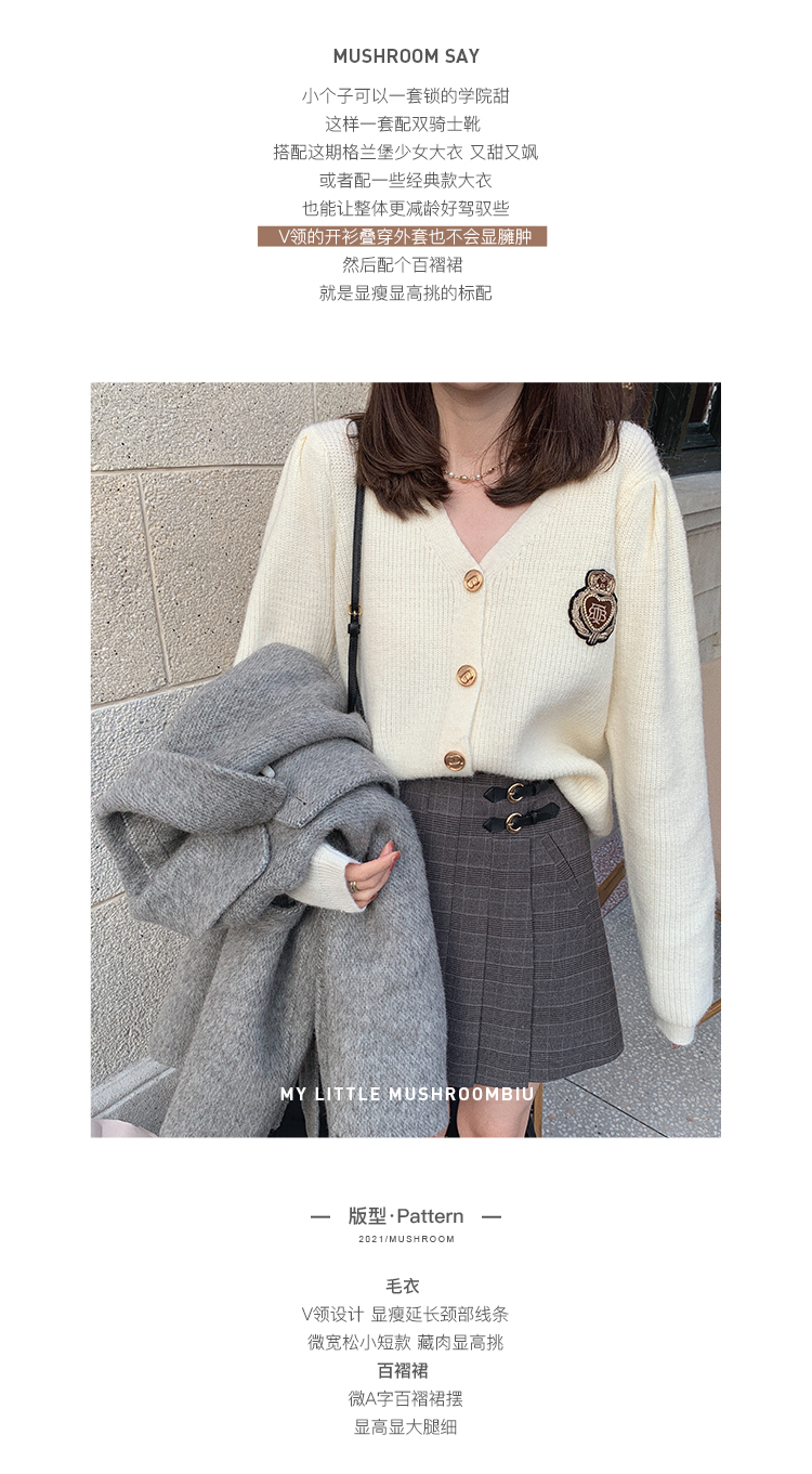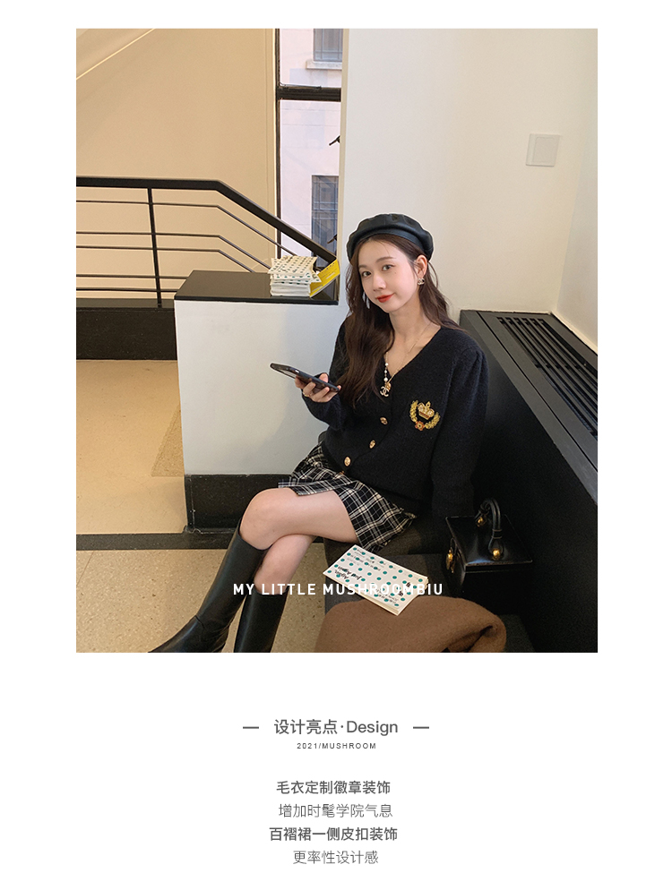 金蘑菇菇【paddington套装】徽章毛衣+百褶裙 学院甜小个子本命