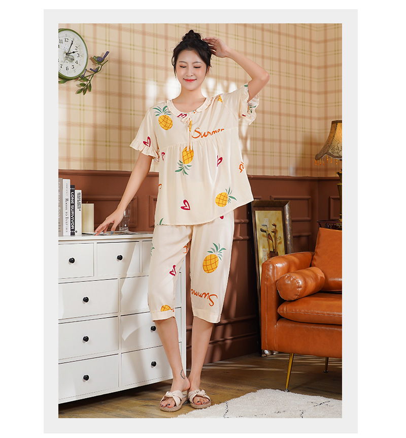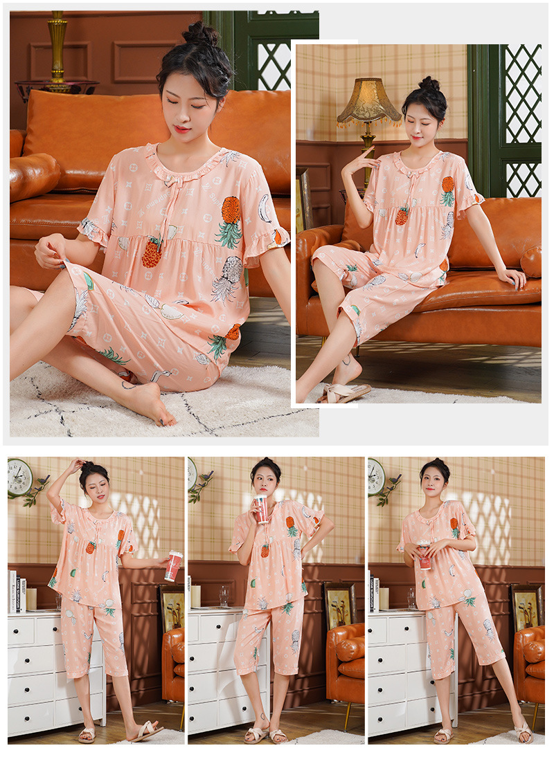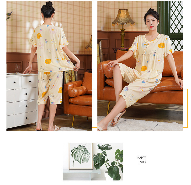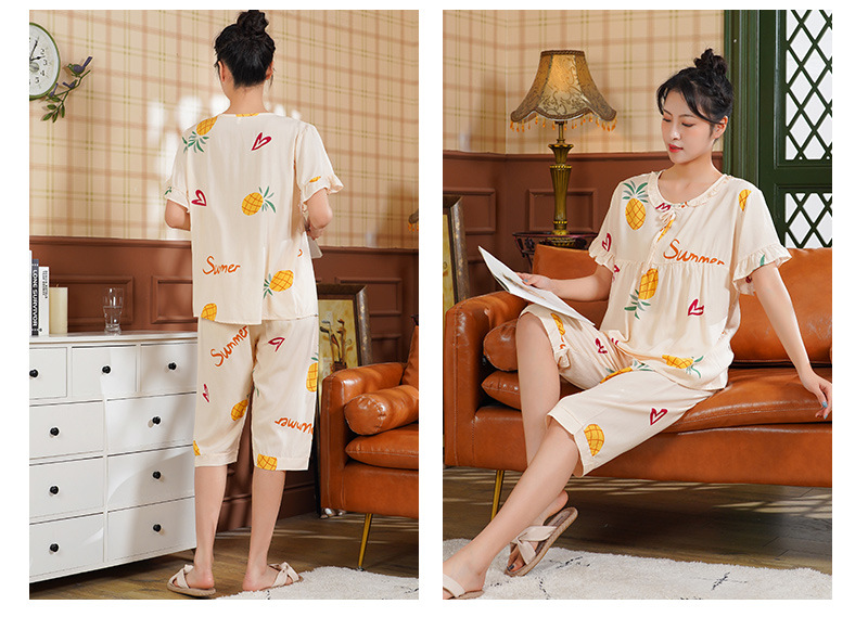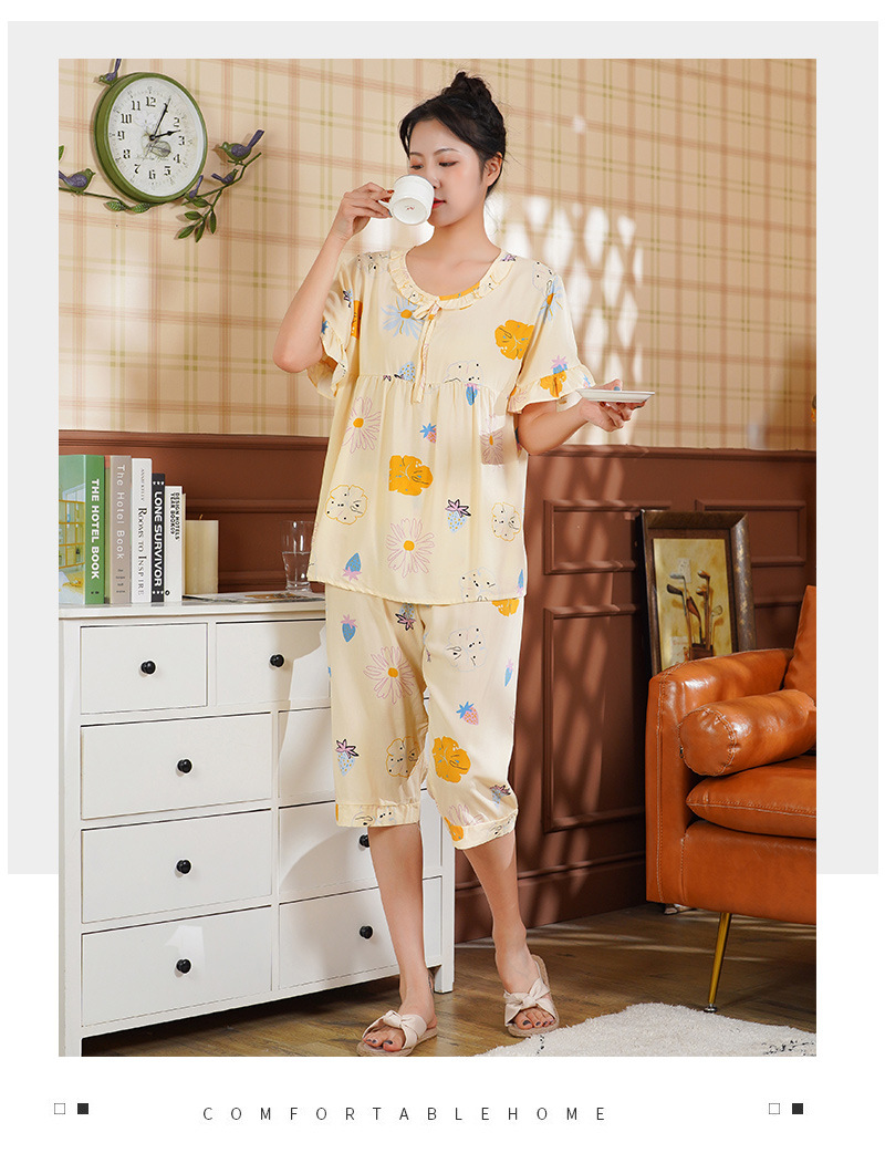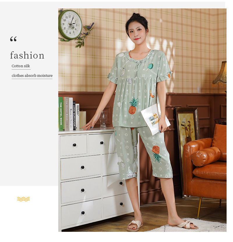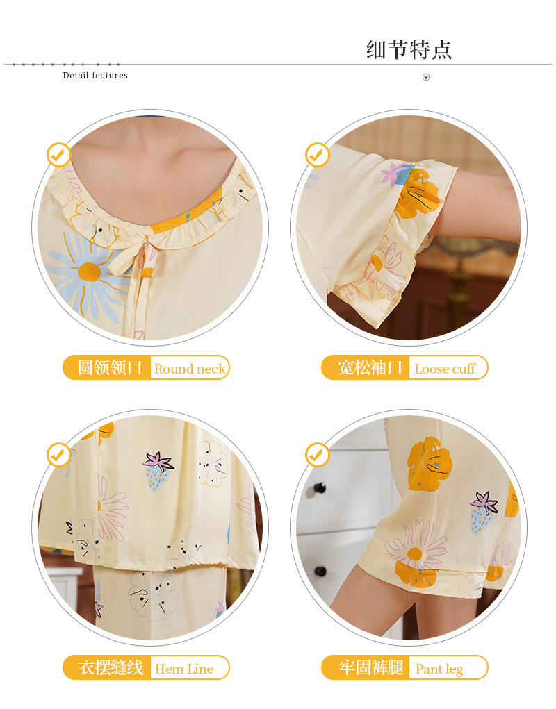 日系短袖棉绸睡衣时尚家居服套装