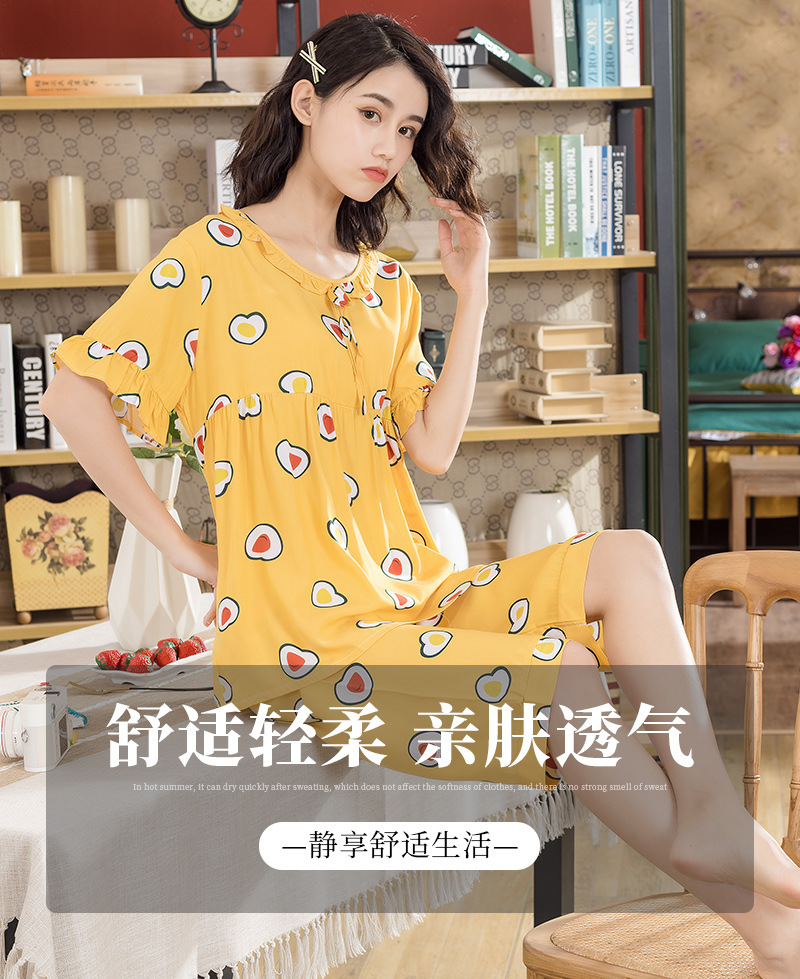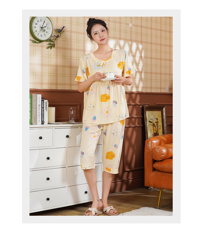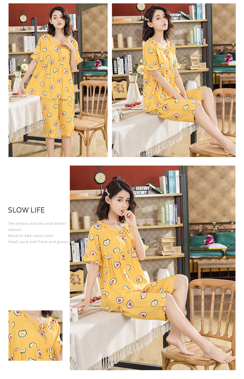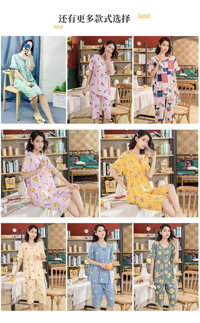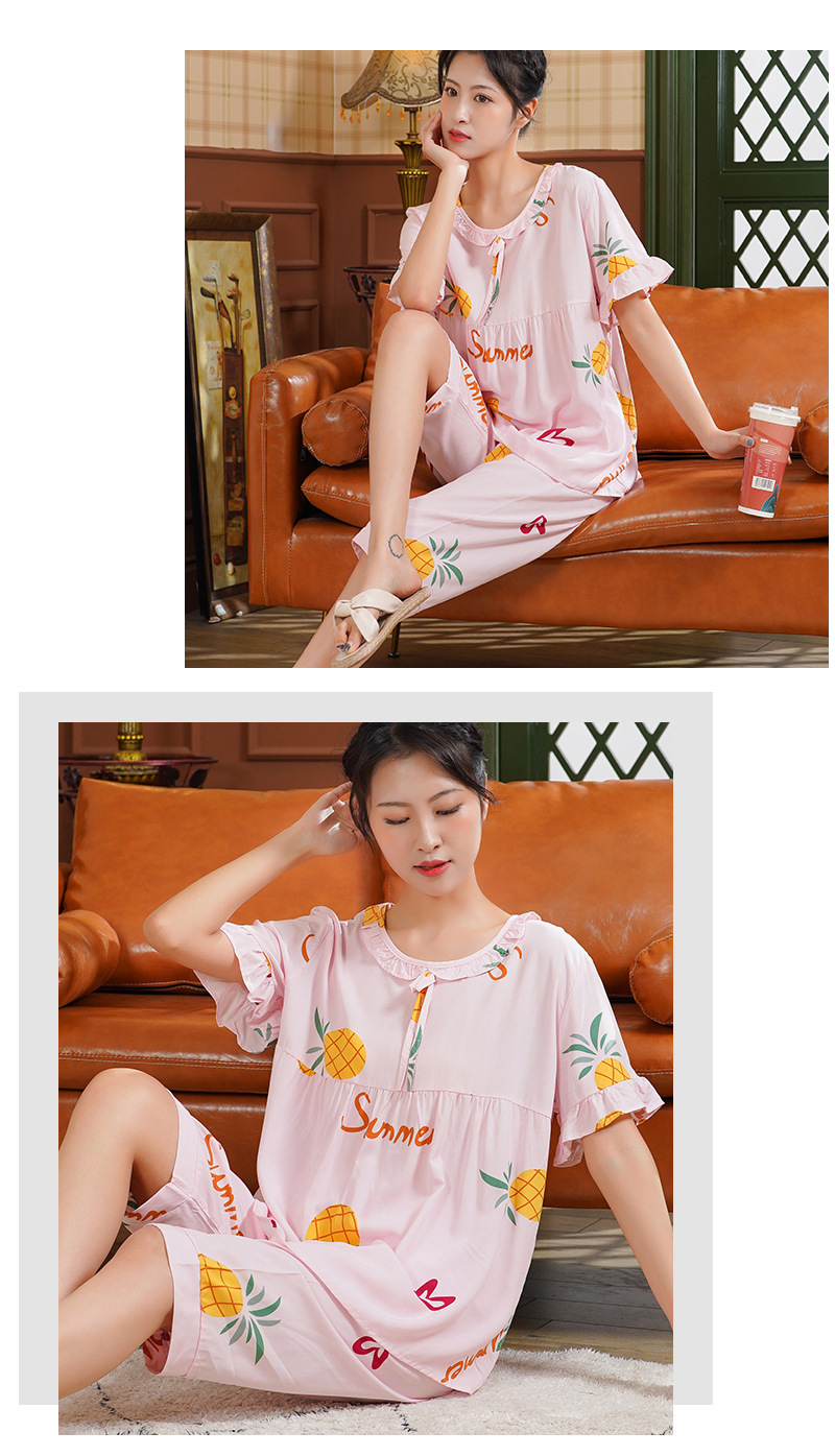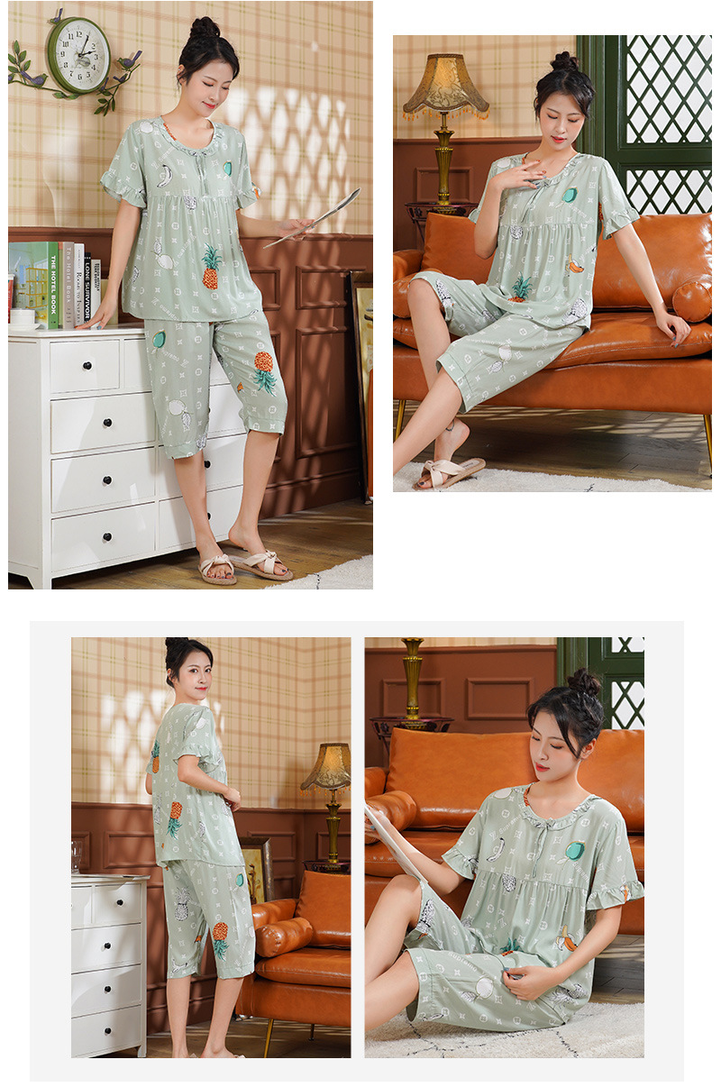 日系短袖棉绸睡衣时尚家居服套装