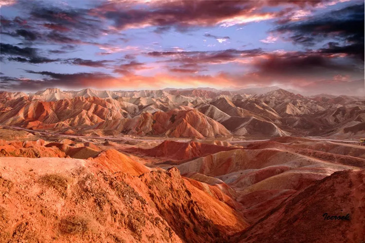 早餐之后出发前往张掖,抵达之后根据光线情况前往拍摄张掖七彩雅丹景区。