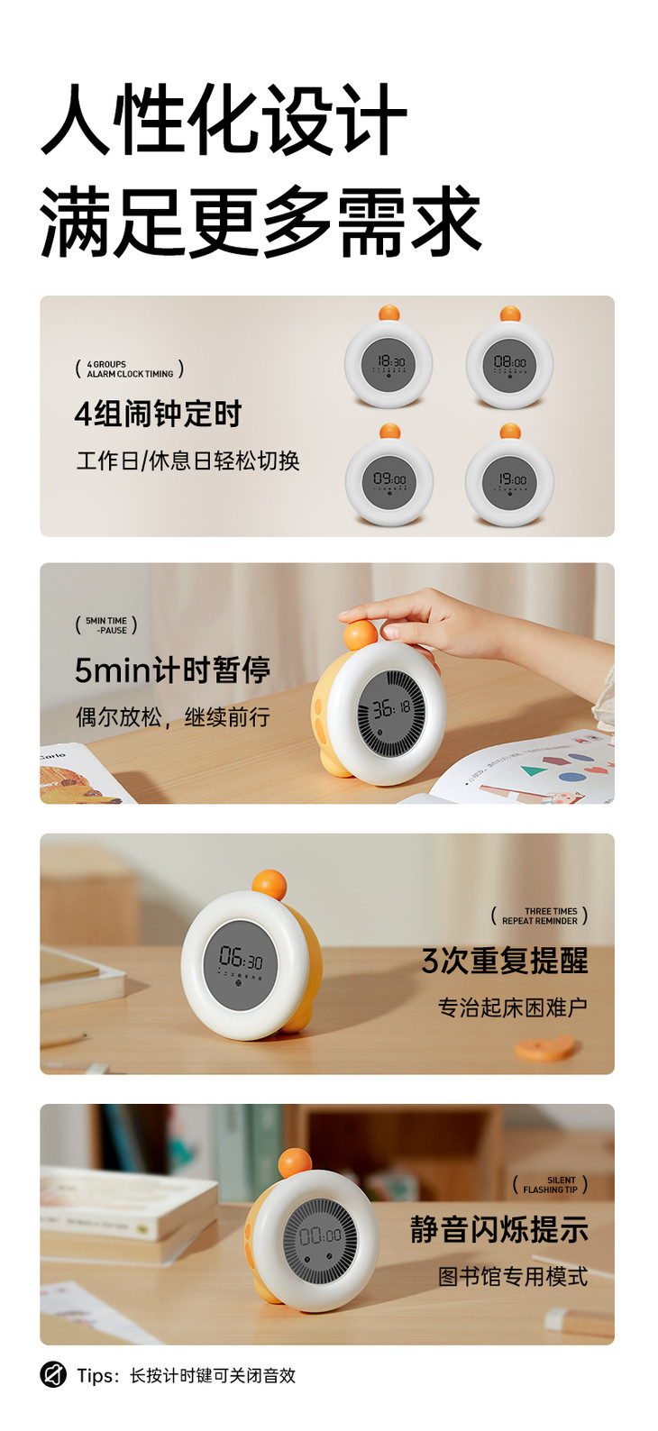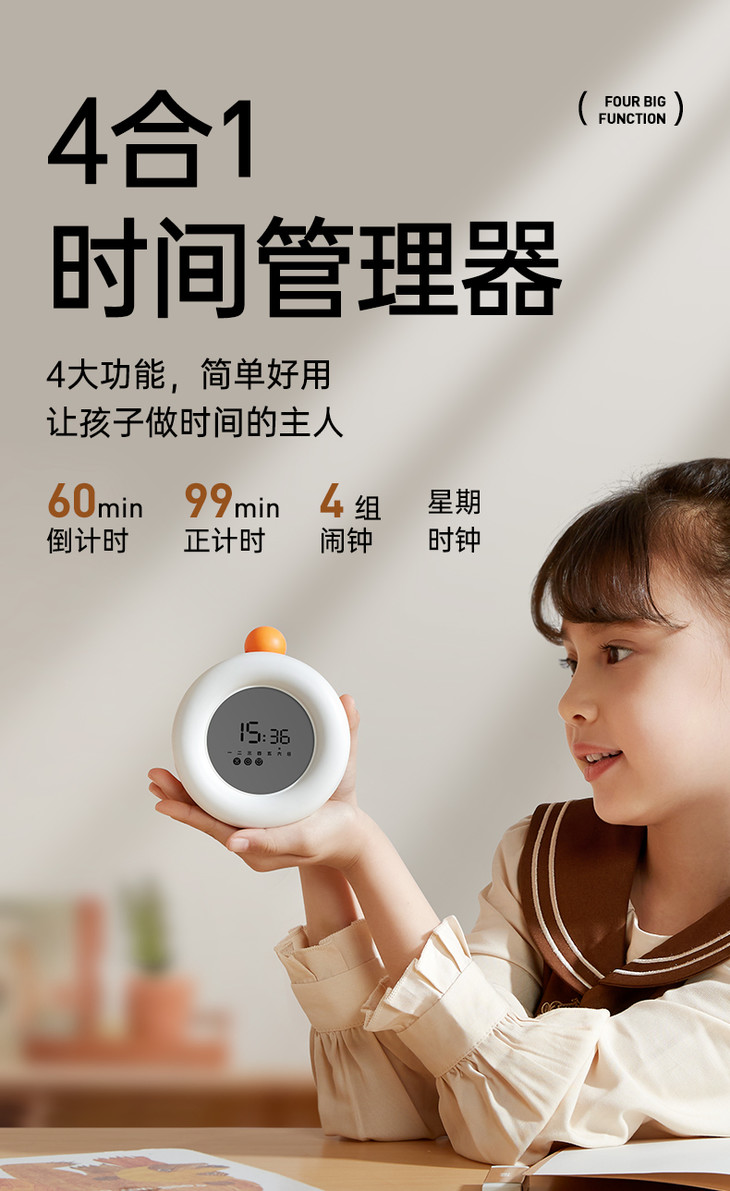 【4合1时间管理器】贝恩施儿童时间管理器自律学习专用可视化倒计时器定时闹钟提醒器