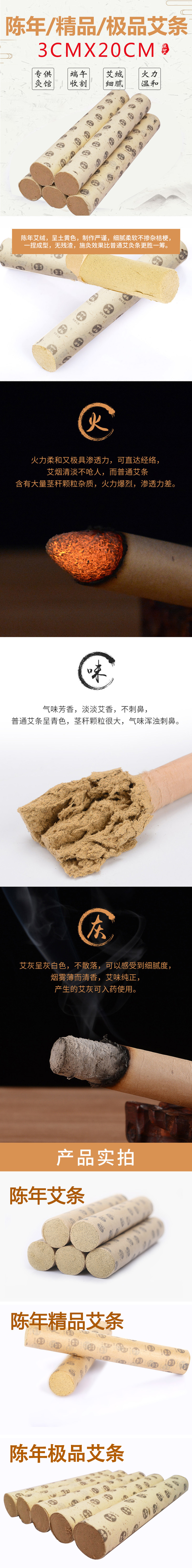 陈年艾绒纸艾条(3x20cm)【艾绒纸卷制 烟小 燃烧渗透力强】