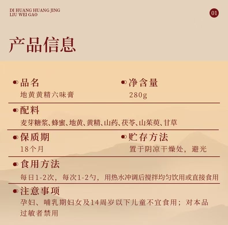 地黄黄精六味膏 黄精地黄六味提取甄选原材古法熬制传统滋补养生