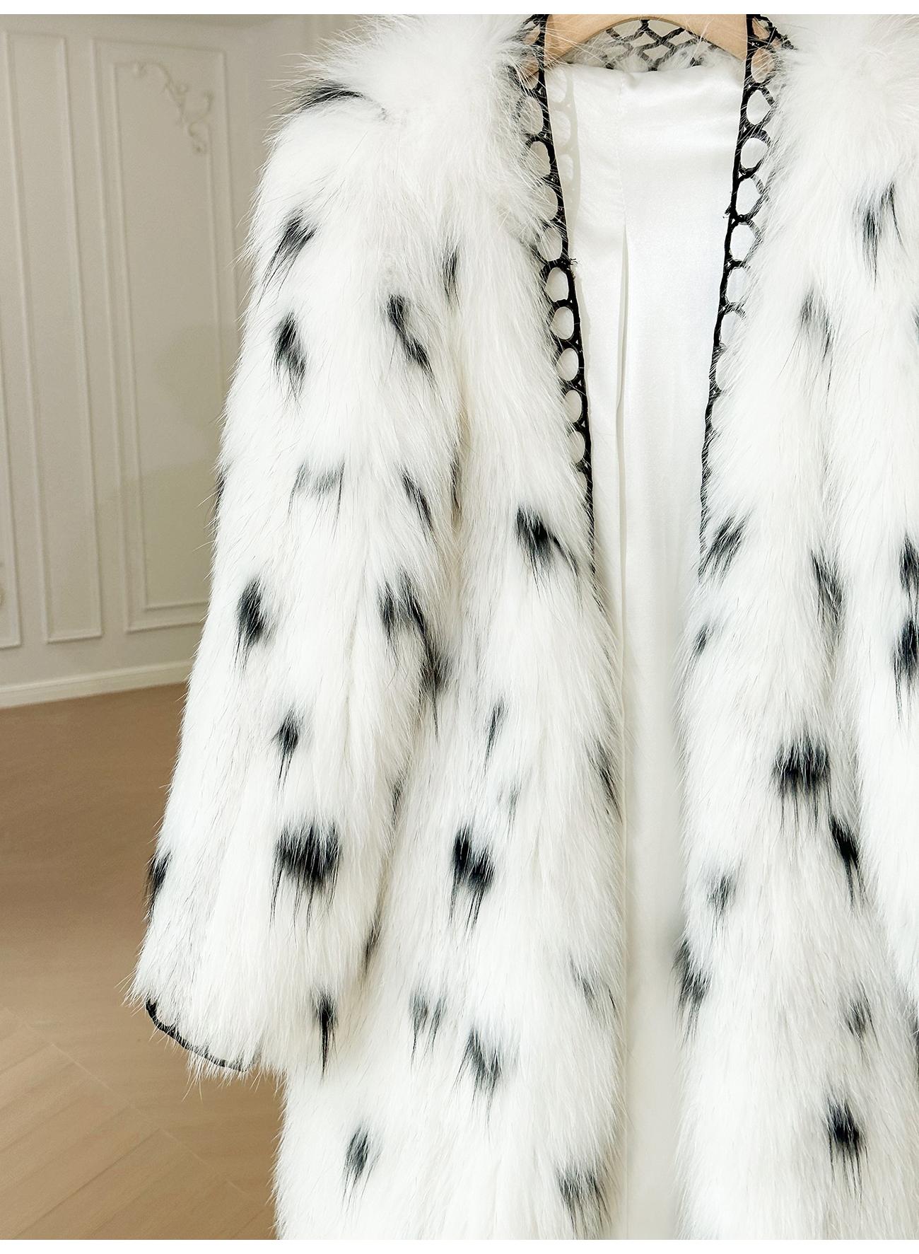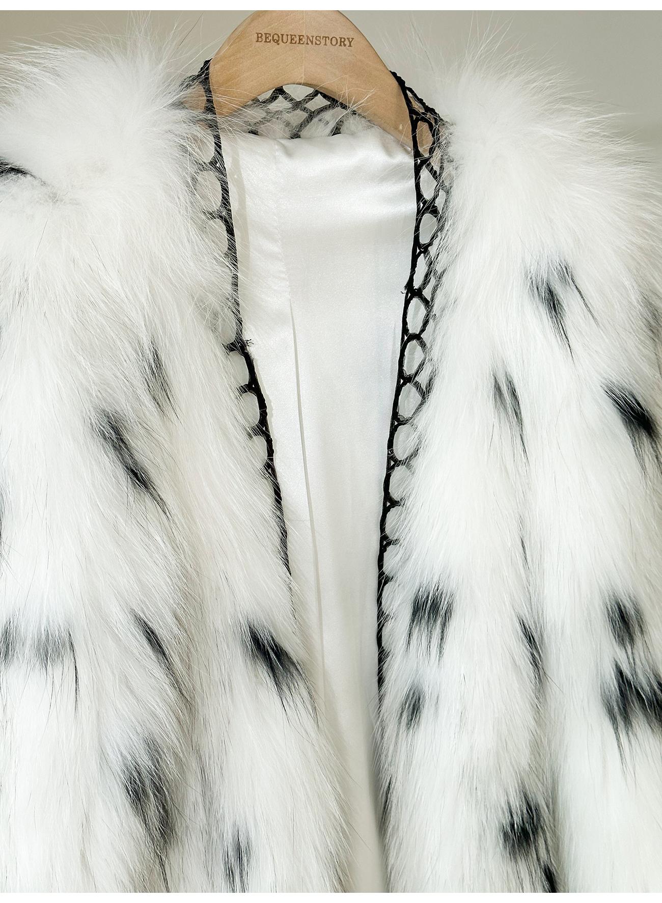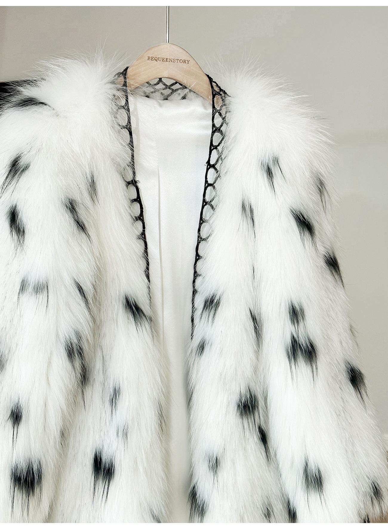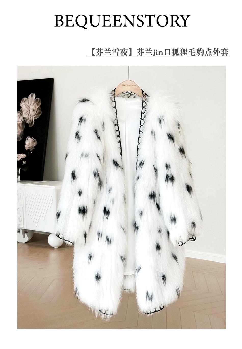 BeQueenStory【芬兰雪夜】芬兰进口狐狸毛珠片网纱镂空编织豹点外套