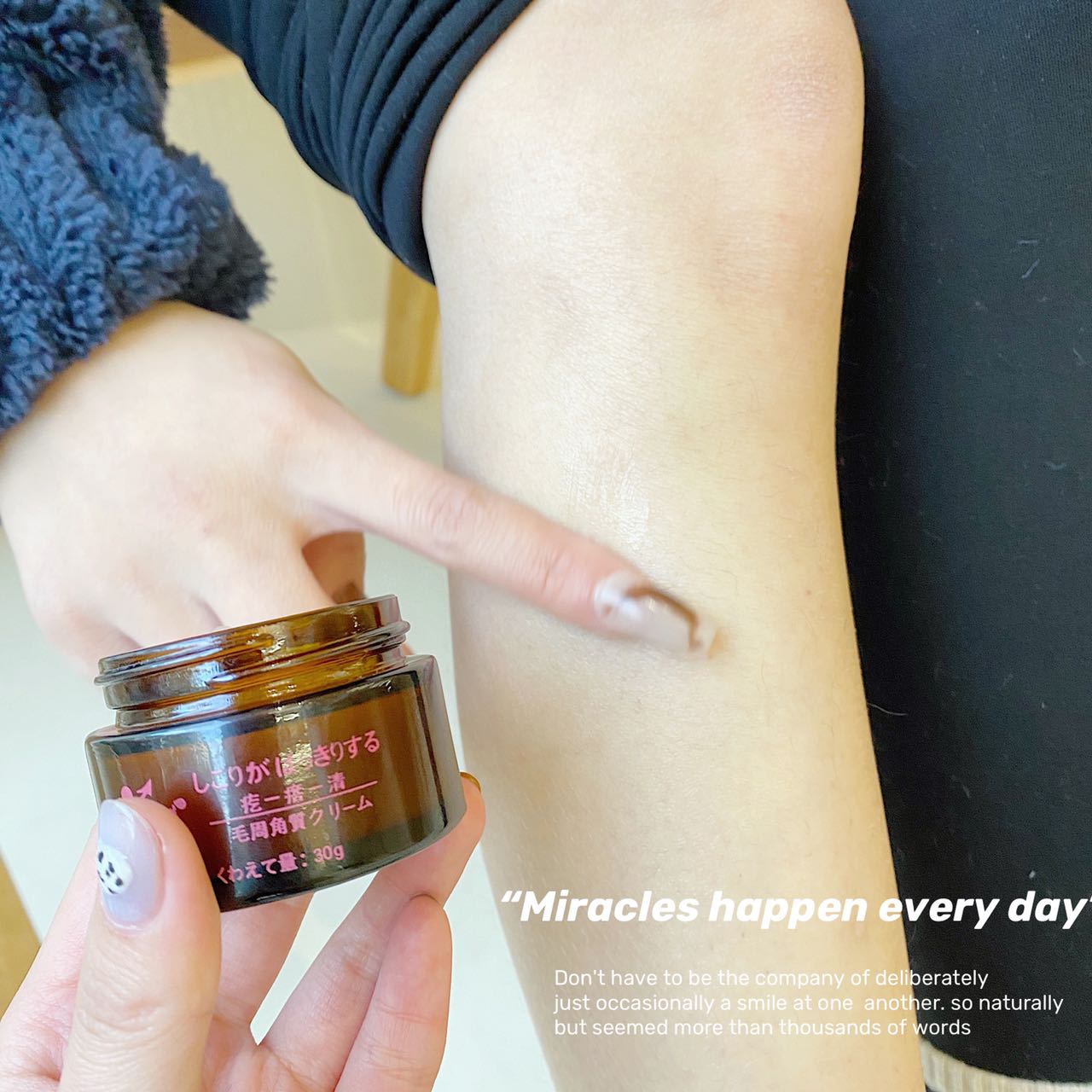 4、持续使用可以很好地淡化手臂的鸡皮症,还你一个光滑的肌肤