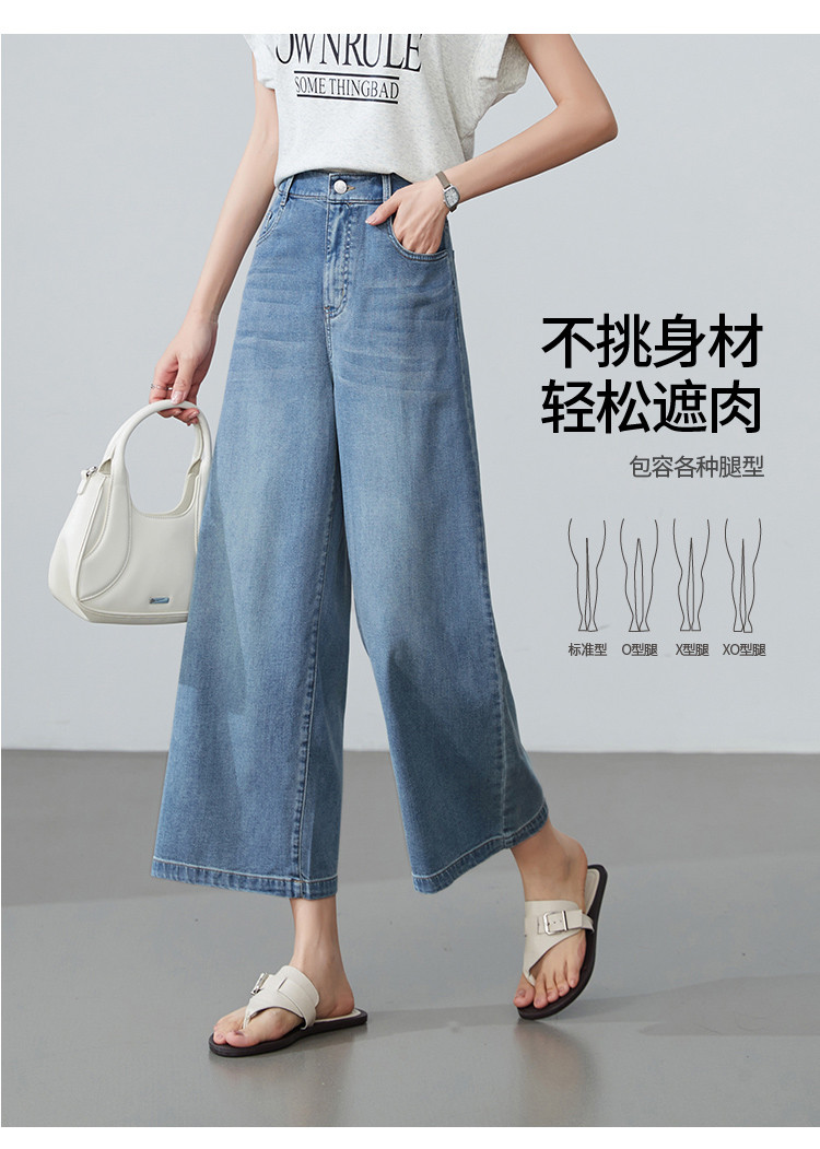 【天丝棉-八分阔腿】逸阳软垂宽松遮肉显瘦宽直筒裤子7050