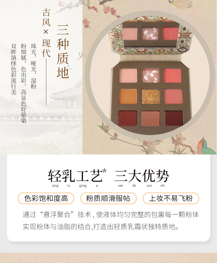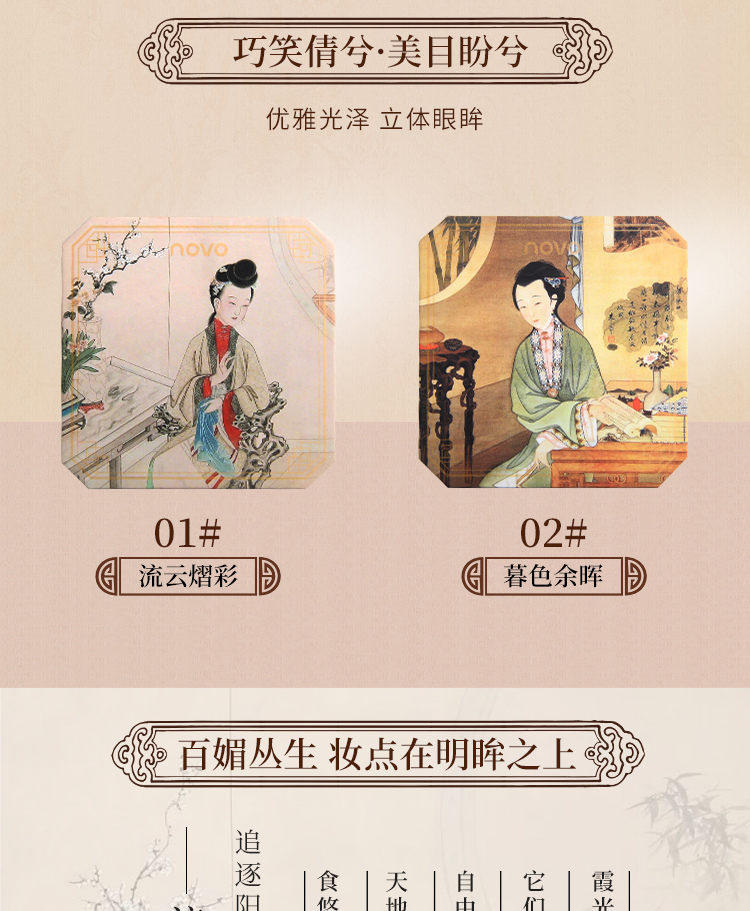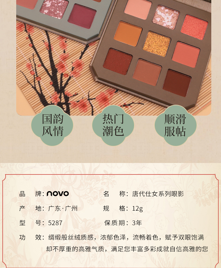 NOVO唐代仕女眼影闪粉珠光防水ins超火眼影盘故宫九色学生网红款